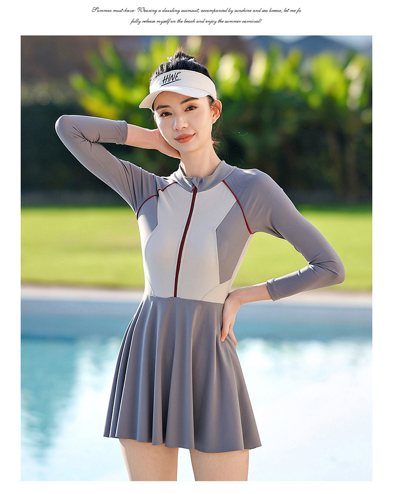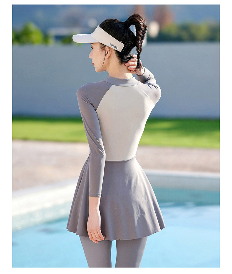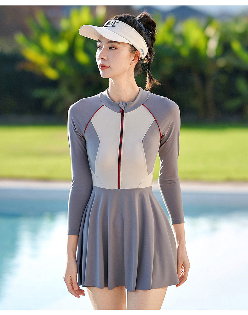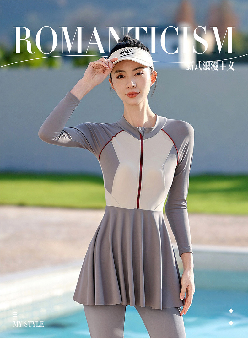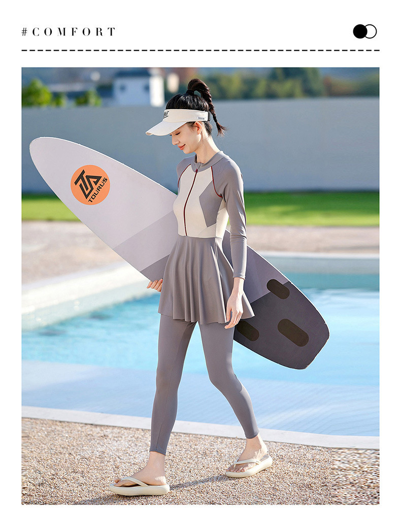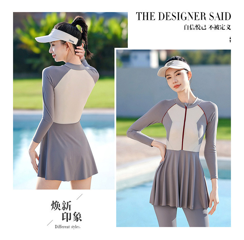 大码潜水服胖mm180斤连体裙式长袖长裤防晒遮肚显瘦加肥冲浪服女