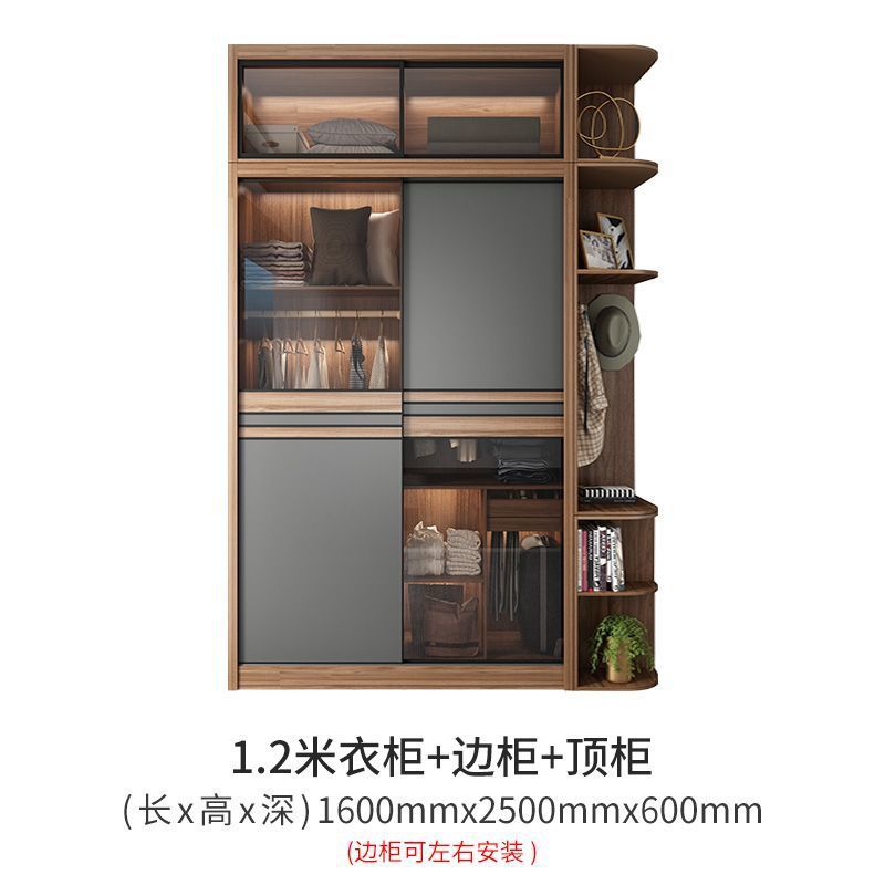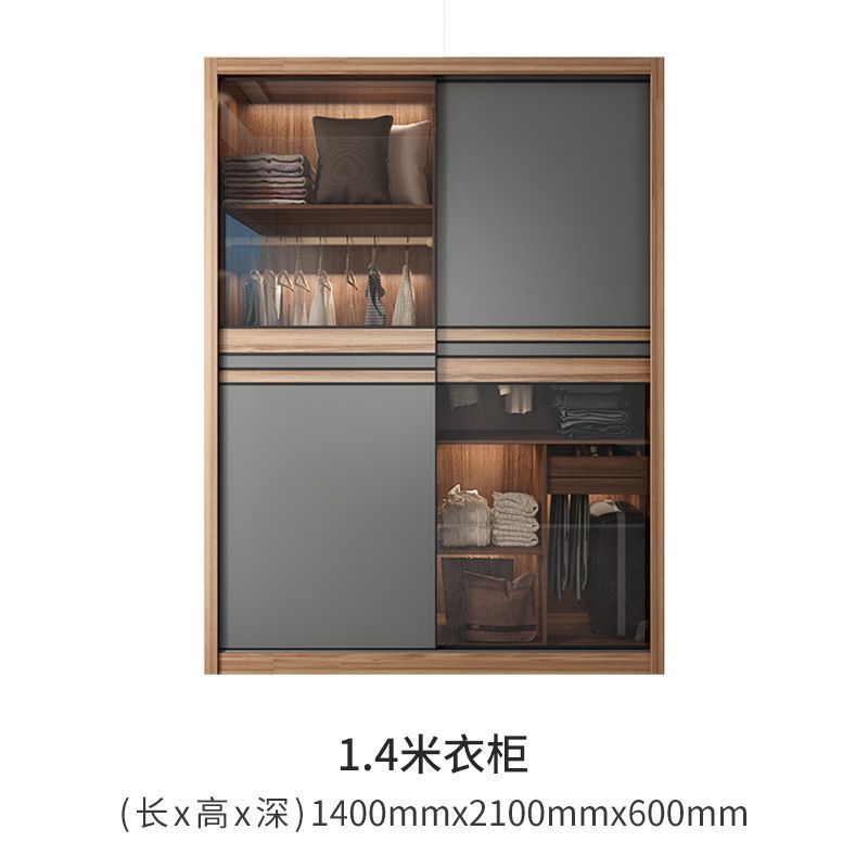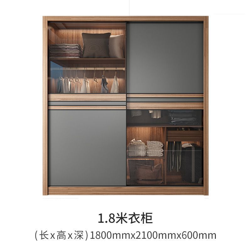 북유럽 스타일 슬라이딩 도어 옷장 홈 침실 작은 아파트 캐비닛 간단한 현대 슬라이딩 도어 스토리지 조합 전체 세트