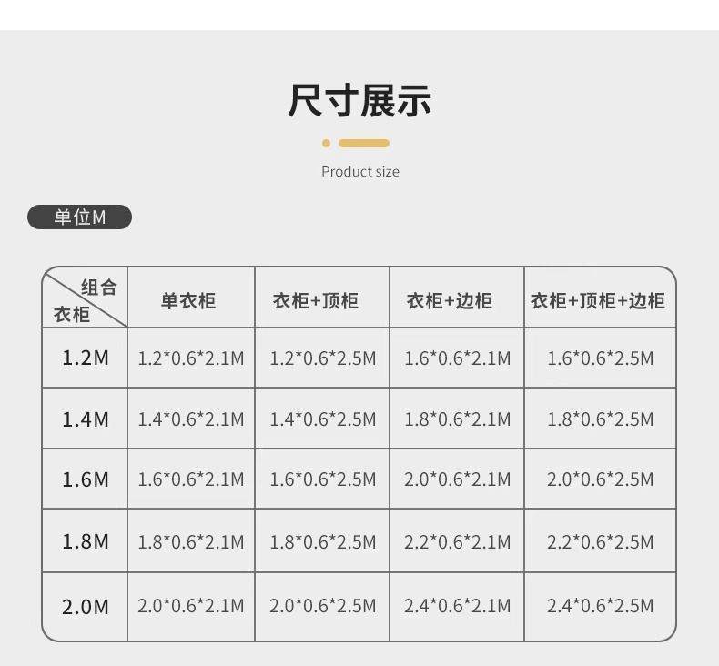 • 1.2m 옷장 + 측면 캐비닛 + 상단 캐비닛 완전한 세트