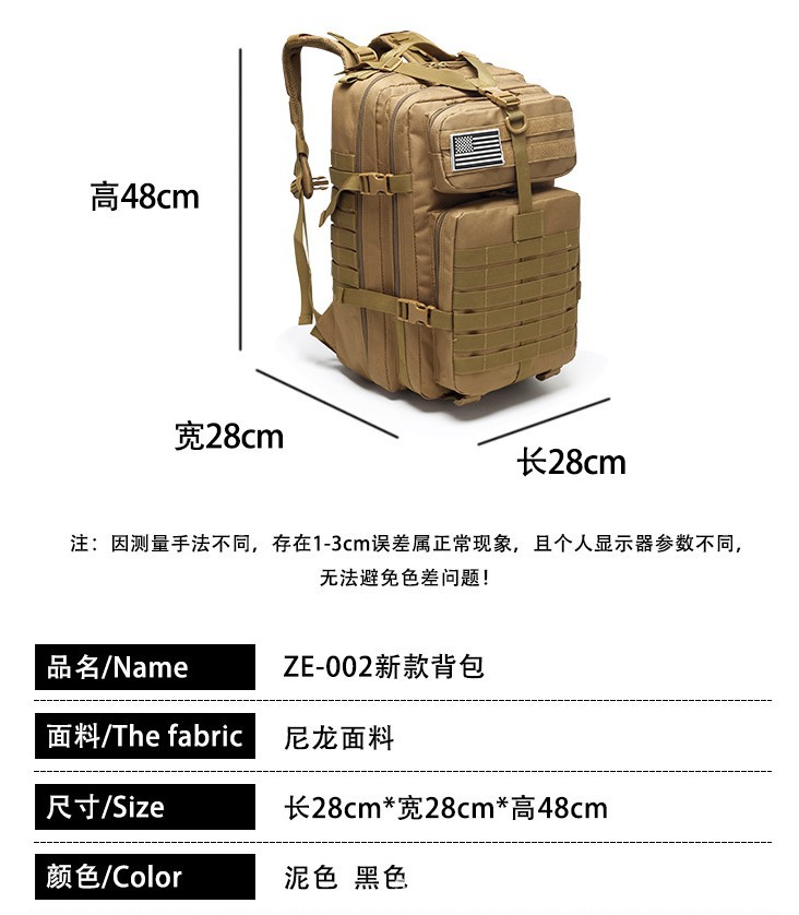O'Carley 야외 스포츠 방수 배낭 하이킹 및 등산 캠핑 대용량 MOLLE 확장 3P 전술 가방