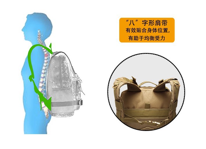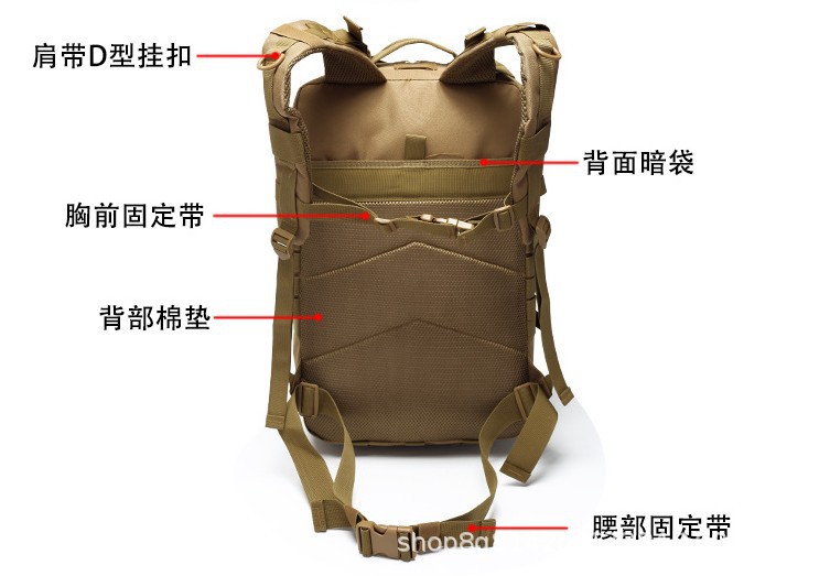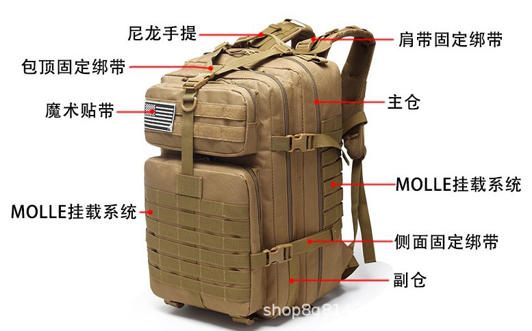 O'Carley 야외 스포츠 방수 배낭 하이킹 및 등산 캠핑 대용량 MOLLE 확장 3P 전술 가방스토어 가기