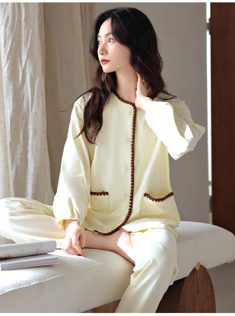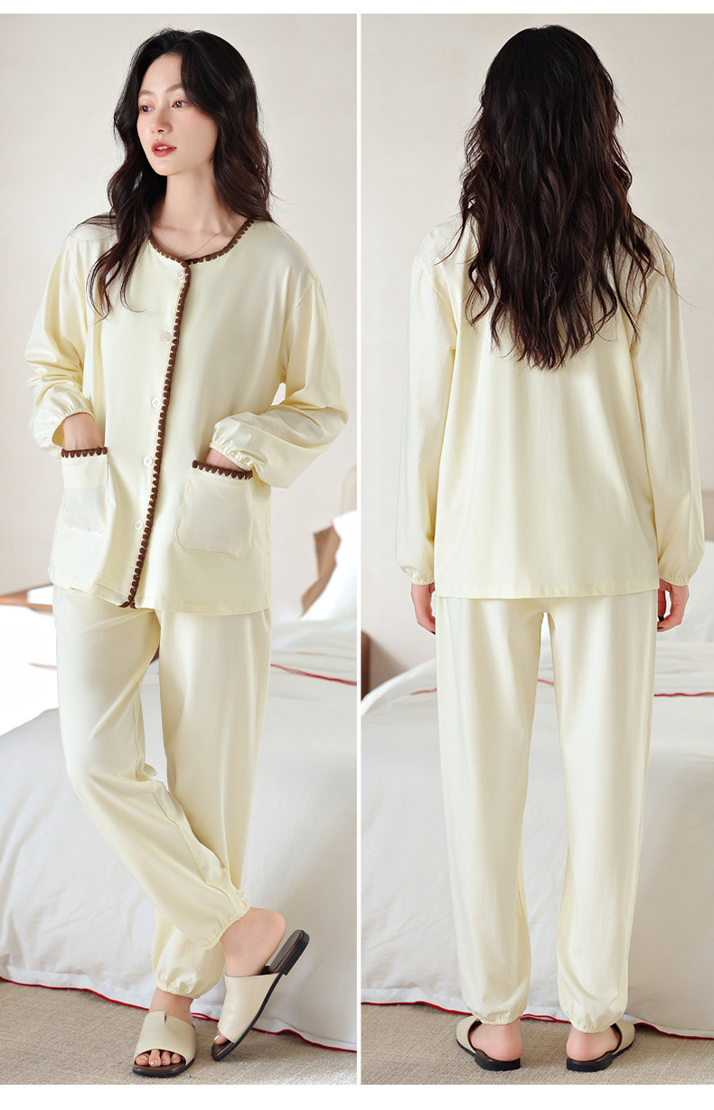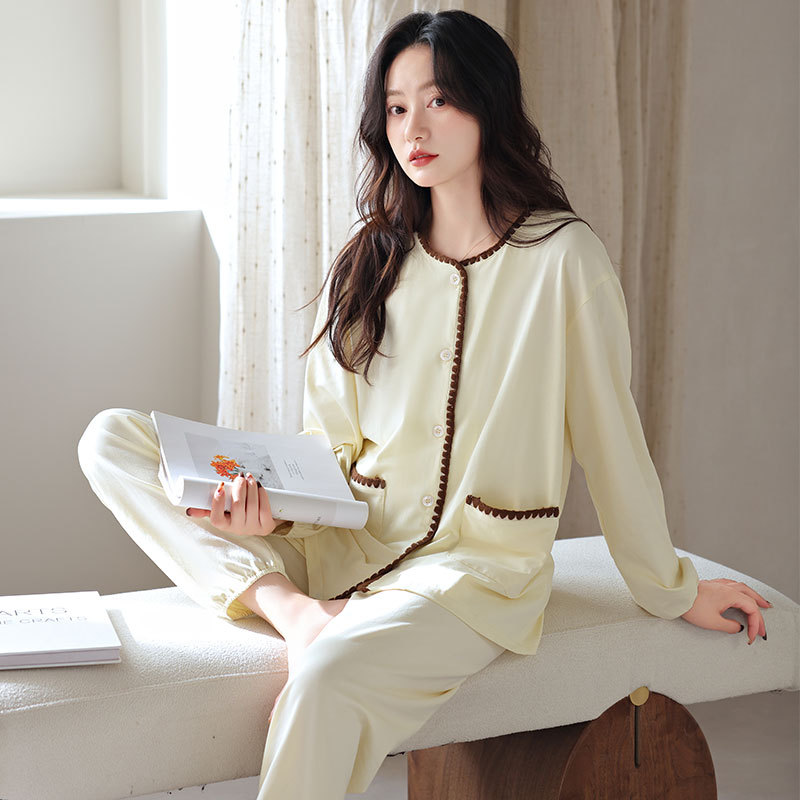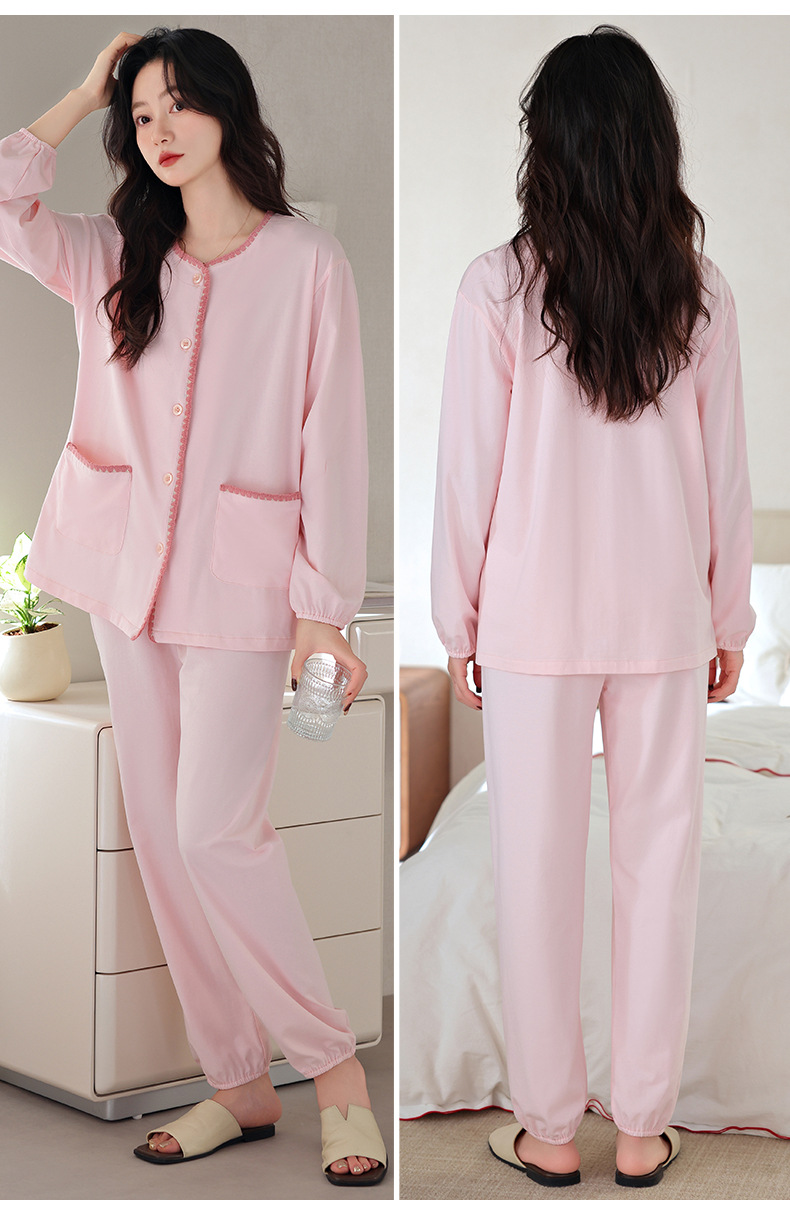 2025 년 새 잠옷 여성 봄과 가을 가을 면화 긴팔 홈 의류 가을 면화 얇은 플러스 사이즈 세트