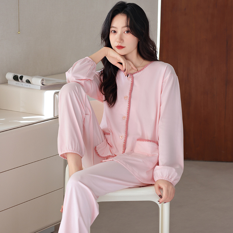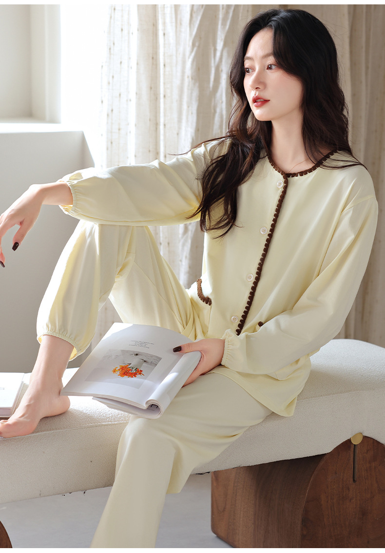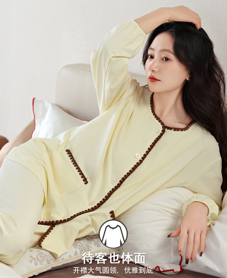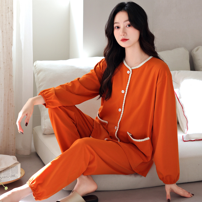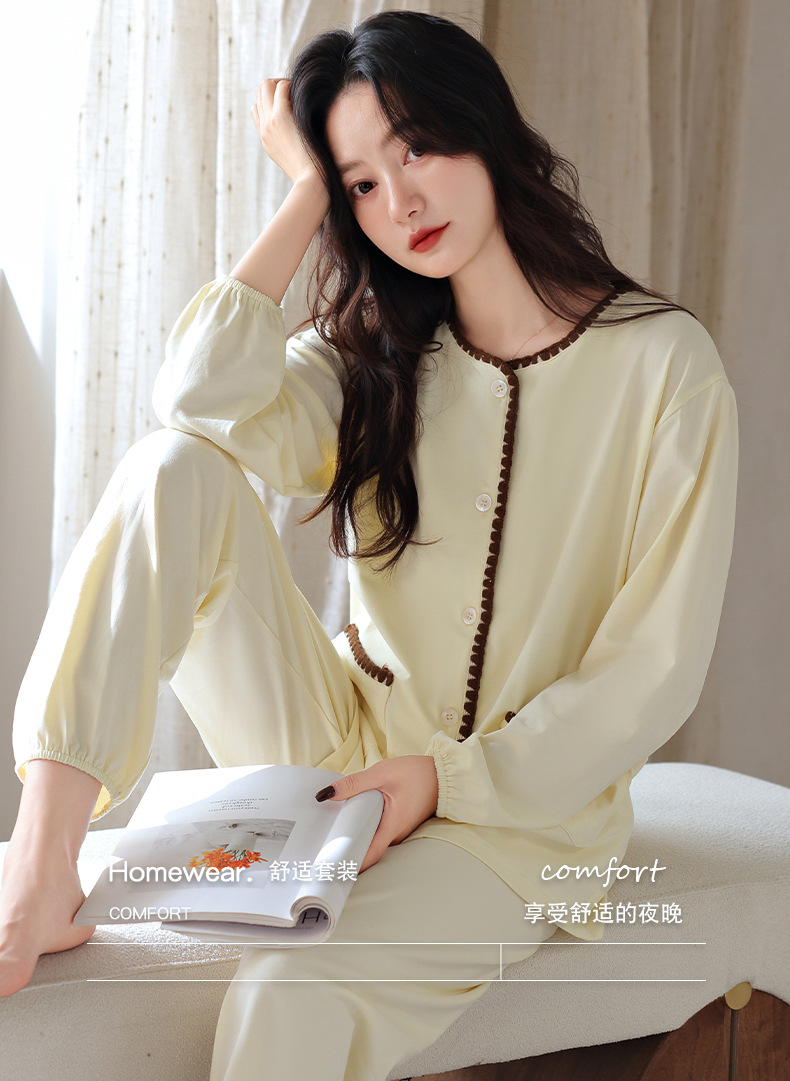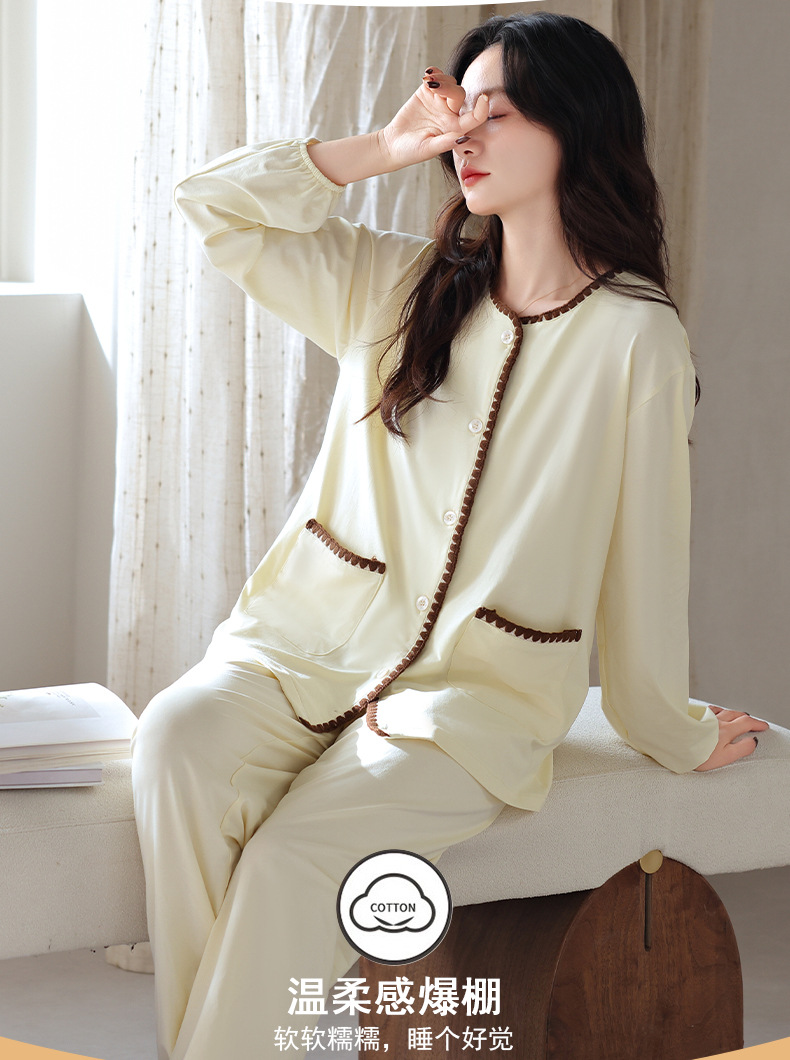 2025 년 새 잠옷 여성 봄과 가을 가을 면화 긴팔 홈 의류 가을 면화 얇은 플러스 사이즈 세트스토어 가기
