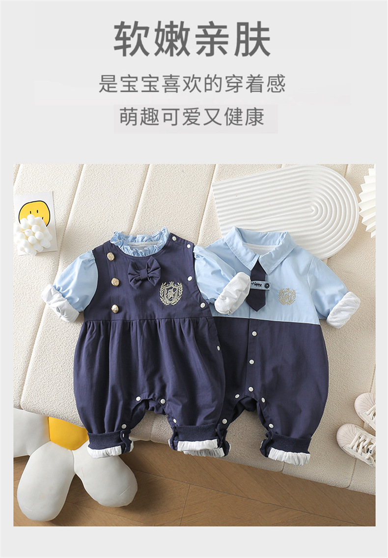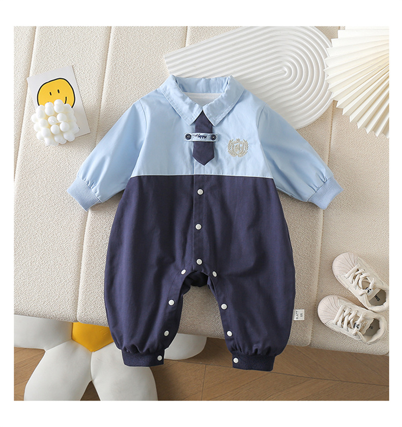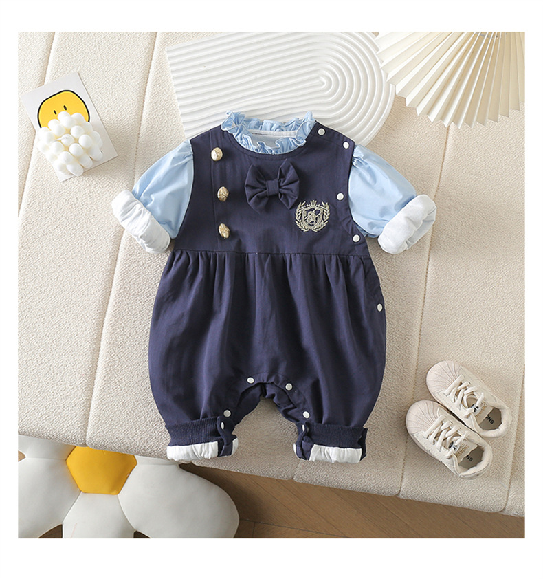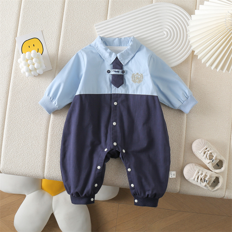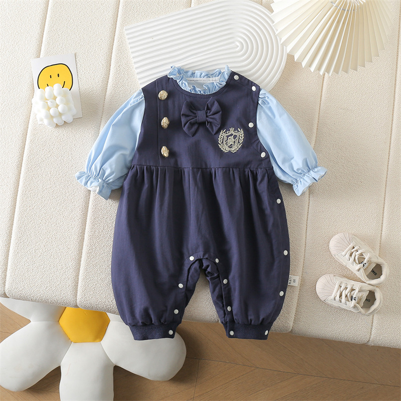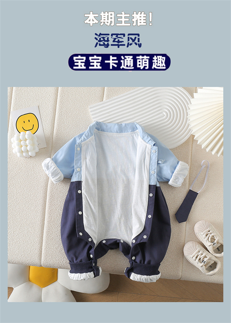 네이비 스타일 아기 옷 2025 봄 신상 아기 점프 슈트 귀엽고 세련된 보름달 백일 봄