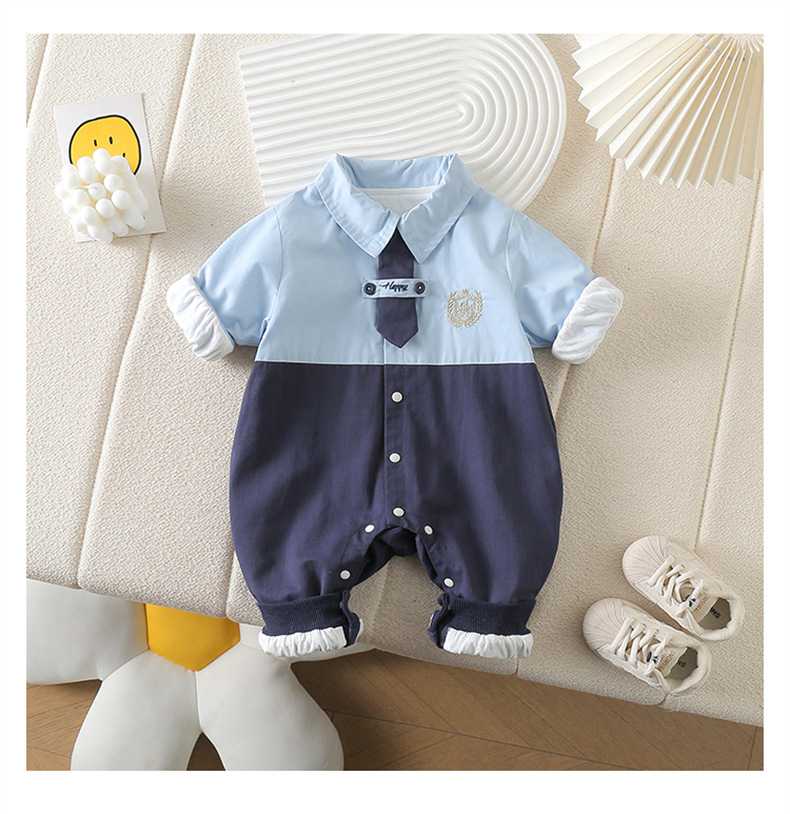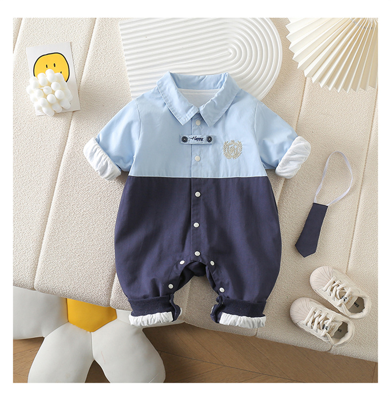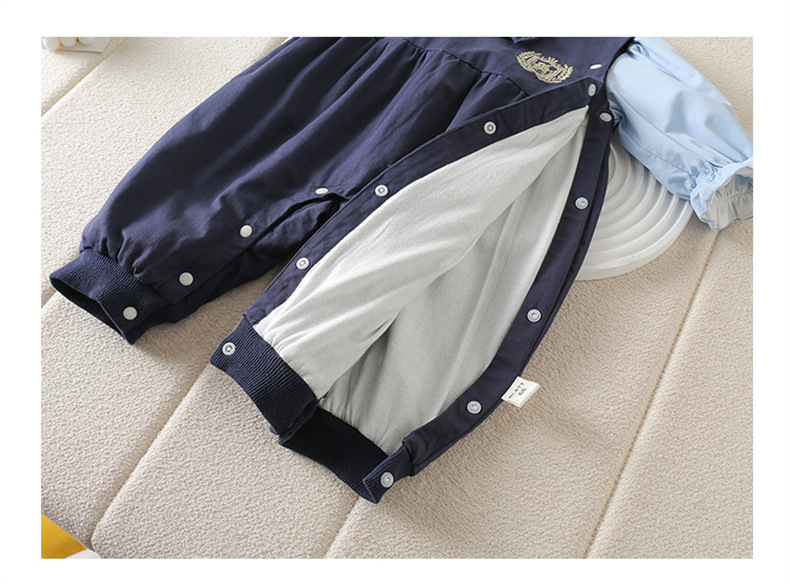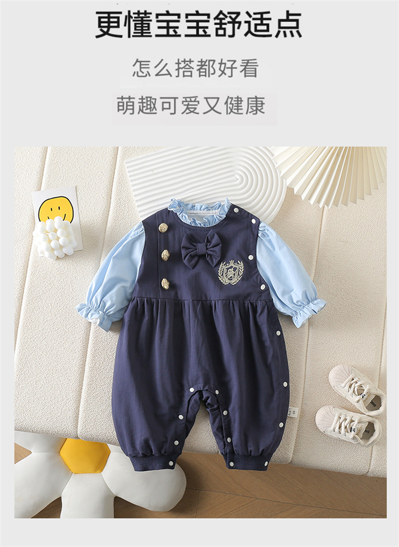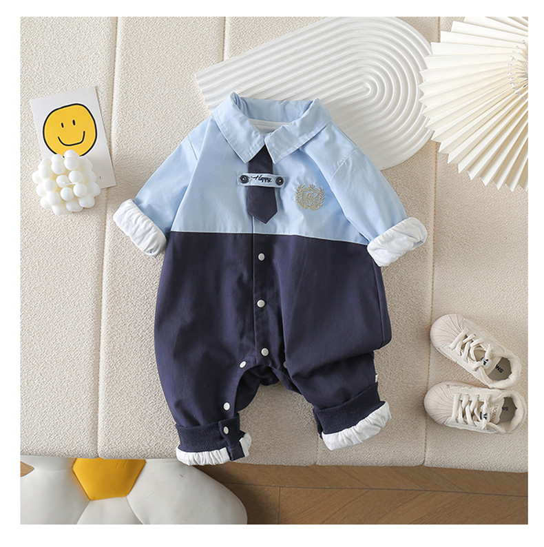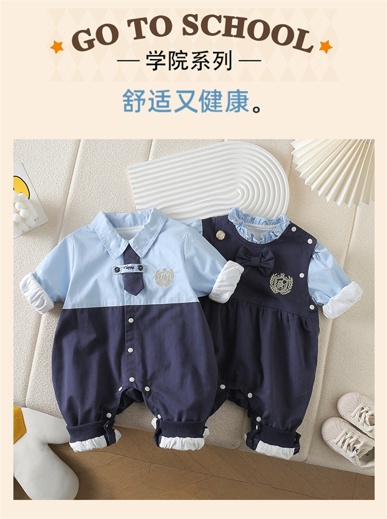 네이비 스타일 아기 옷 2025 봄 신상 아기 점프 슈트 귀엽고 세련된 보름달 백일 봄