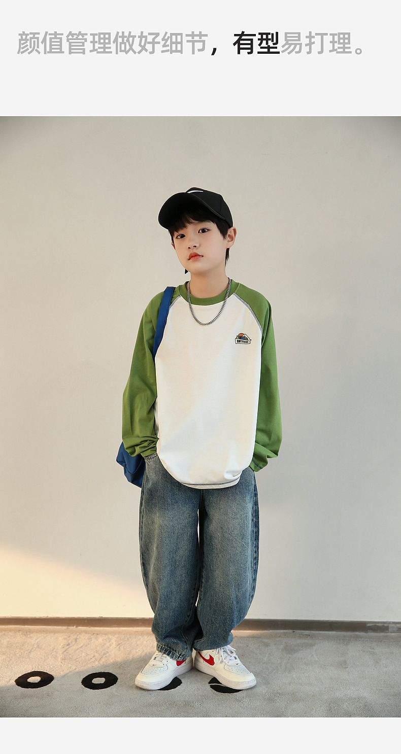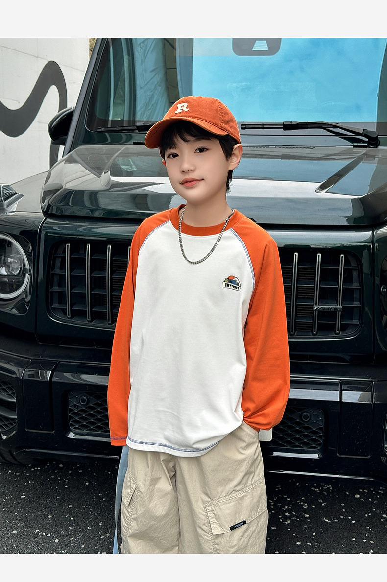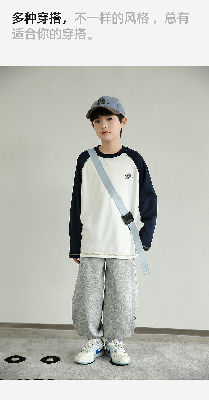 Panda Yuanyuan 2025 가을 대비 색상 소년 속건성 티셔츠 7A 항균 아동용 긴팔 스포츠 탑 바닥 셔츠