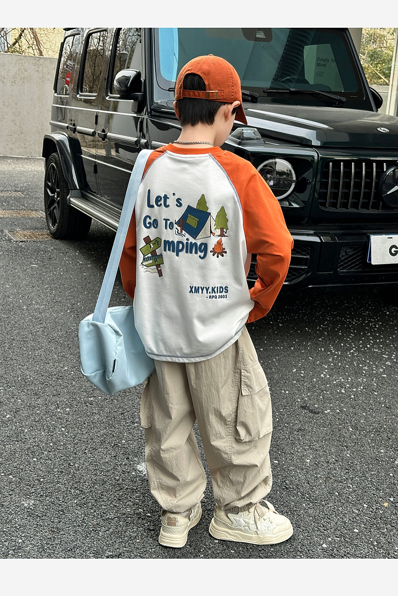 湖州织里童装2025秋季户外儿童工装裤熊猫圆圆纯棉大口袋男童裤子