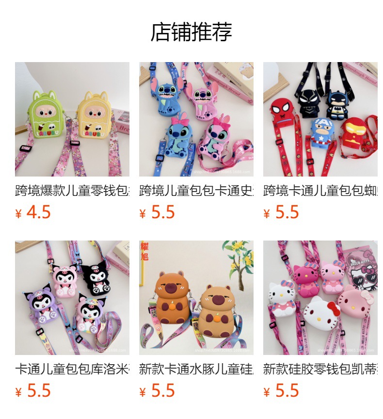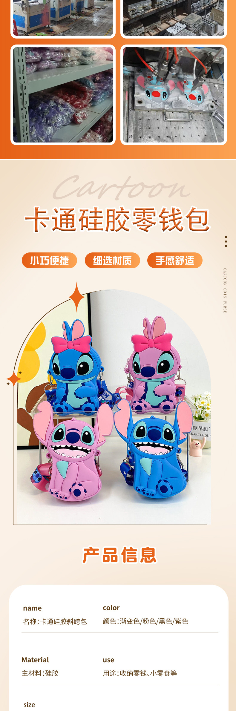 새로운 만화 어린이 실리콘 동전 지갑 스티치 여성용 크로스 바디 백 귀여운 가방 미니 스토리지 지갑