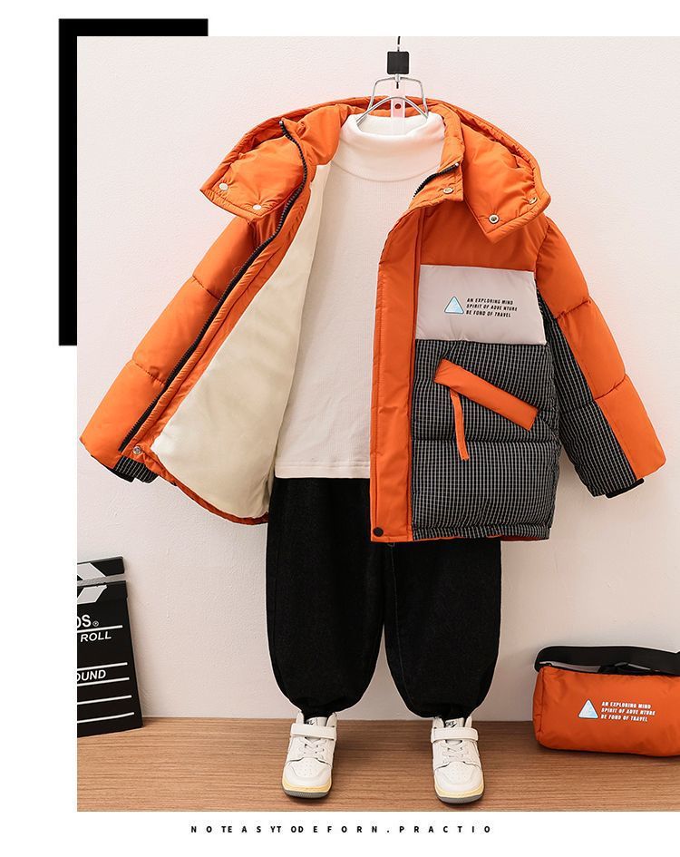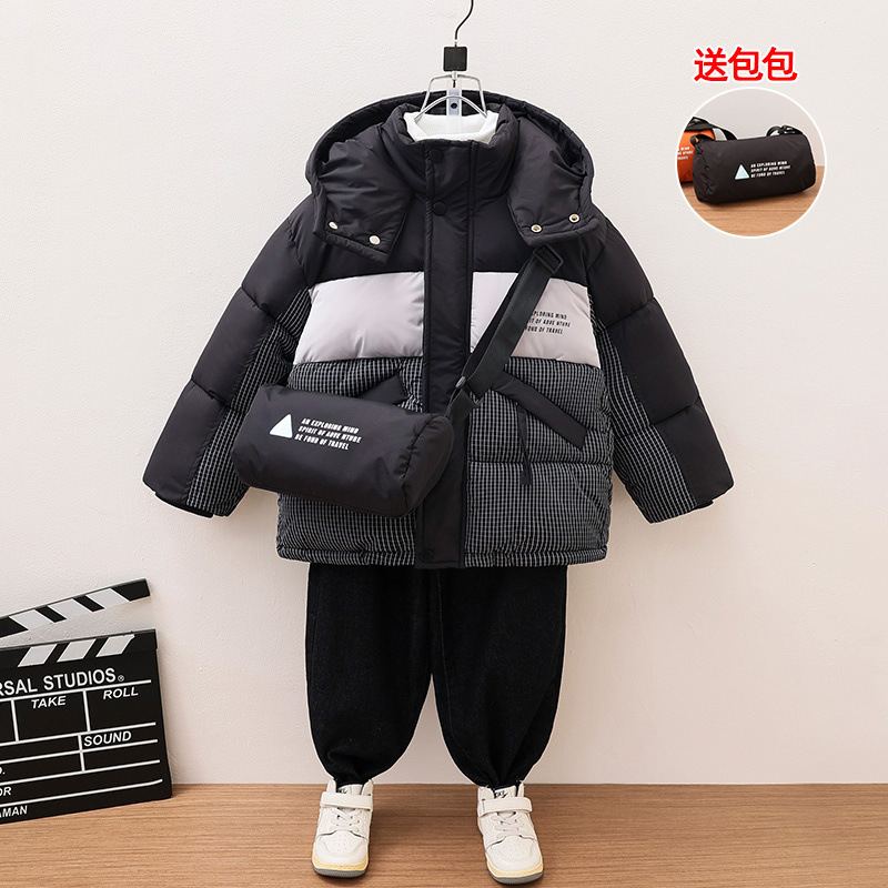 남자들의 겨울면 패딩 패딩 패딩 세련된 2024 새로운 어린이 기모 면화 패딩 재킷 조수 시원한 아기 겨울면 패딩 재킷스토어 가기