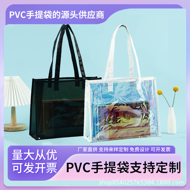 하이 엔드 라듐 핸드백 사용자 정의 투명 PVC 핸드백 플라스틱 흰색 선물 포장 가방 블랙스토어 가기