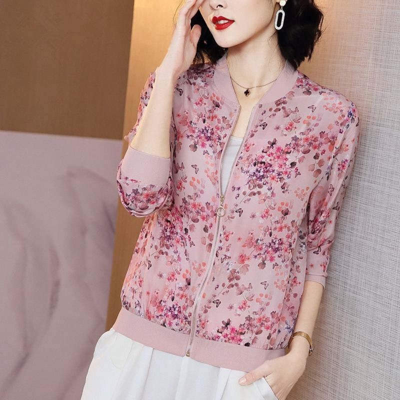 카디건 중년 어머니 코트 여성 트렌디 인 여름 얇은 짧은 재킷 야구 의류 쉬폰 긴팔 선 스크린 의류스토어 가기