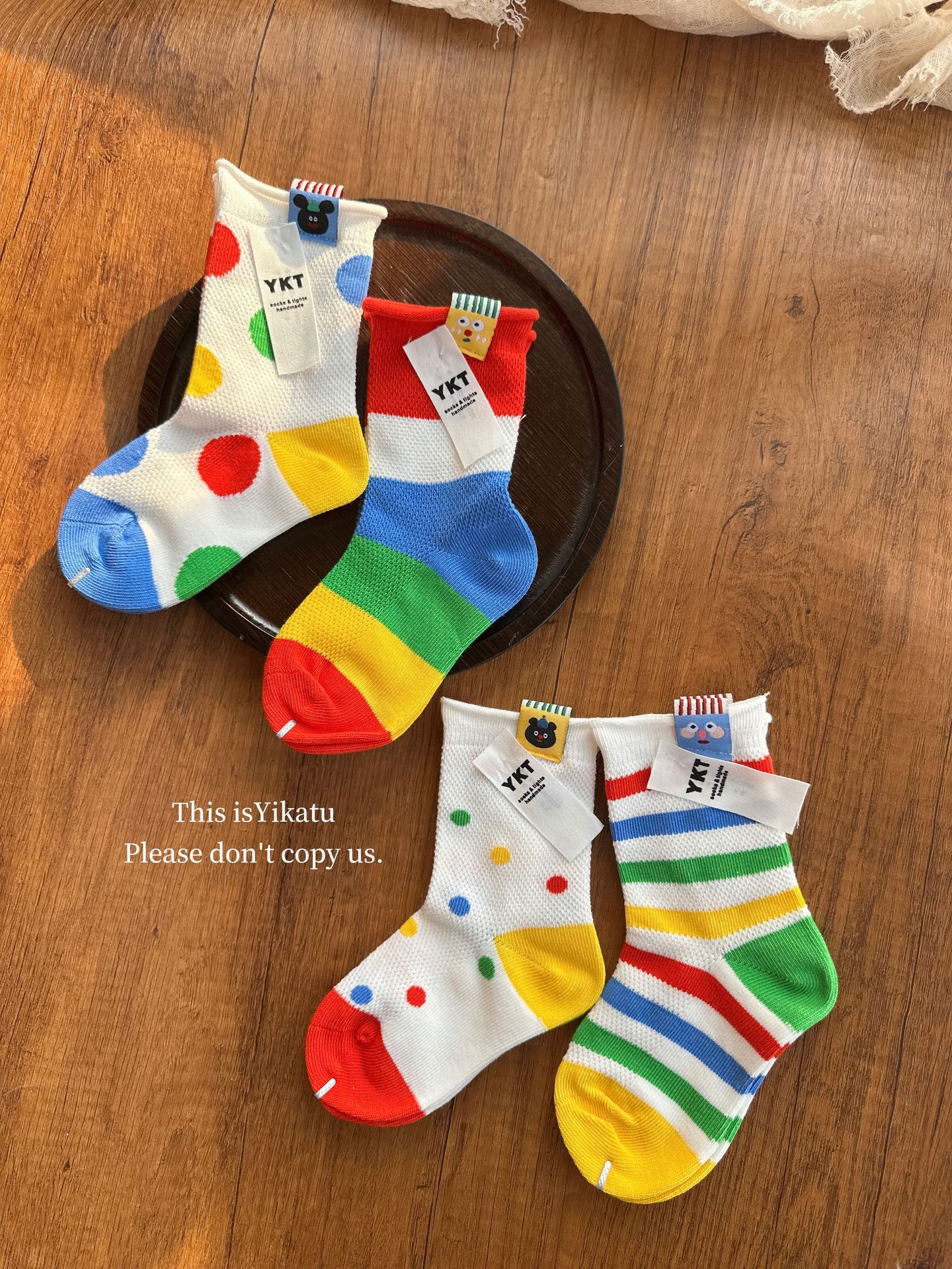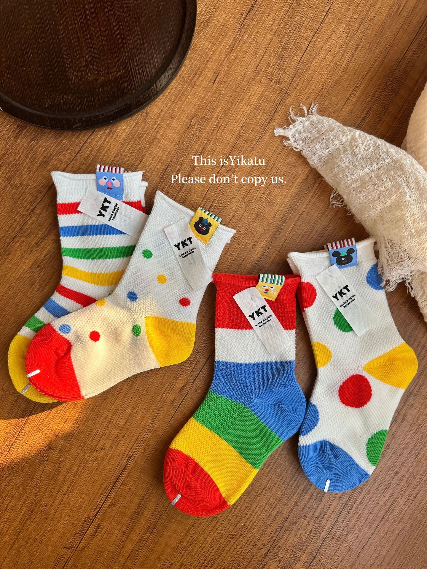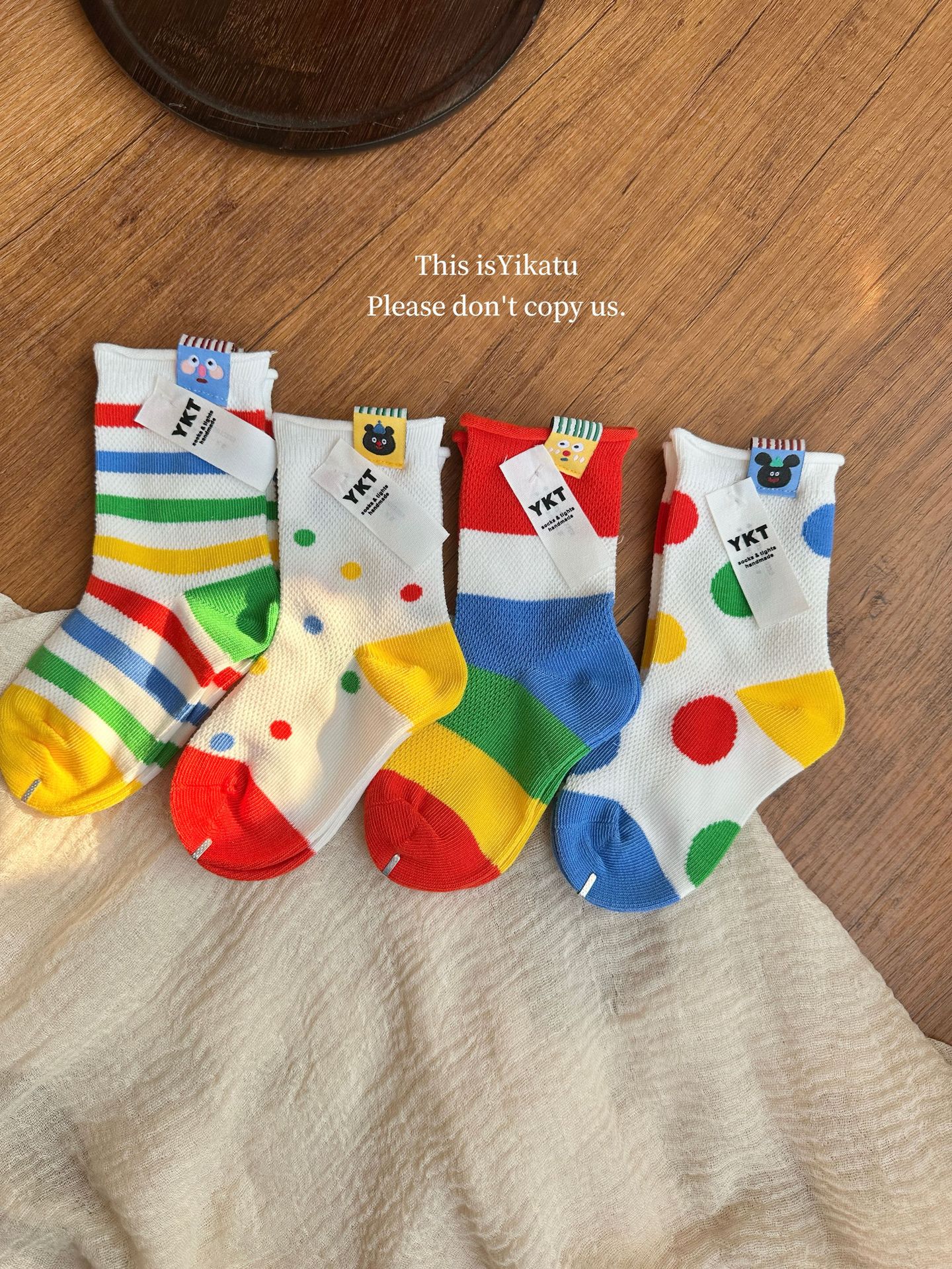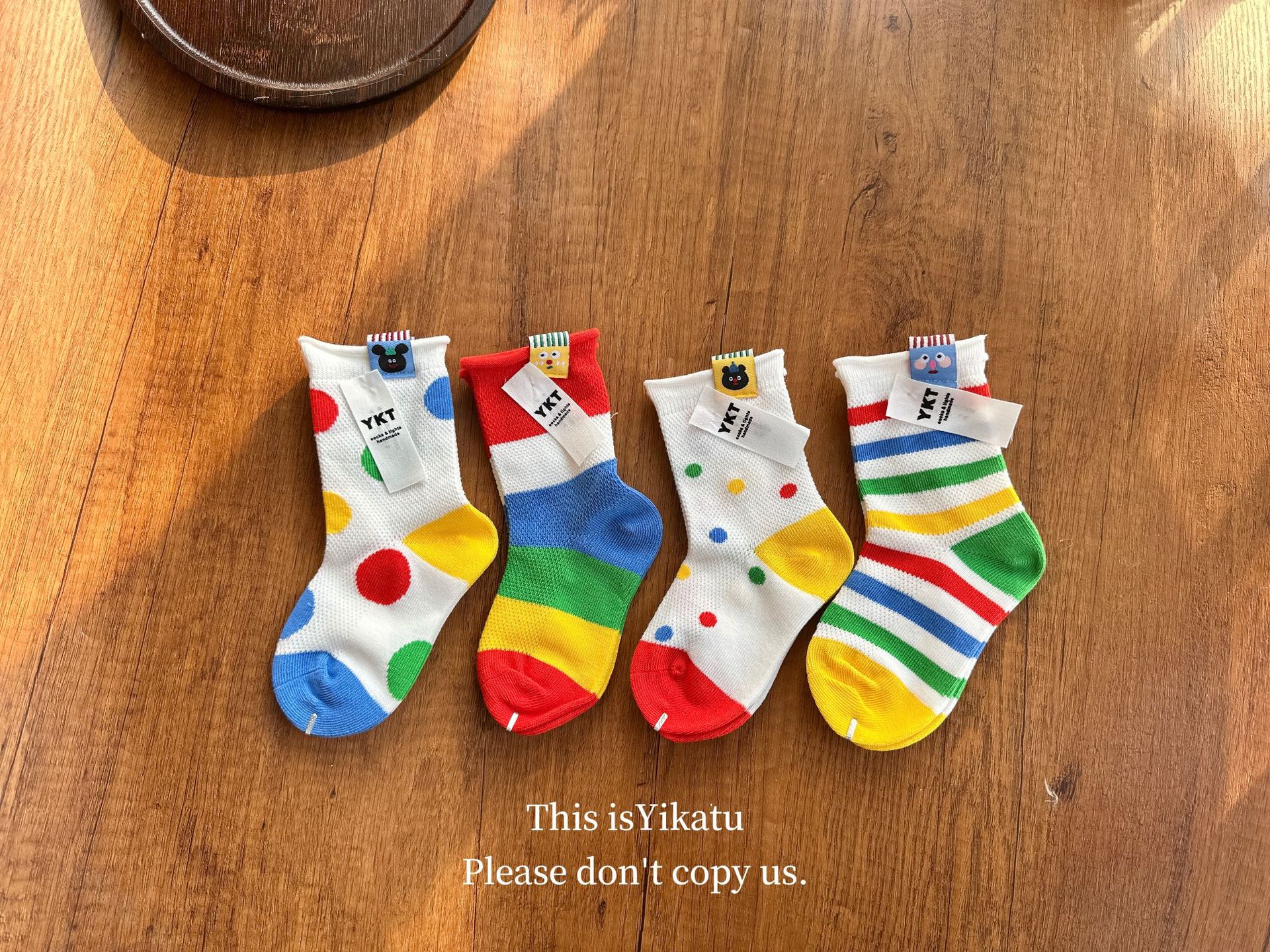Yikatu Ika 토끼 어린이 양말 도매 2025 봄 새로운 무지개 줄무늬 웨이브 도트 천 표준 메쉬 어린이 양말스토어 가기