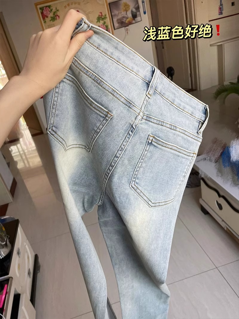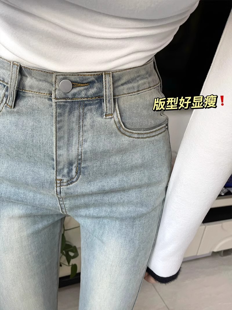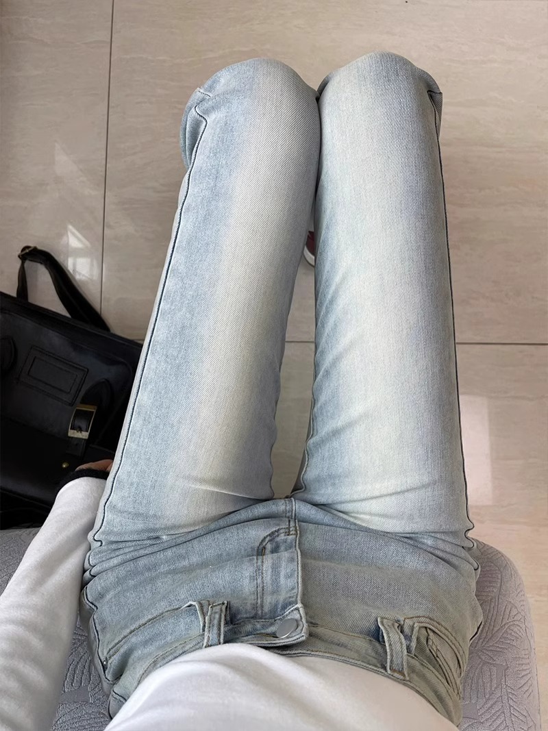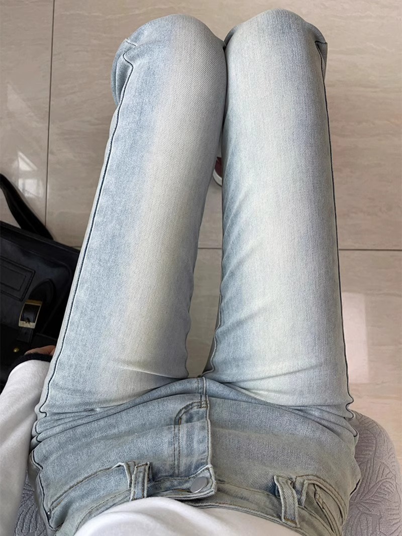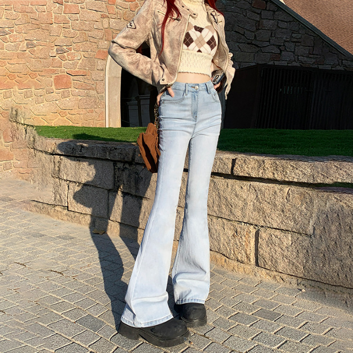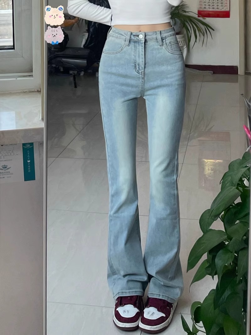 2025 년 폭발 오래된 빛 색 스키니 청바지 여성의 봄 높은 허리 스트레치 슬림 말굽 플래 드 바지