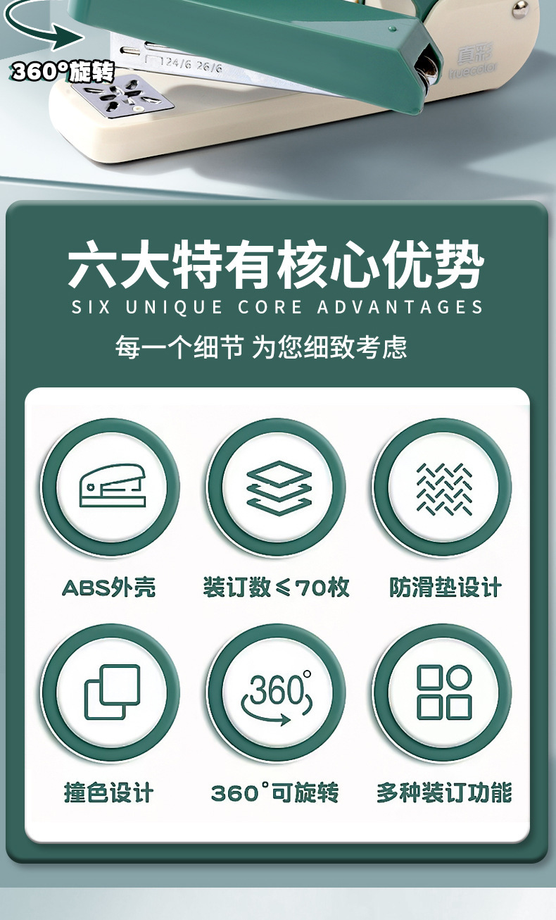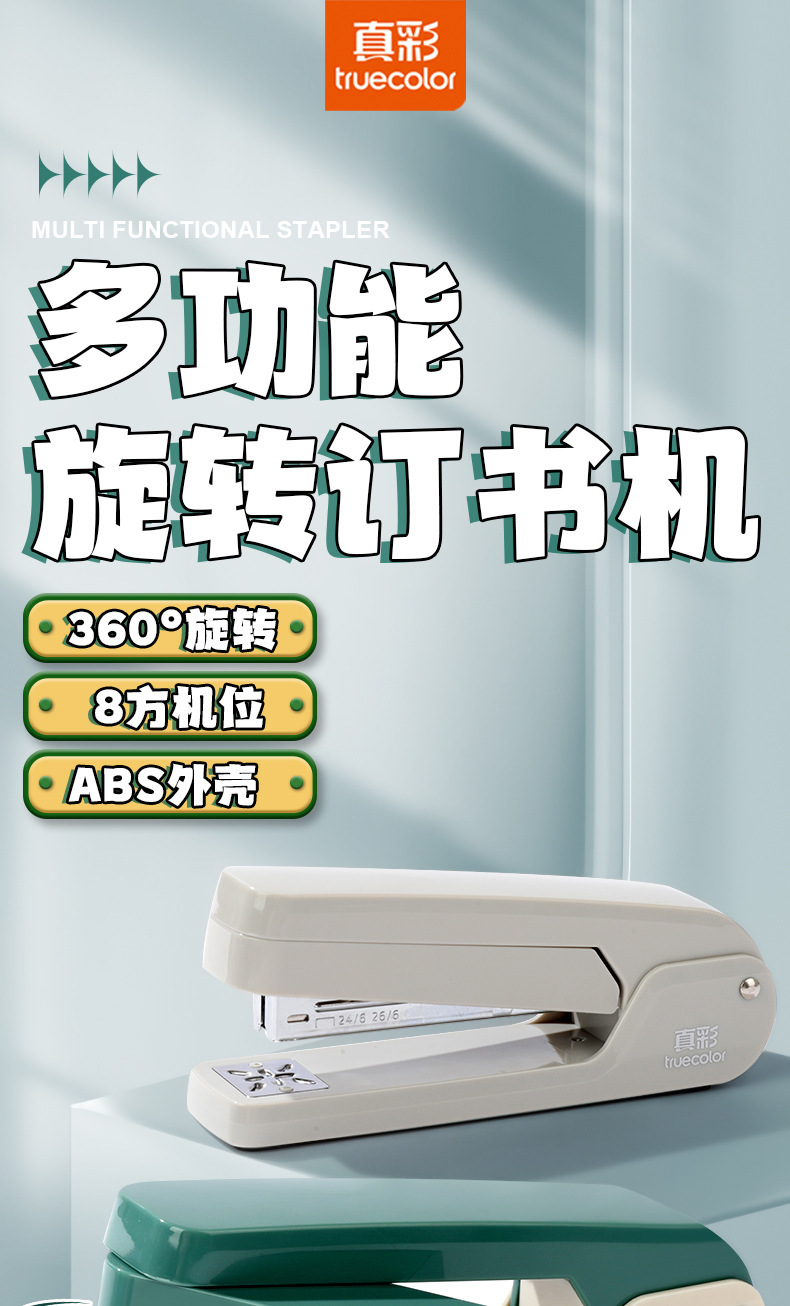 트루 컬러 회전 스테이플러 학생 스테이플러 대형 사무실 노동 절약 스테이플러