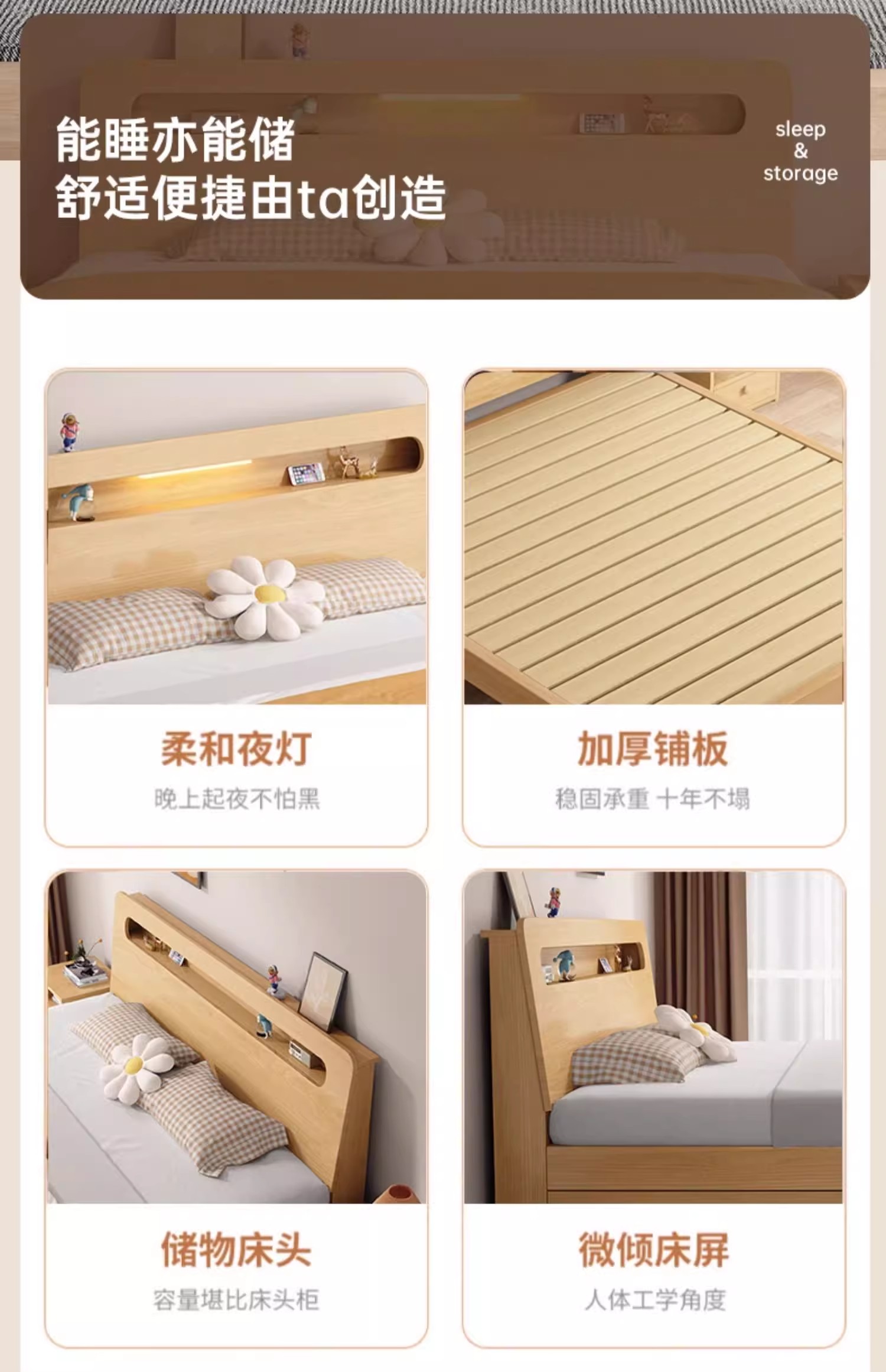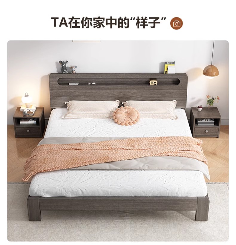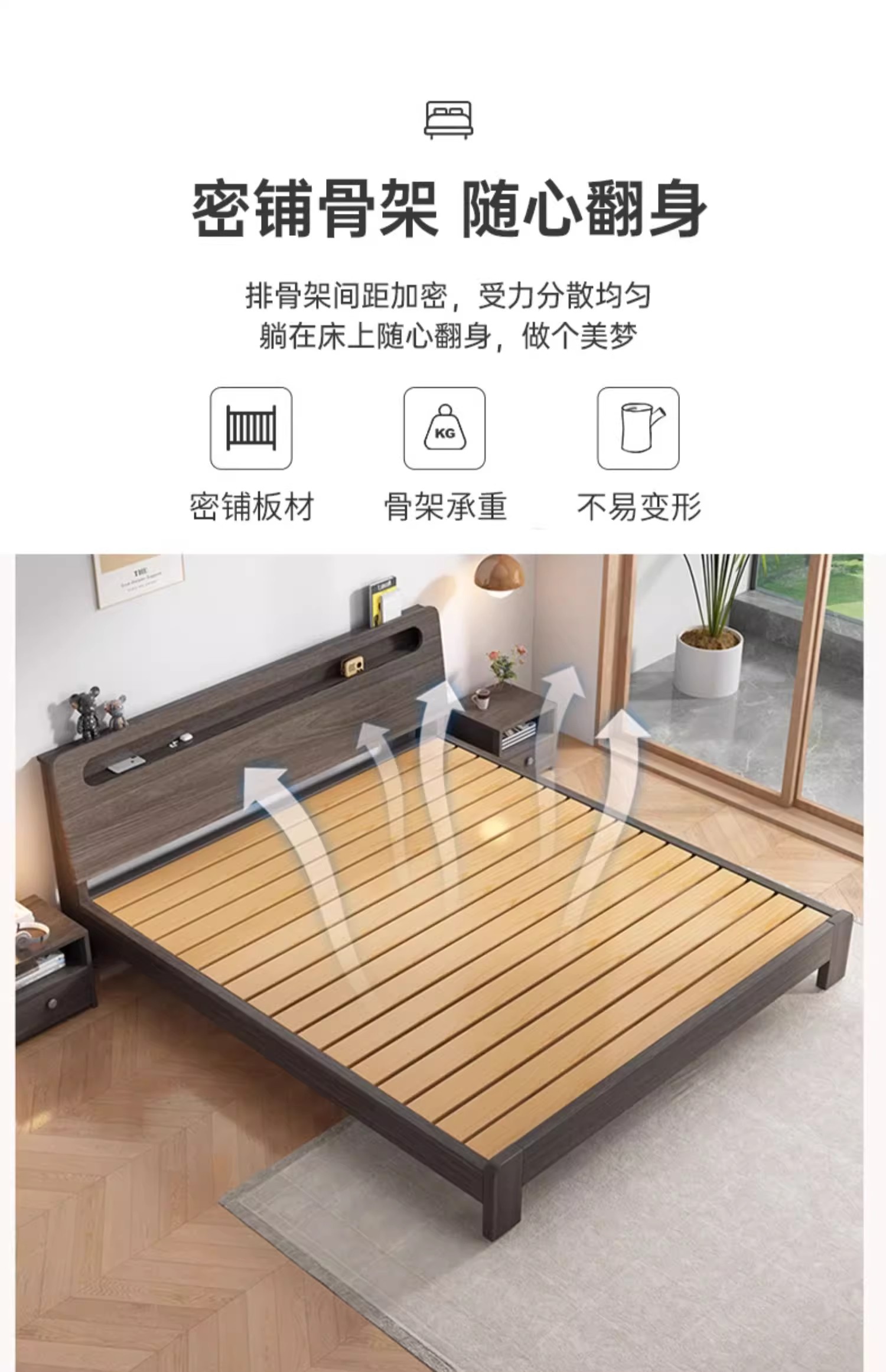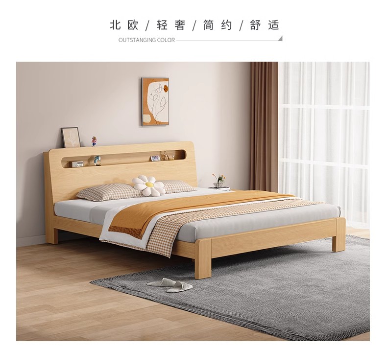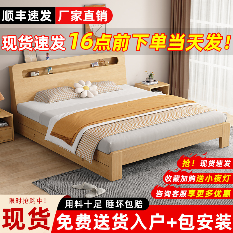 단단한 나무 침대 간단한 더블 침대 프레임 1 미터 8 퀸 침대 마스터 침실 1 미터 5 싱글 침대 홈 임대 방 경제적 인 침대 프레임스토어 가기