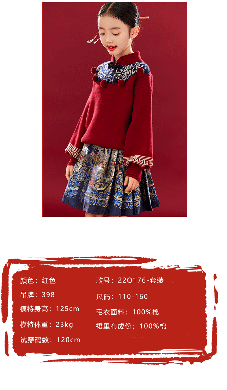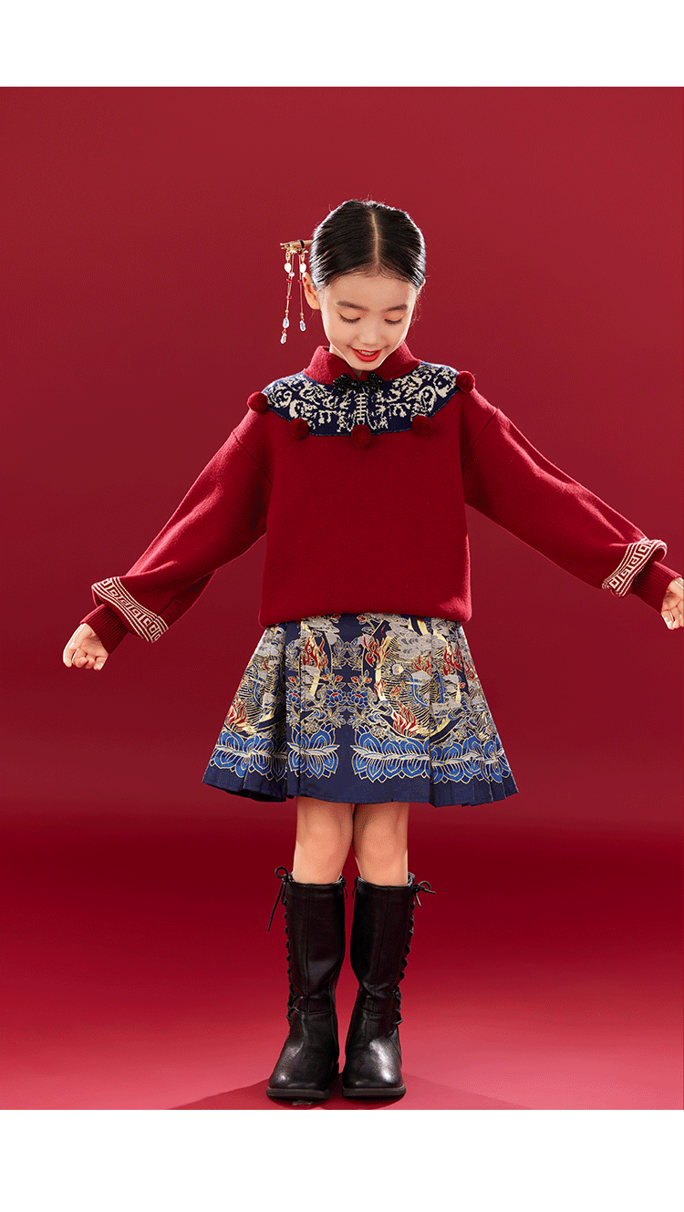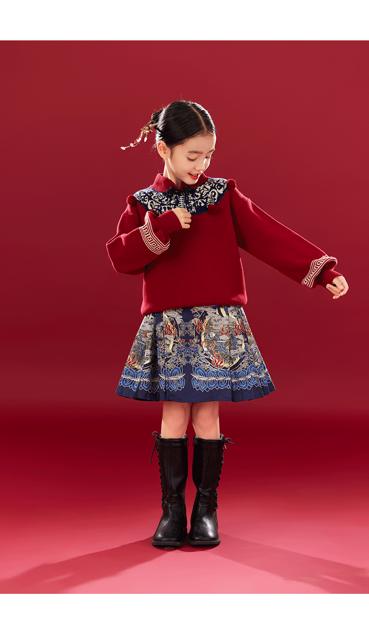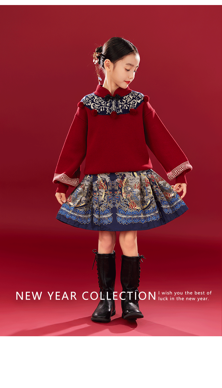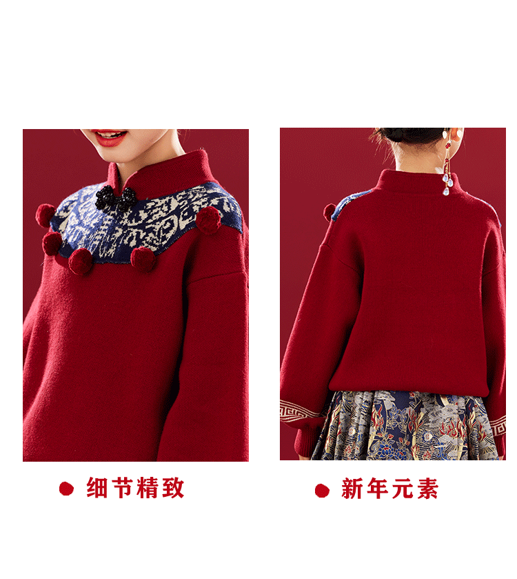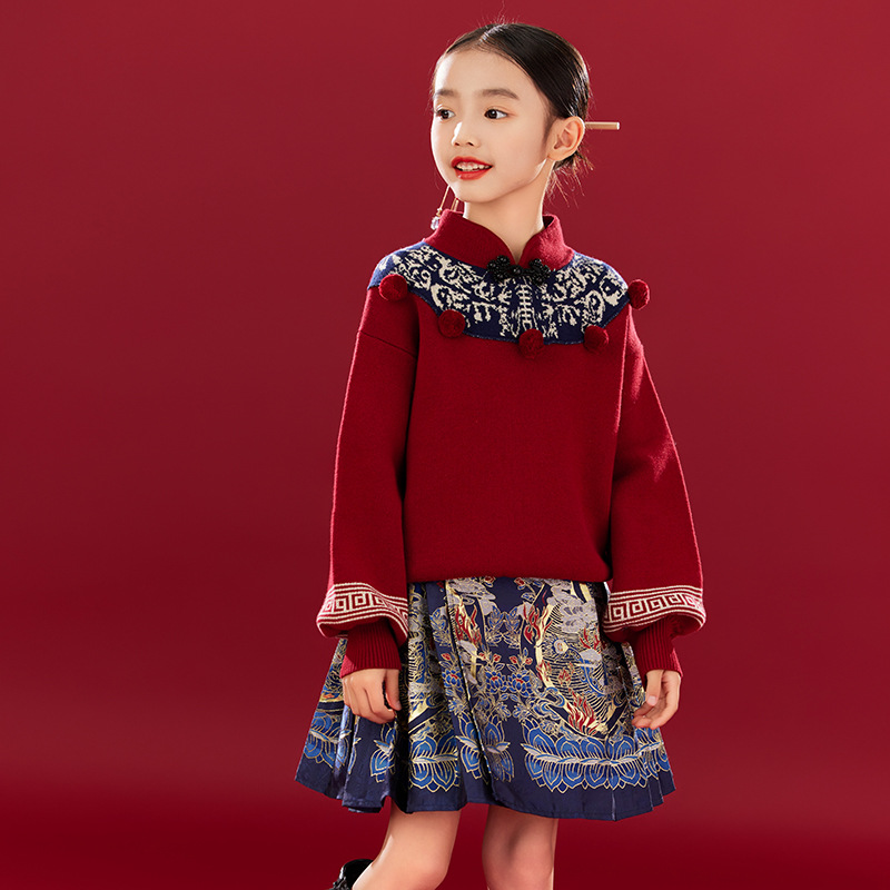 특별한 빨간 옷 대출 소녀 겨울 새해 니트 스웨터 새로운 중국 스타일 스웨터 말 얼굴 치마 세트스토어 가기