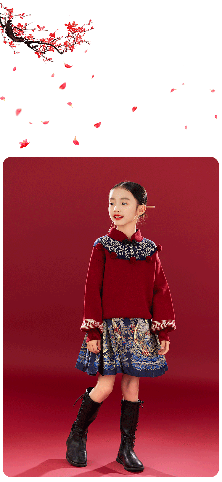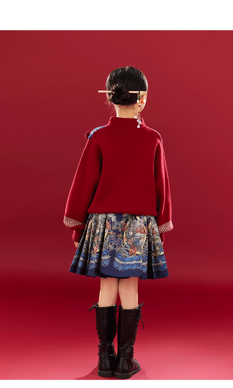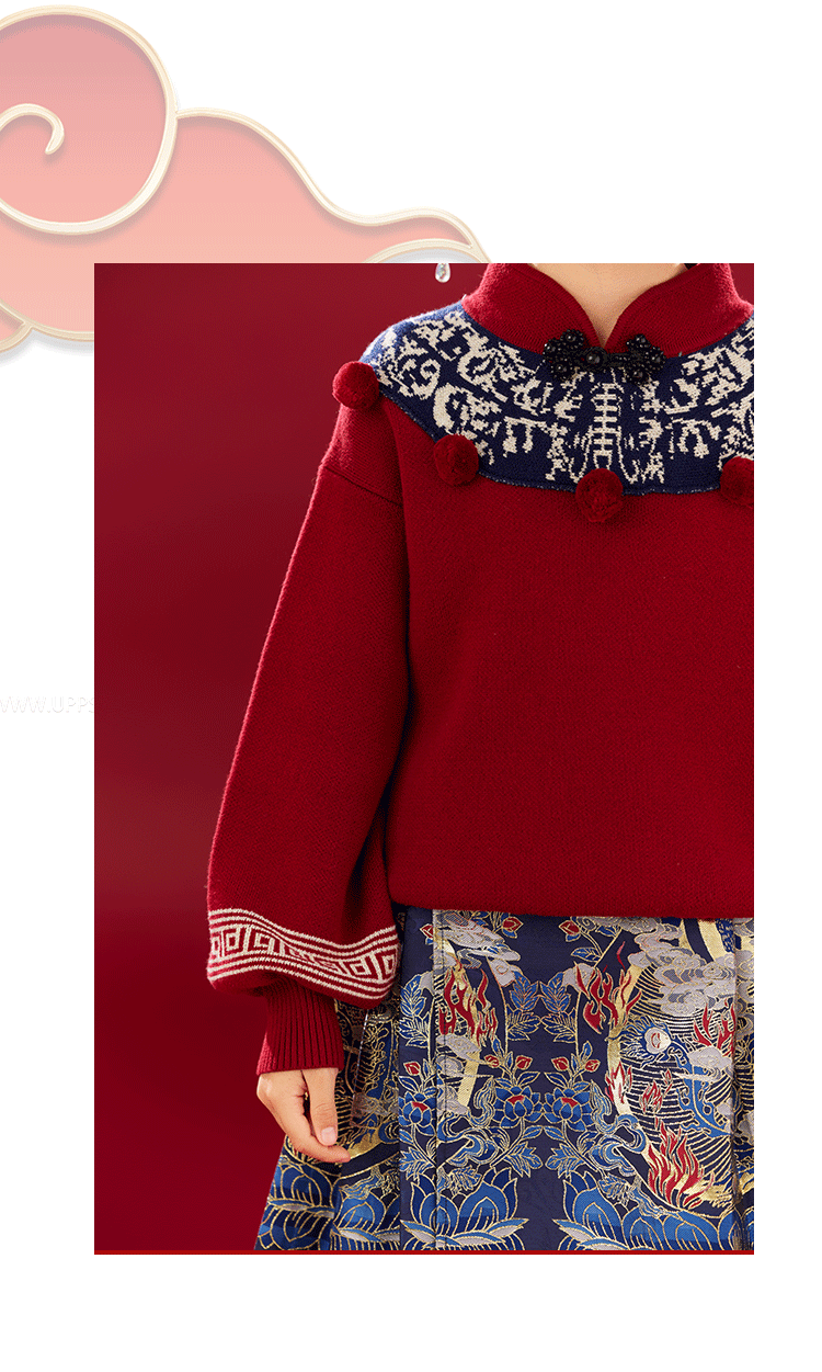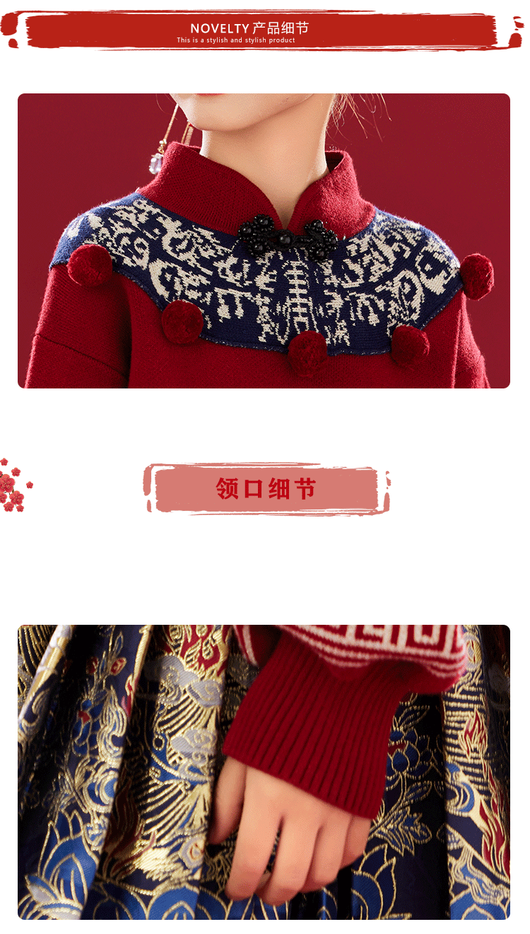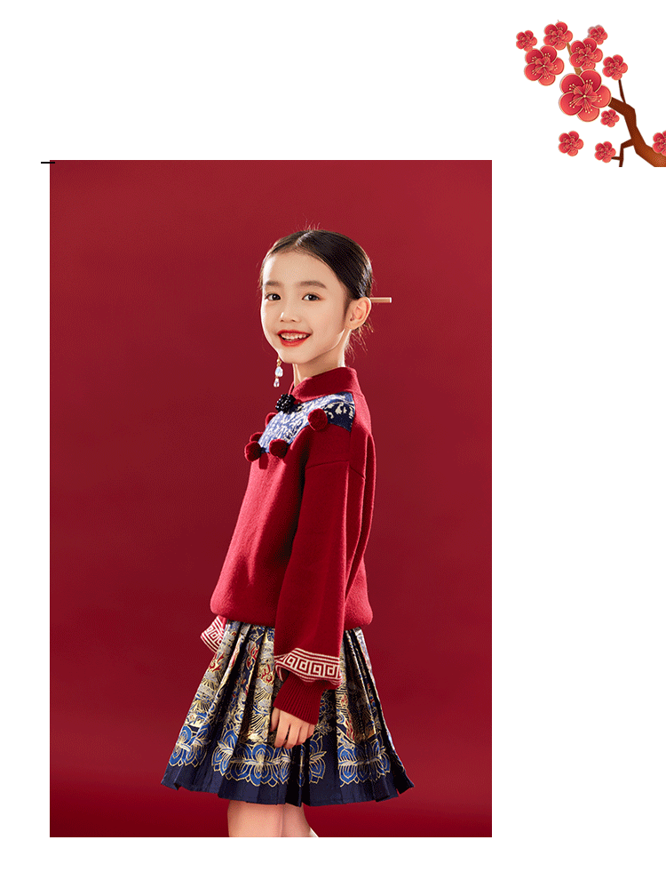 특별한 빨간 옷 대출 소녀 겨울 새해 니트 스웨터 새로운 중국 스타일 스웨터 말 얼굴 치마 세트스토어 가기