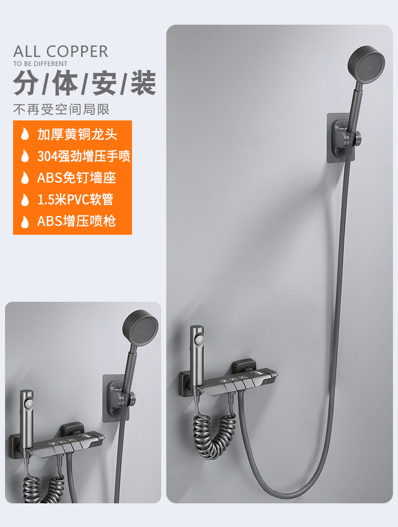 ✅Jh 건 그레이 샤워 압축 샤워 펀치-무료 욕실 샤워 분할 유형 모든 구리 피아노 키스토어 가기