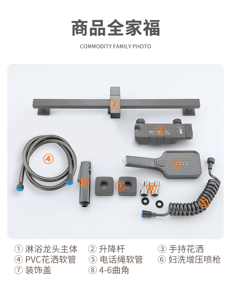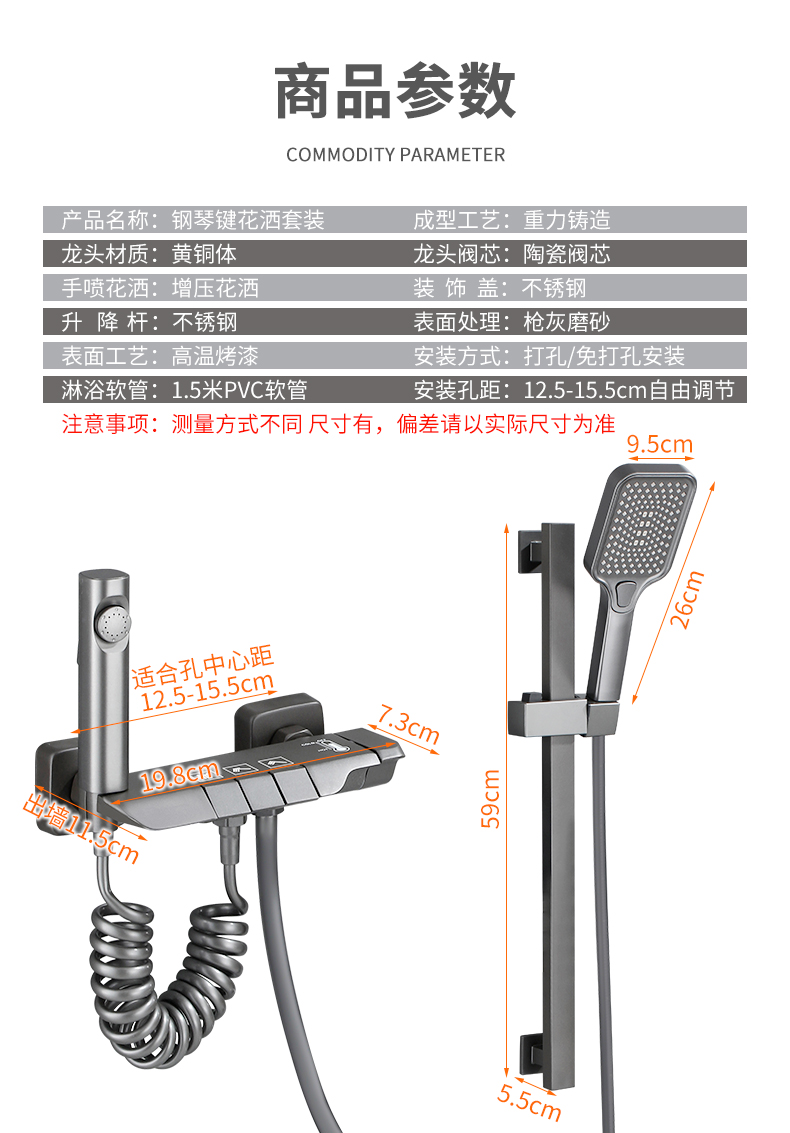 ✅Jh 건 그레이 샤워 압축 샤워 펀치-무료 욕실 샤워 분할 유형 모든 구리 피아노 키
