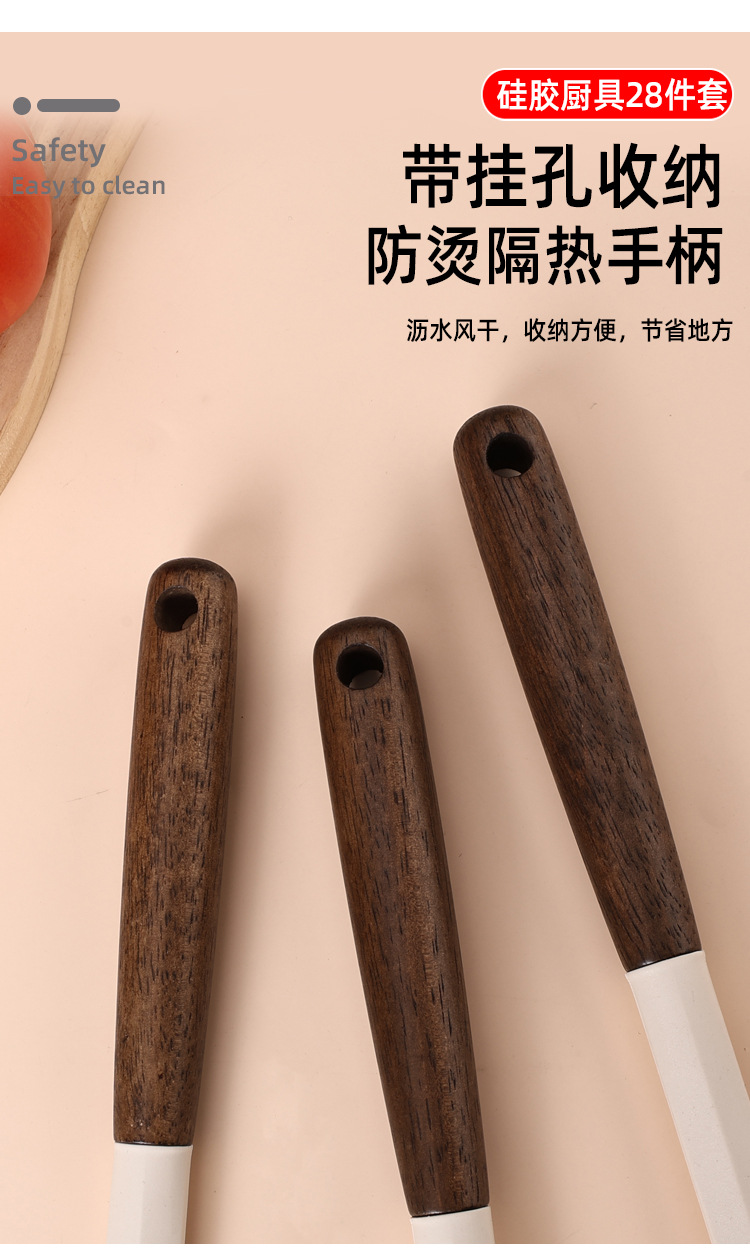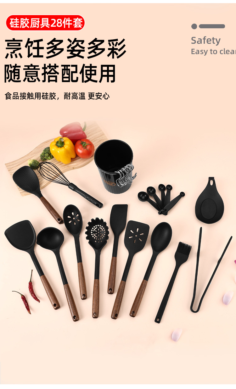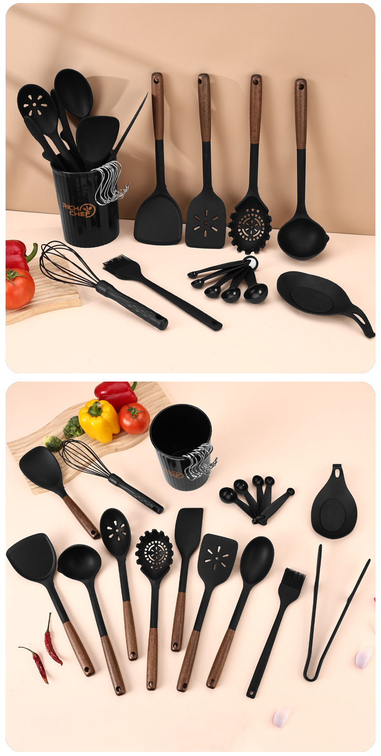 • 실리콘 나무 손잡이 주방용품 27종 세트(블랙)