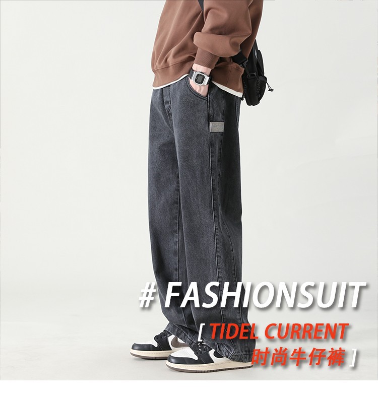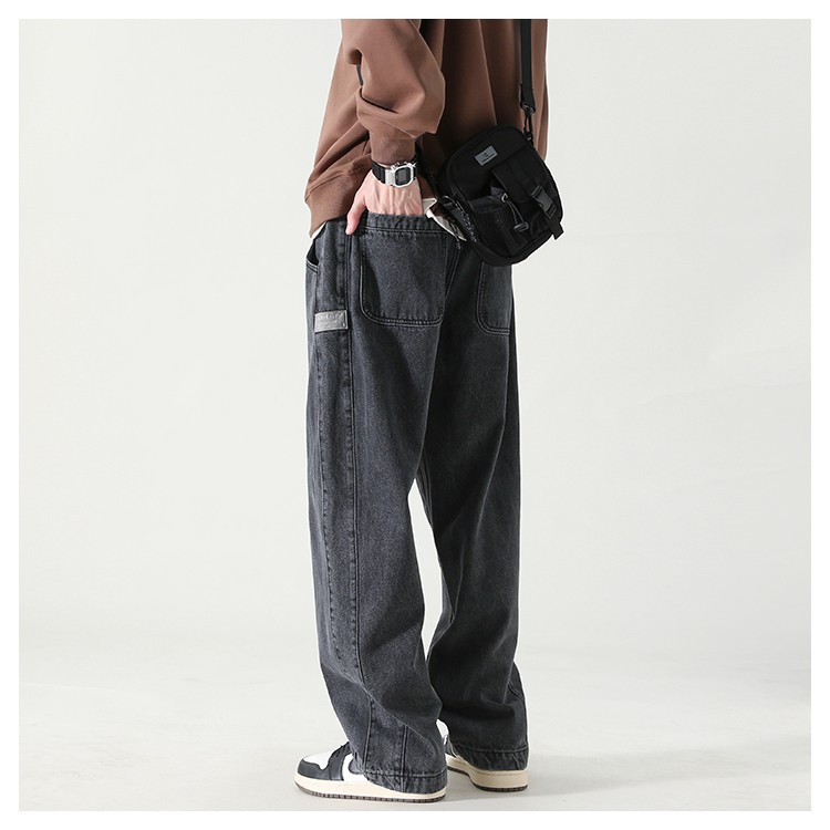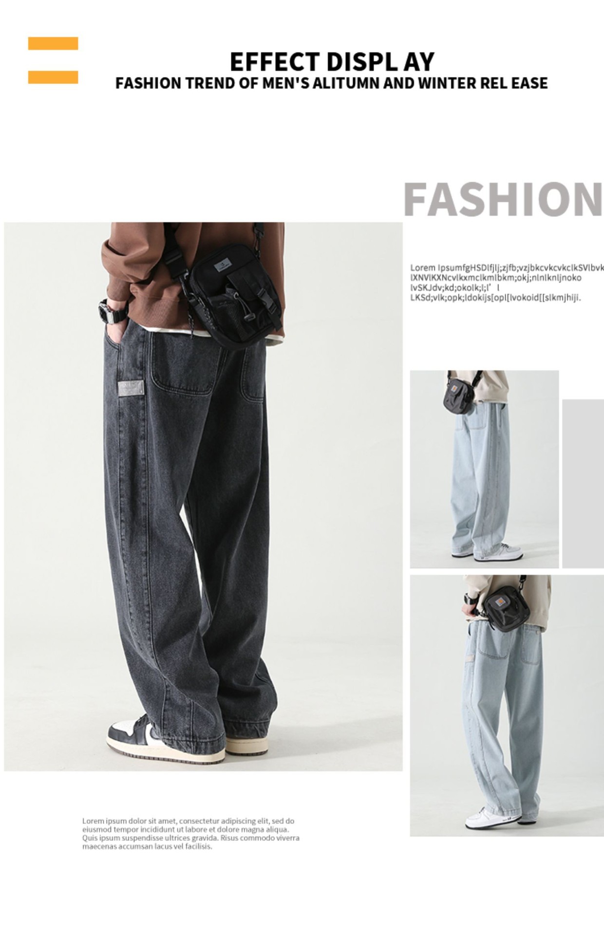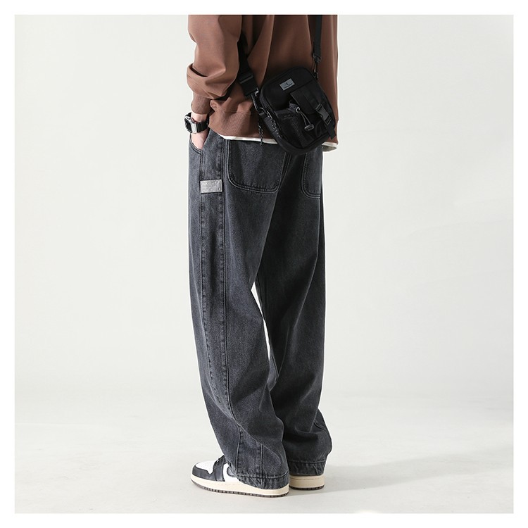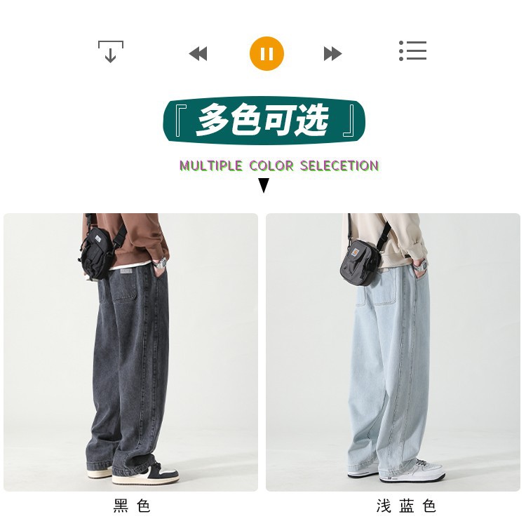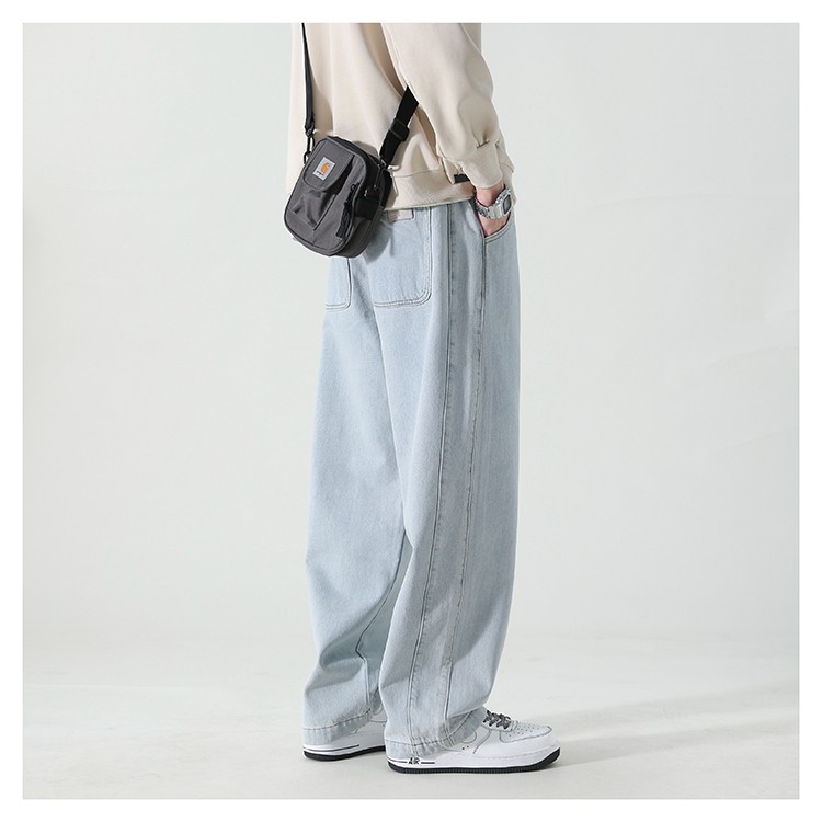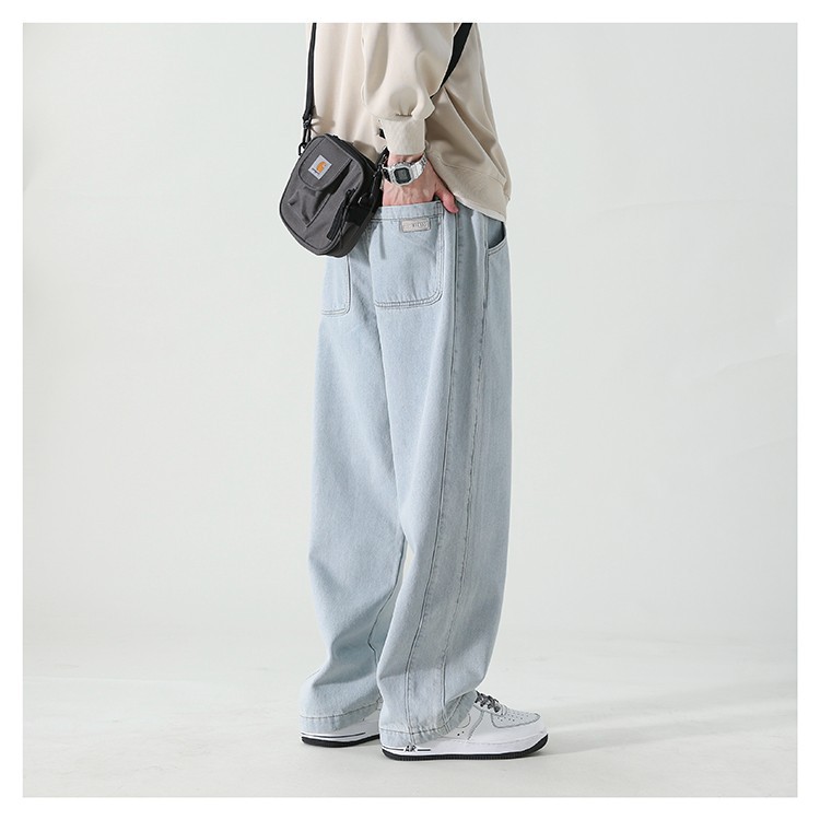 라이트 컬러 청바지 남성용 루즈 와시 스트레이트 Ins 인기 브랜드 아메리칸 스타일 하이 스트리트 남성용 와이드 레그 캐주얼 롱 팬츠스토어 가기