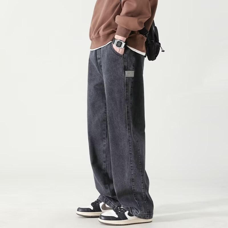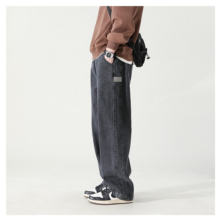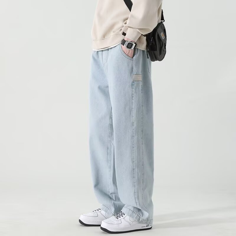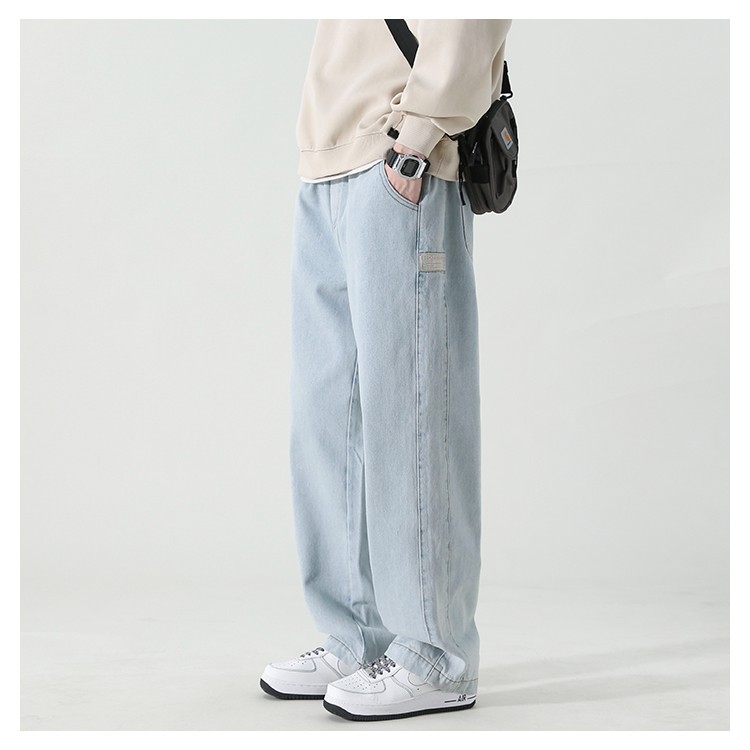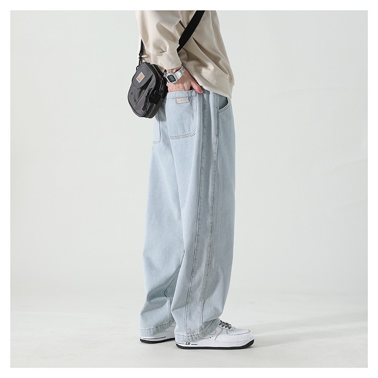 라이트 컬러 청바지 남성용 루즈 와시 스트레이트 Ins 인기 브랜드 아메리칸 스타일 하이 스트리트 남성용 와이드 레그 캐주얼 롱 팬츠