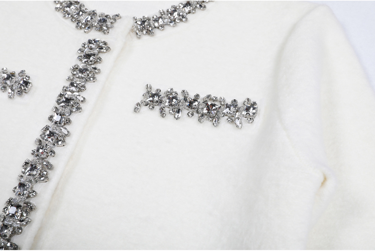 재고 2025 봄과 가을 새로운 패션 캐시미어 니트 스테이플 드릴 울 탑 카디건 코트 엉덩이 오버 스커트