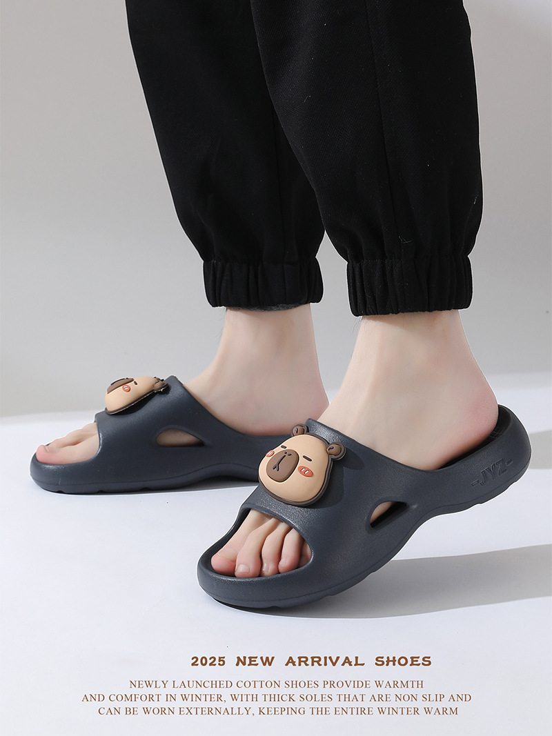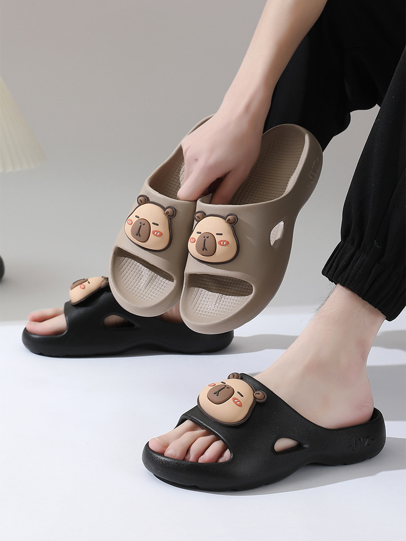 여성을위한 만화 Kapibara 샌들 여름 2025 새로운 부드러운 바닥 실내 홈 커플 슬리퍼 남성 슬리퍼