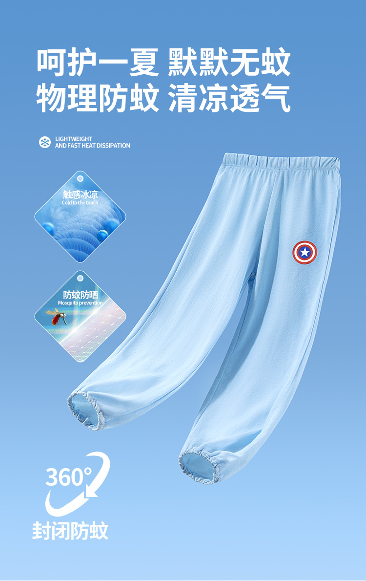 디즈니 여름 모기 방지 바지, 남아 및 여아용 루즈핏, 중대형 아동용 아우터 롱 팬츠, 편안한 아동용