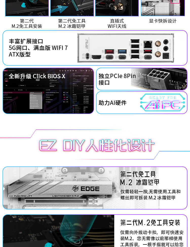 MPG B850 EDGE TI 와이파이 블레이드 티타늄 컴퓨터 마더 보드 지원 CPU AMD9