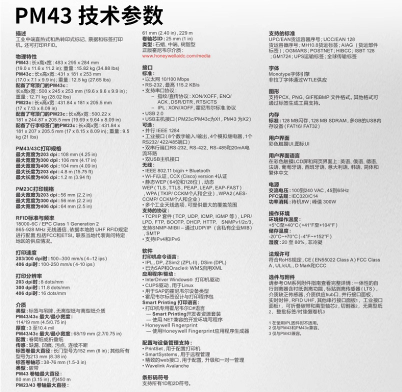 하니웰 하니웰 PM43/PM43C/PM23C 산업용 QR 코드 라벨 프린터 스티커