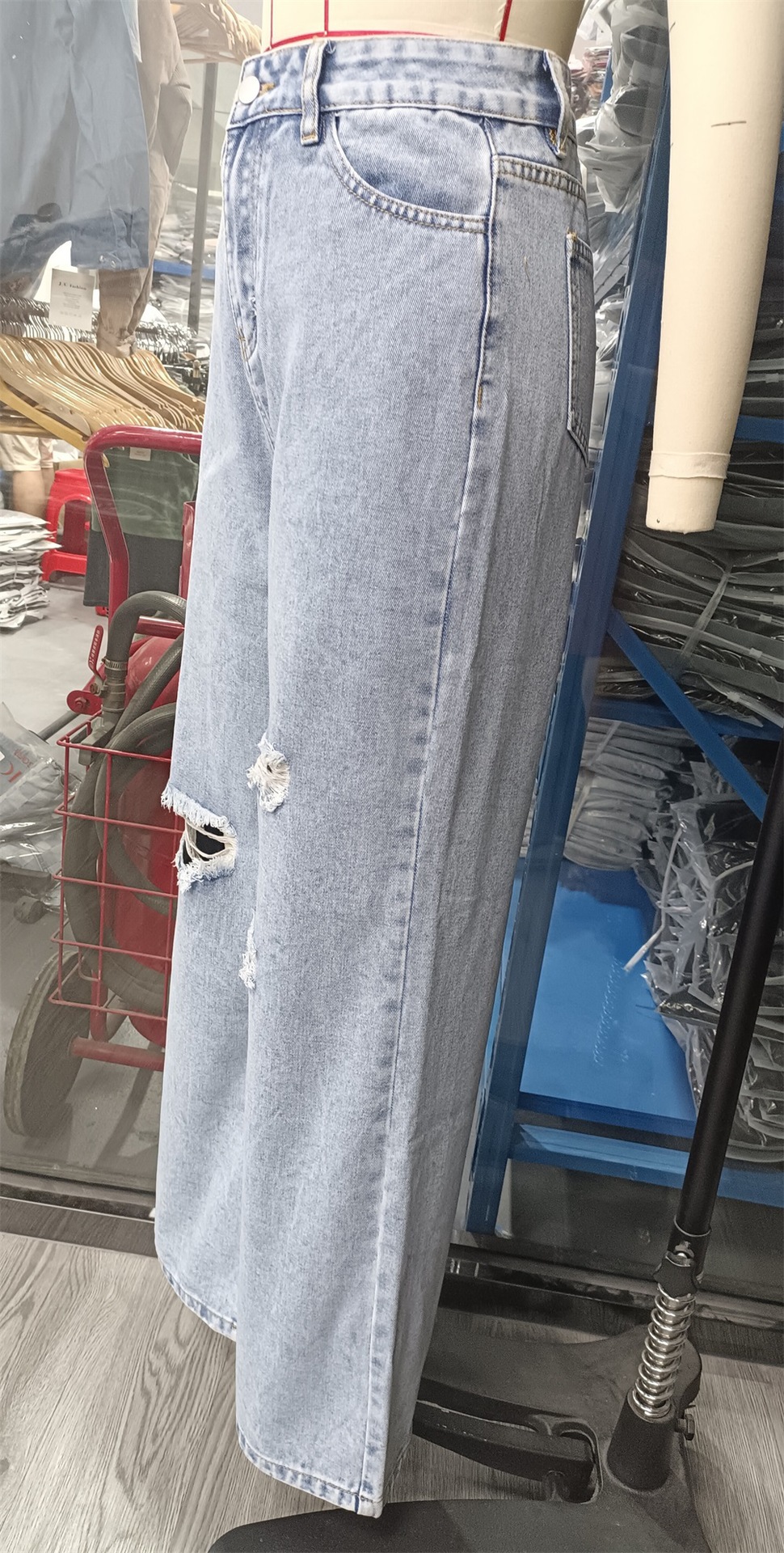 유럽과 미국의 대외 무역 국경 독립 역 청바지 여성 여성 여성 JEANS 블루 리핑 워시 워터 스트레이트 바지 여성