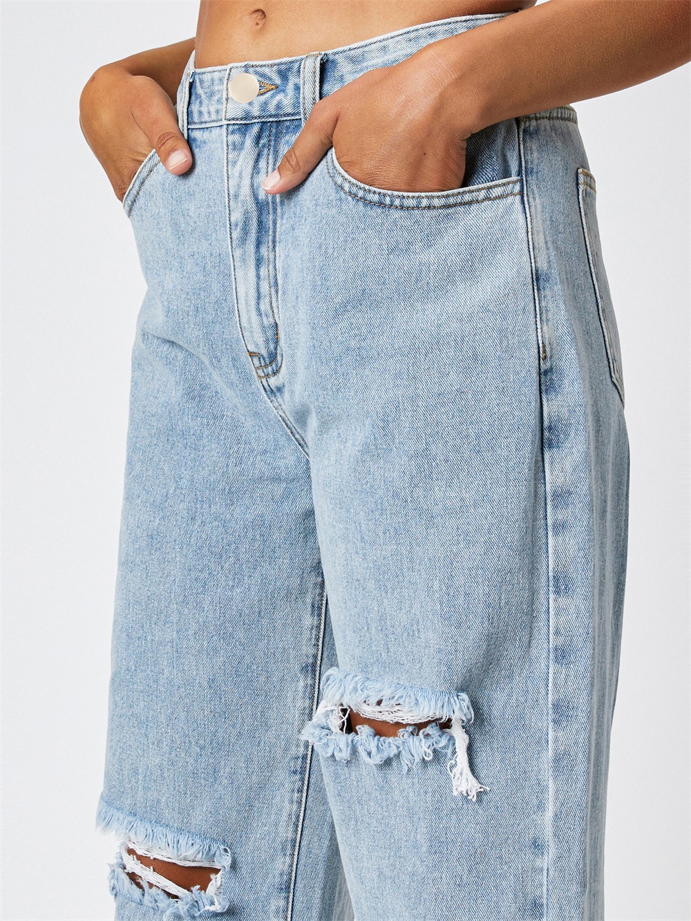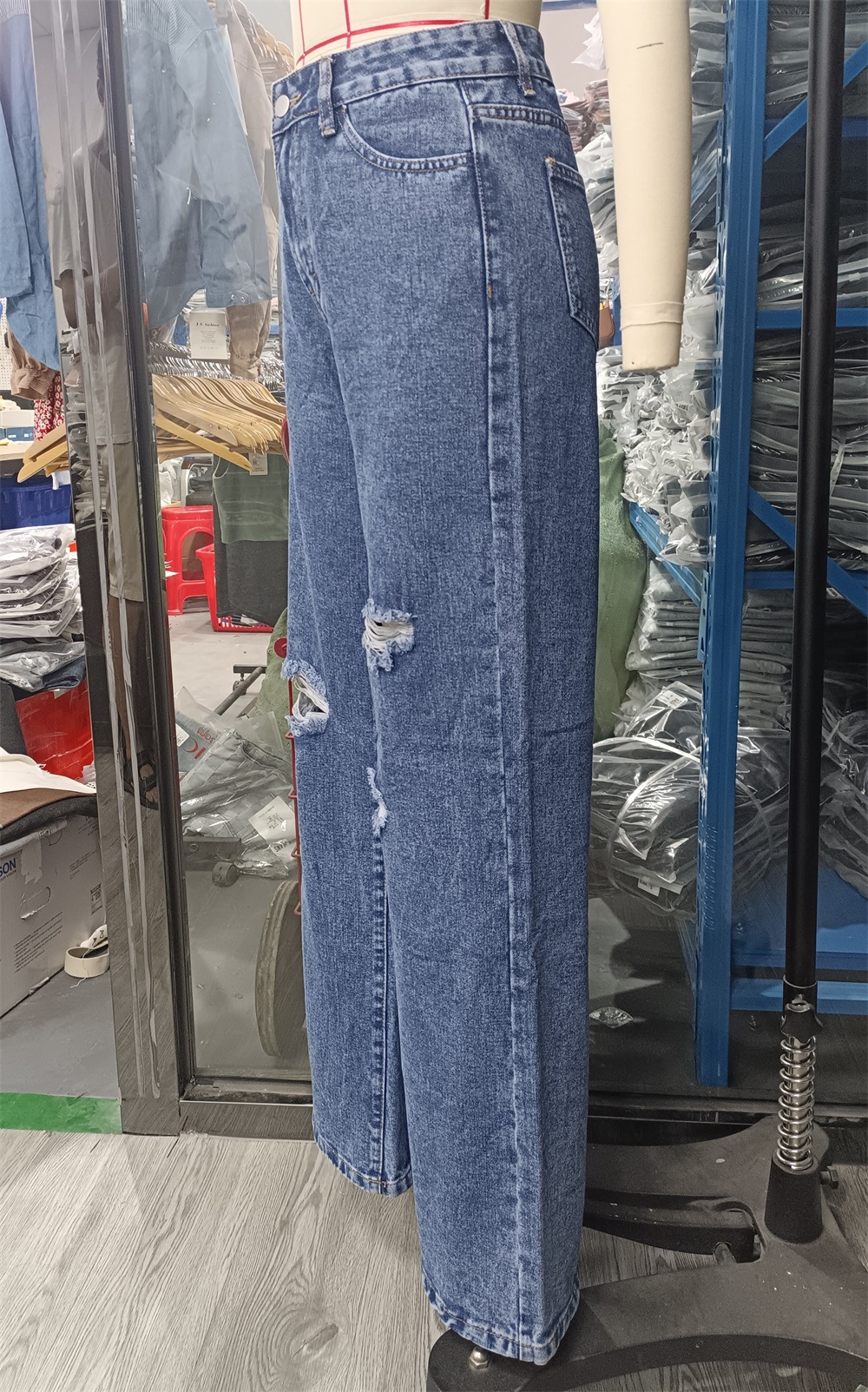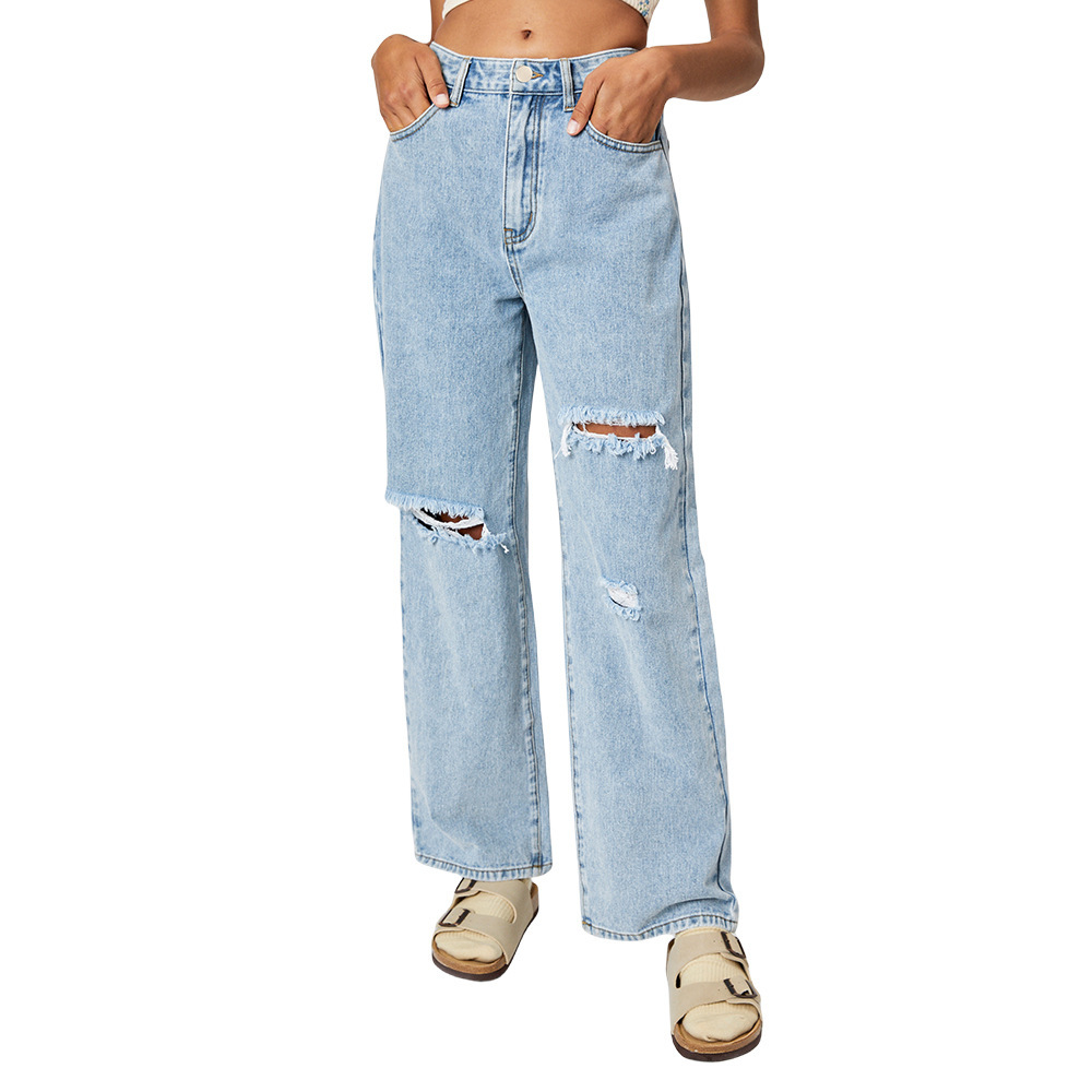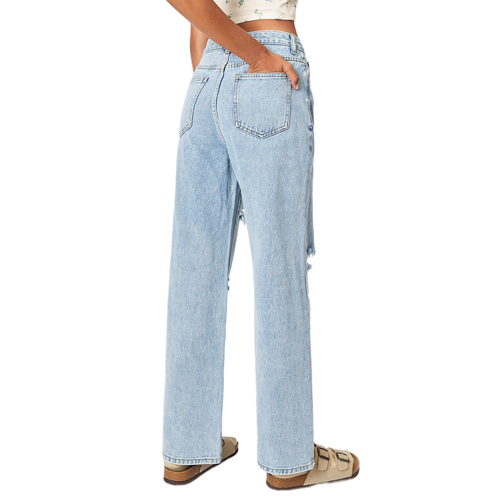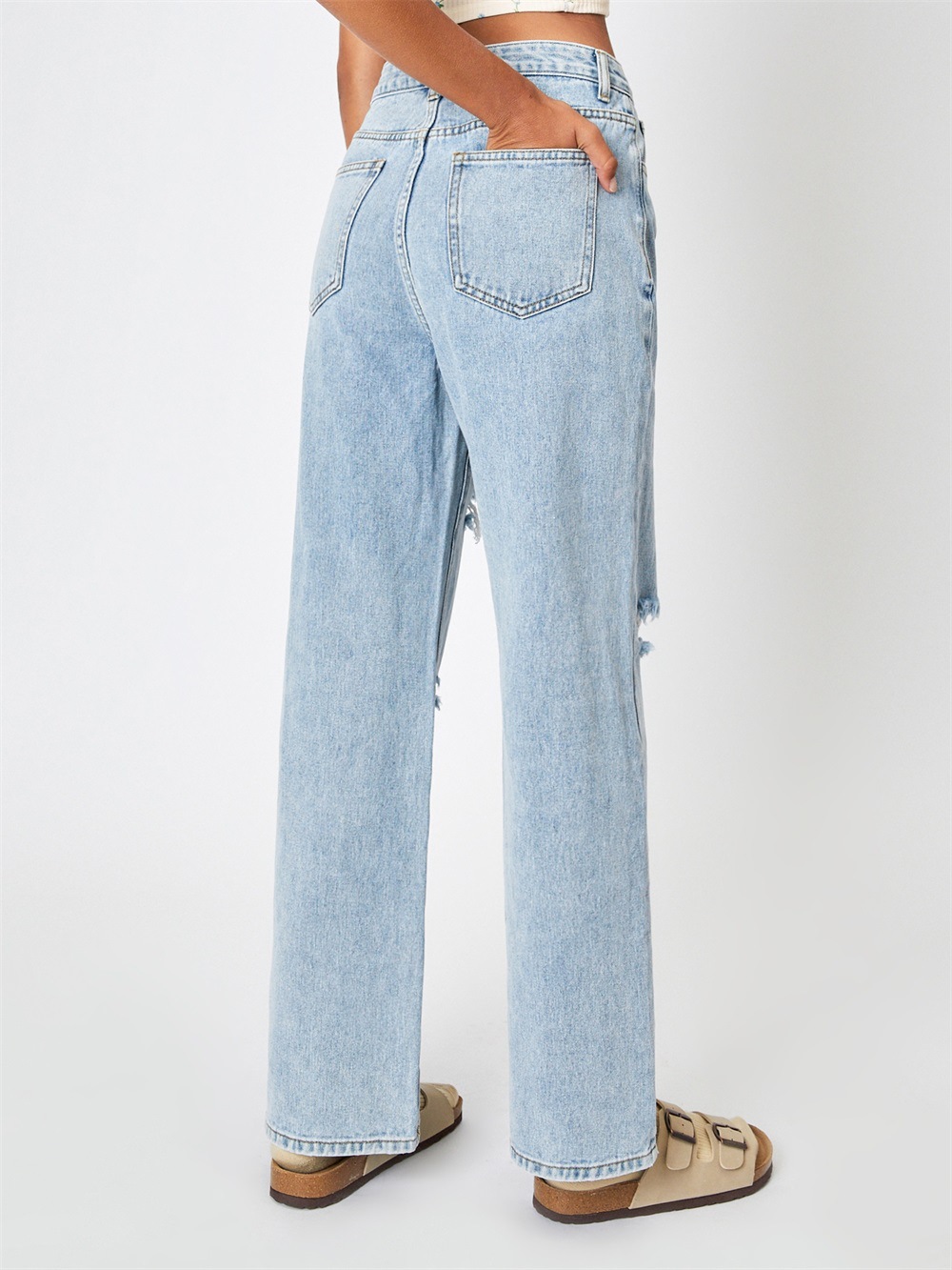 유럽과 미국의 대외 무역 국경 독립 역 청바지 여성 여성 여성 JEANS 블루 리핑 워시 워터 스트레이트 바지 여성스토어 가기