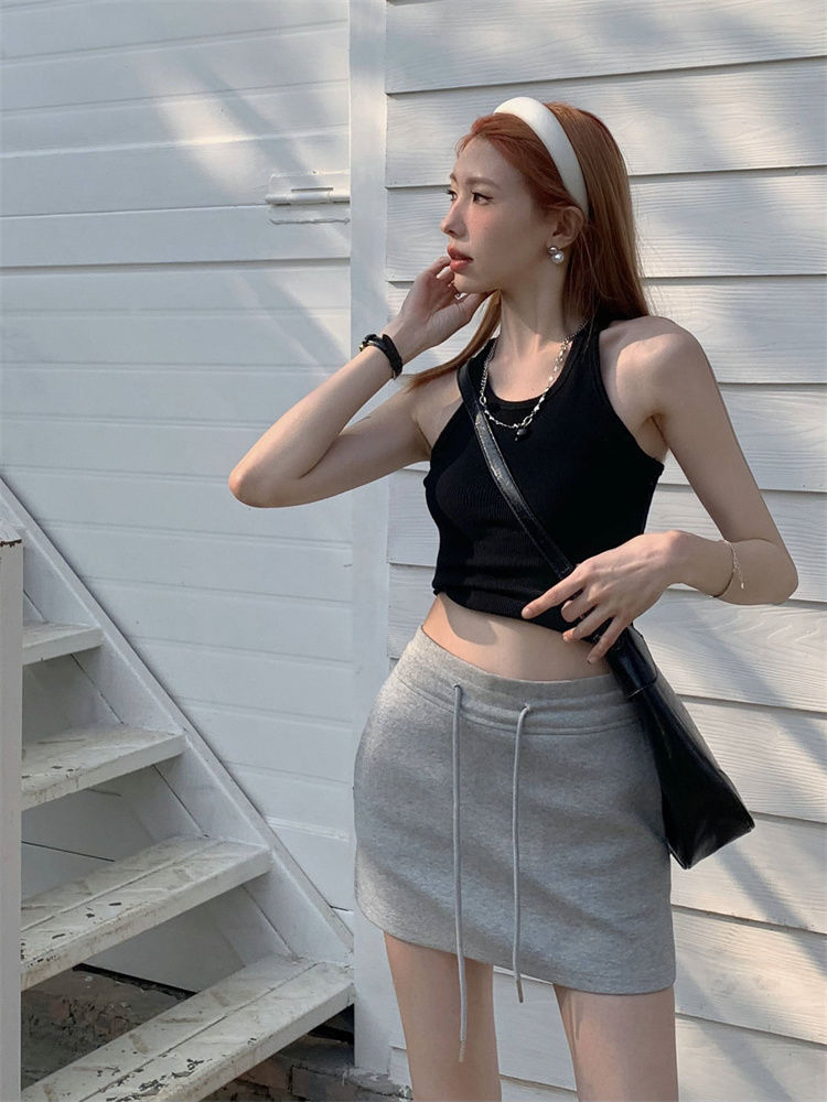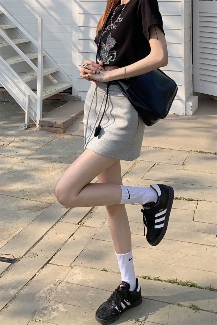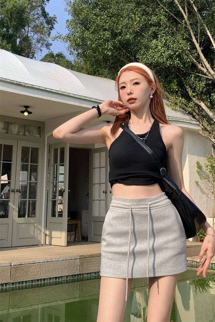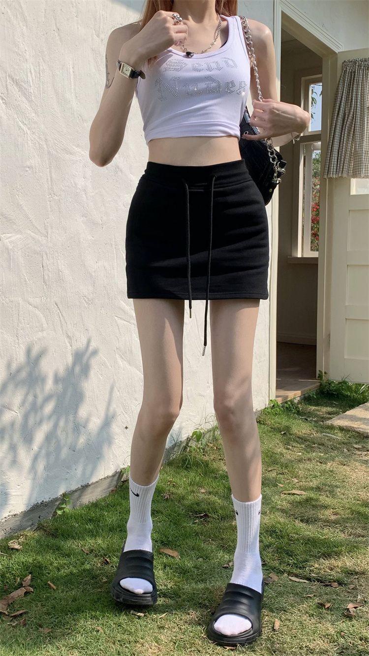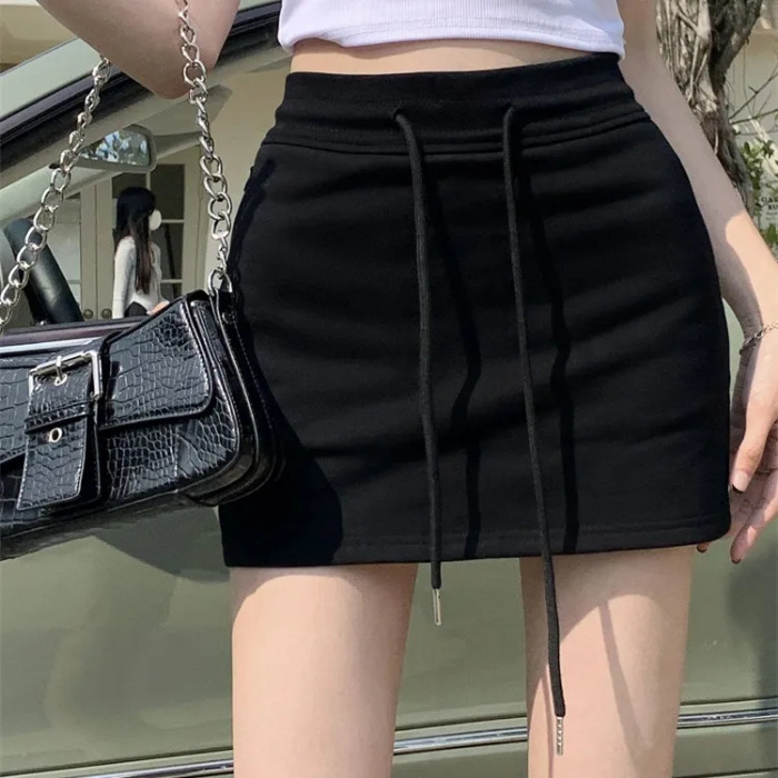 (줄 지어) 드로스트링 스포츠 스커트 여자 여름 새로운 캐주얼 스포츠 스커트 높은 허리 올 매치 힙합 스커트