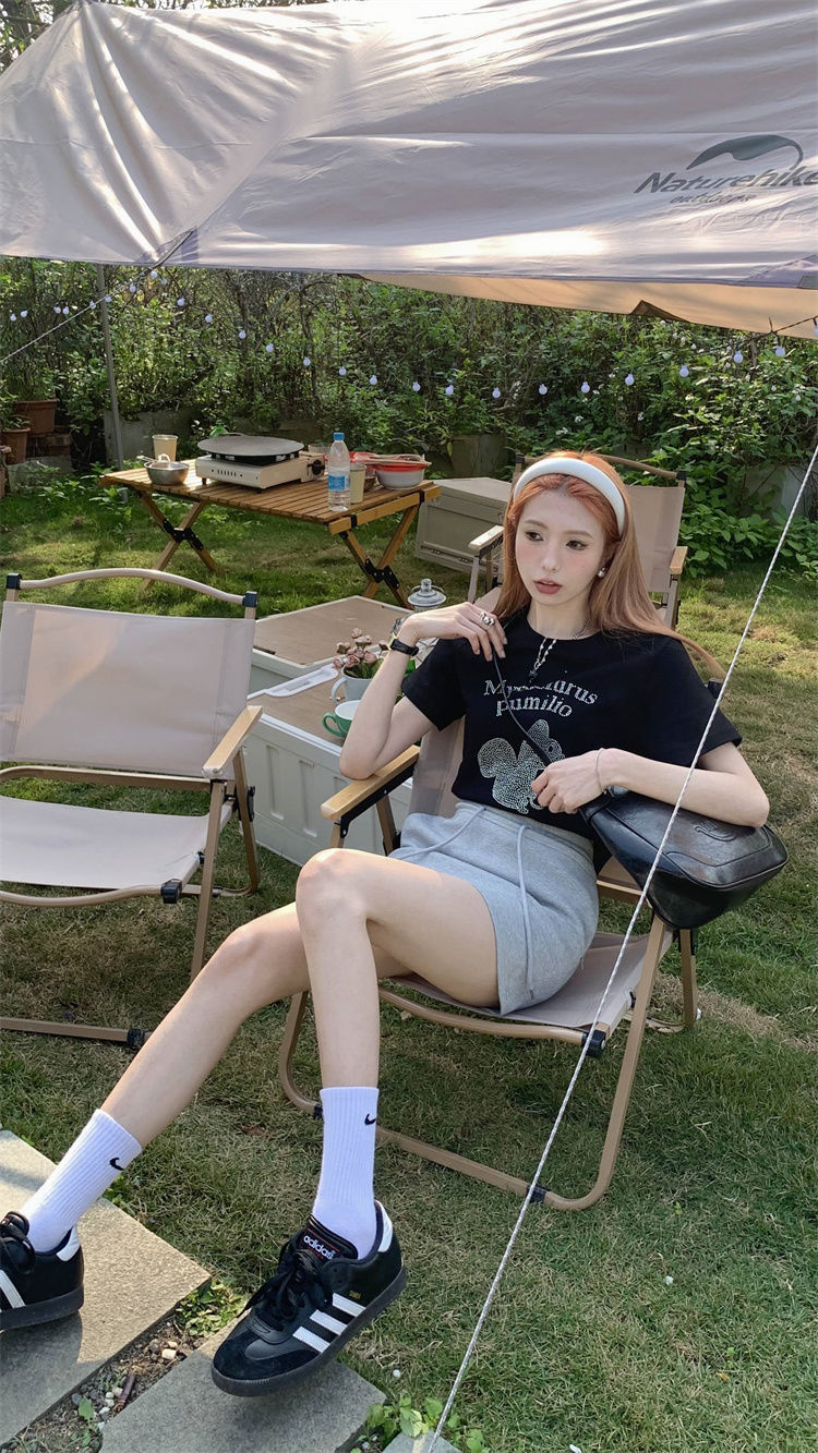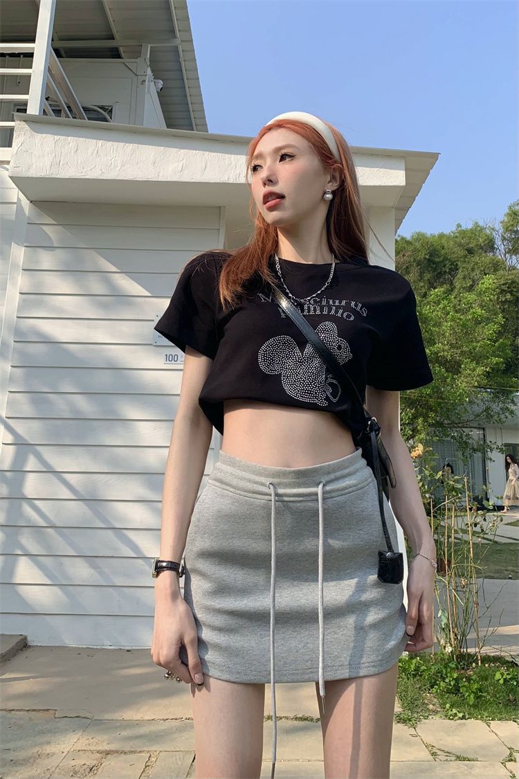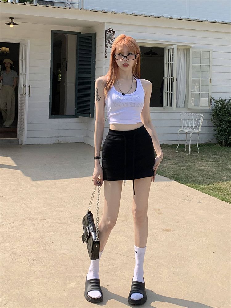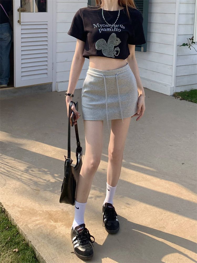 (줄 지어) 드로스트링 스포츠 스커트 여자 여름 새로운 캐주얼 스포츠 스커트 높은 허리 올 매치 힙합 스커트