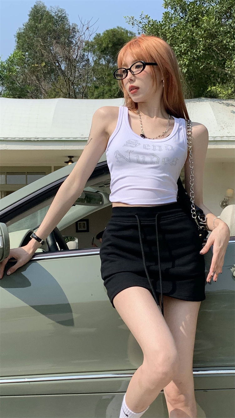 (줄 지어) 드로스트링 스포츠 스커트 여자 여름 새로운 캐주얼 스포츠 스커트 높은 허리 올 매치 힙합 스커트스토어 가기