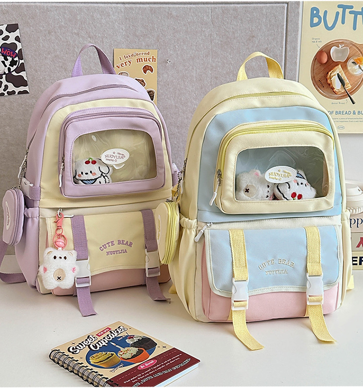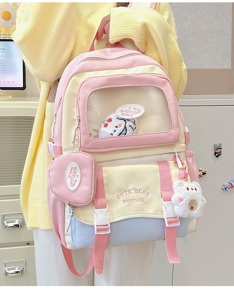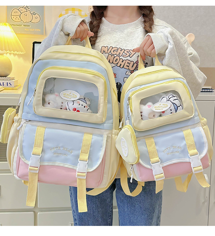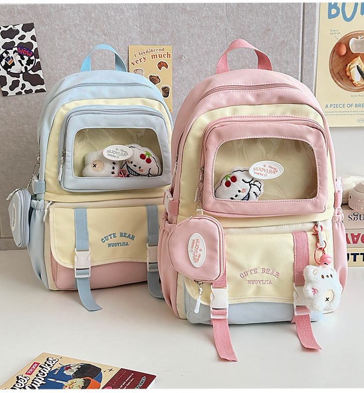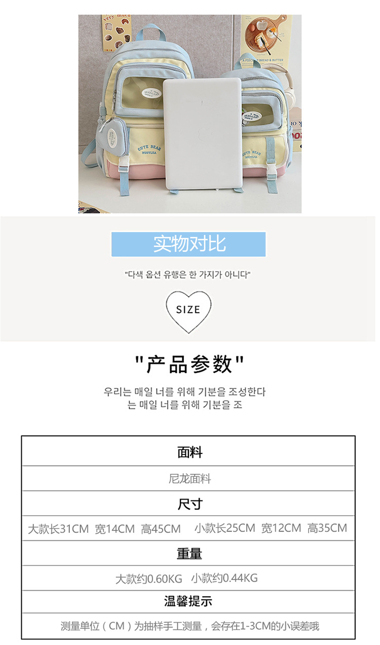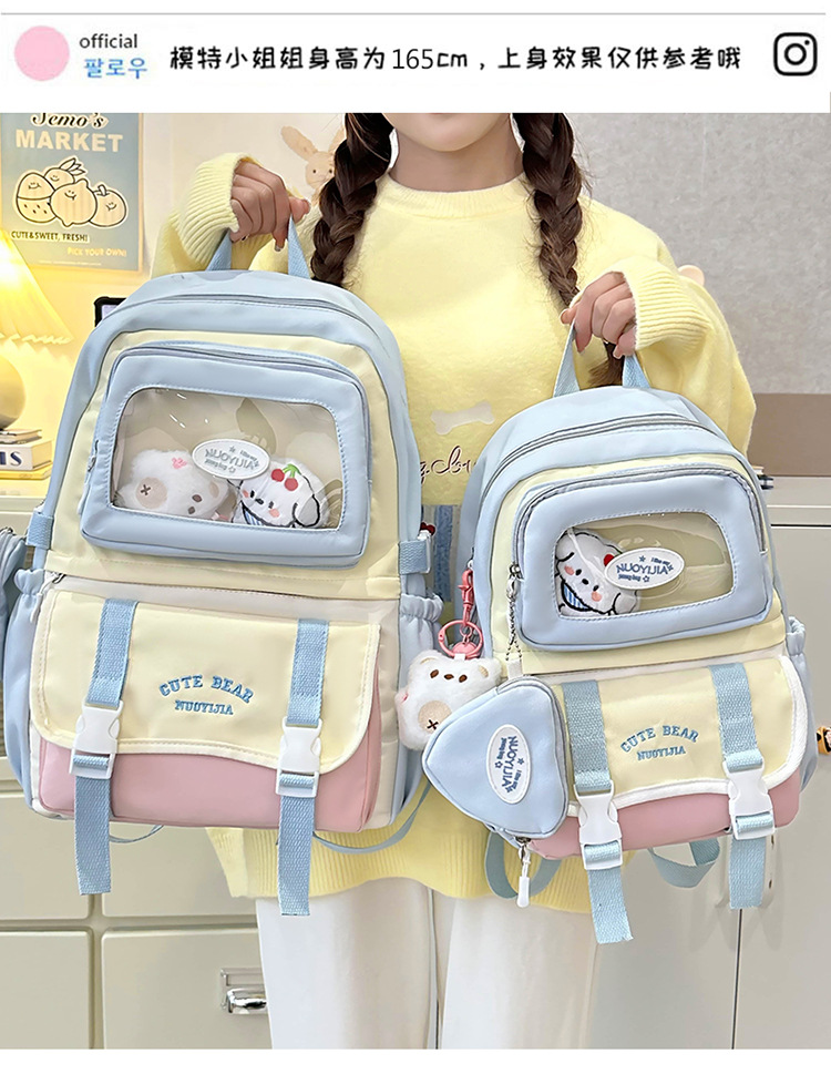 Schoolbag 어린이 초등학생 3-6 학년 신선하고 귀여운 배낭 달콤하고 아름다운 바람 대비 색 투명 레이어 통증 가방스토어 가기