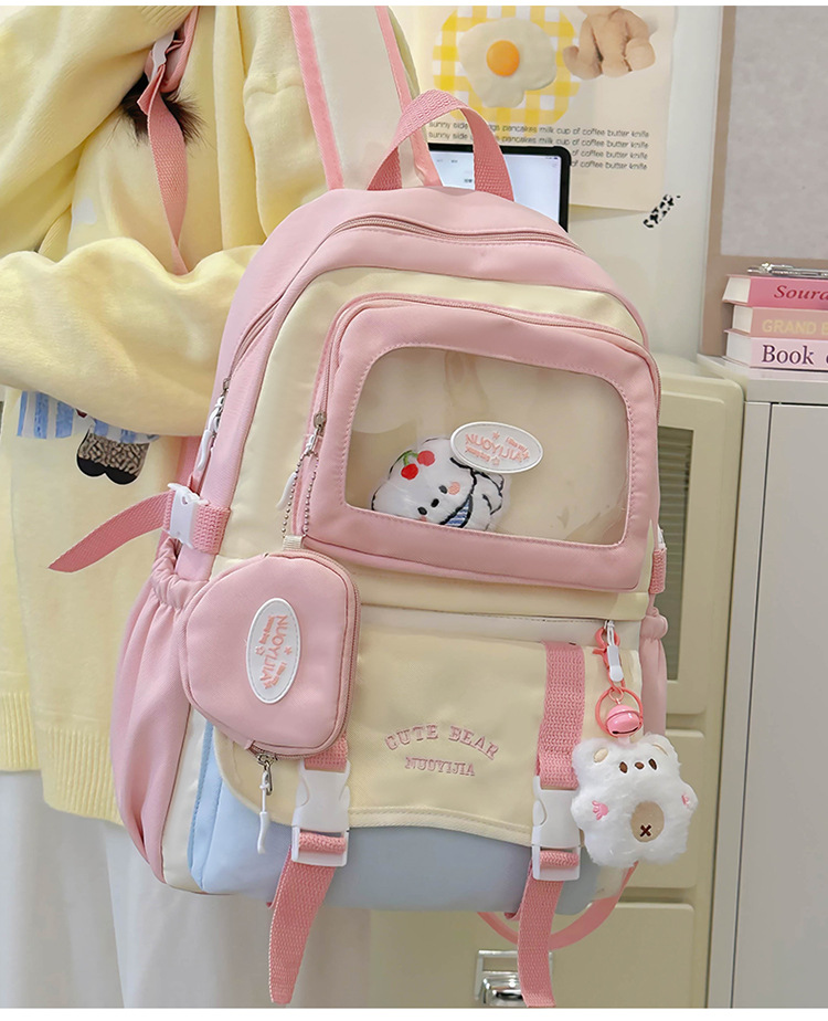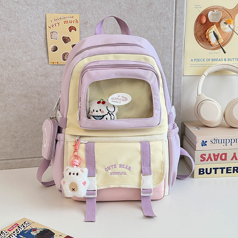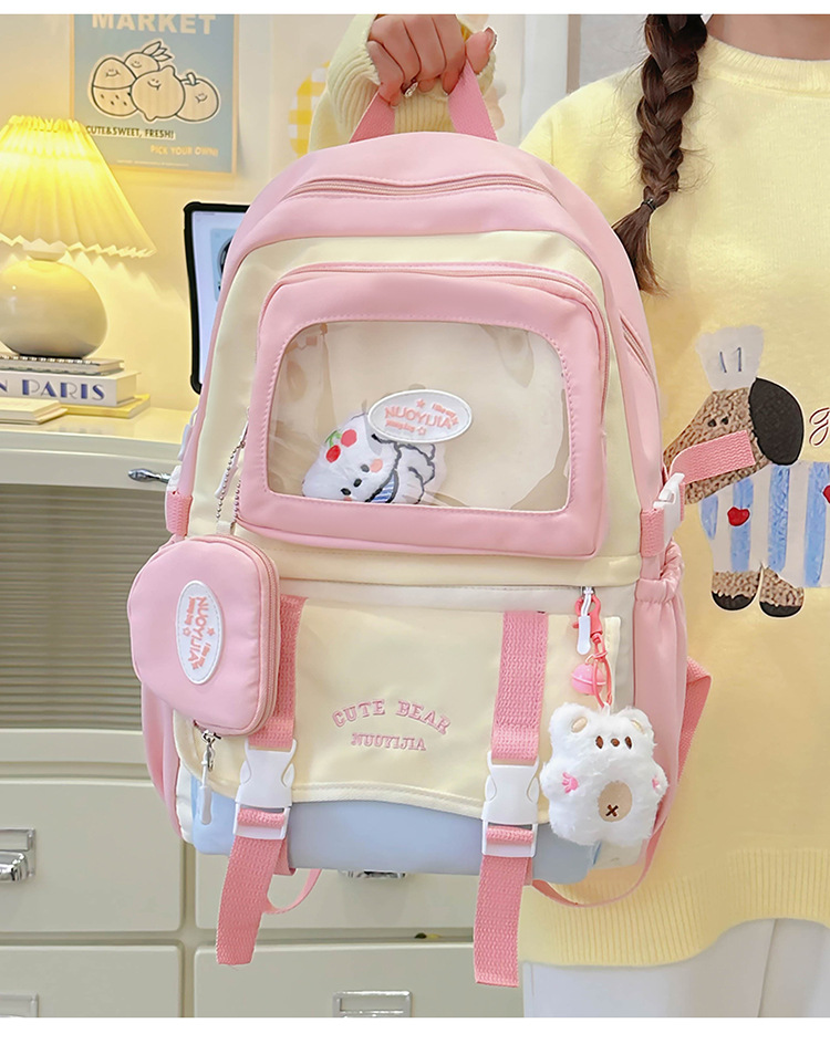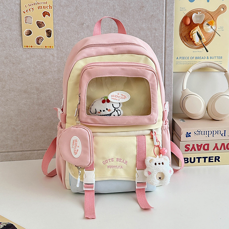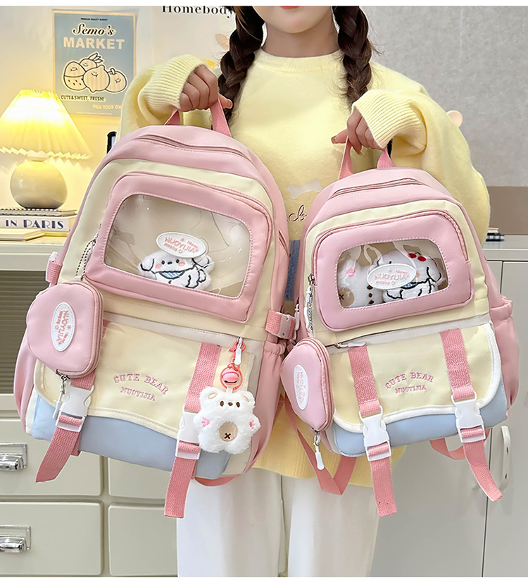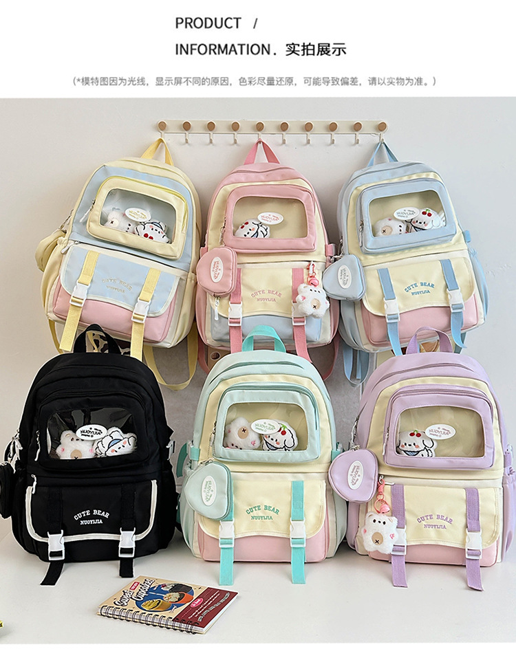 Schoolbag 어린이 초등학생 3-6 학년 신선하고 귀여운 배낭 달콤하고 아름다운 바람 대비 색 투명 레이어 통증 가방스토어 가기