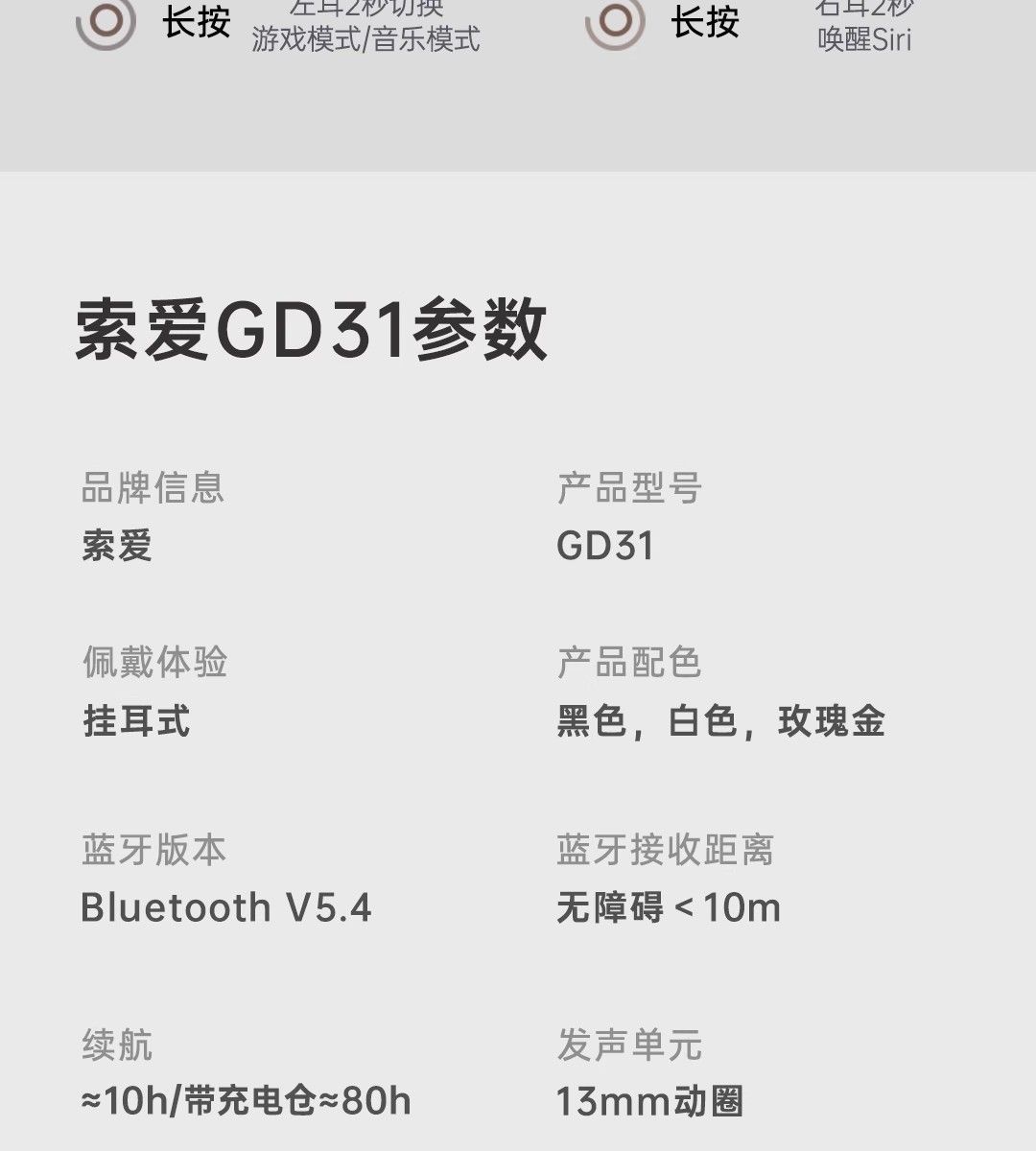 소니에어 GD31 블루투스 이어폰 AI 귀걸이형 무선 비삽입형 골전도 2025 신제품 선물 대행