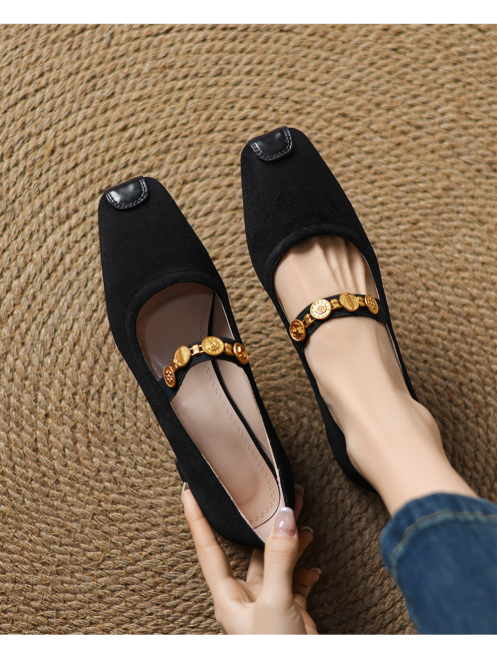 31-43 사이즈 신발 사각 발가락 두꺼운 얕은 발 뒤꿈치 신발 여성 봄 4.5cm 뒤꿈치 여성 신발 대외 무역 국경 신발스토어 가기