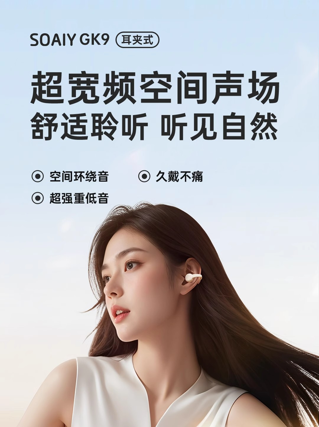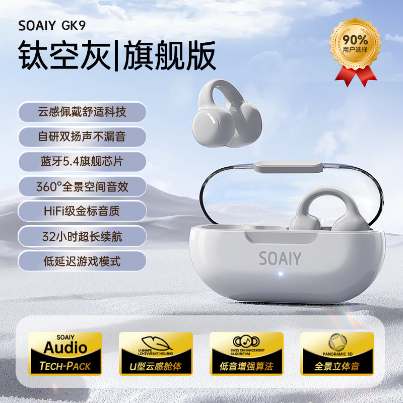 소니에어(GK9) 블루투스 이어폰 무선 골전도 오픈형 이어클립 스포츠 러닝 장시간 착용도 통증 없음