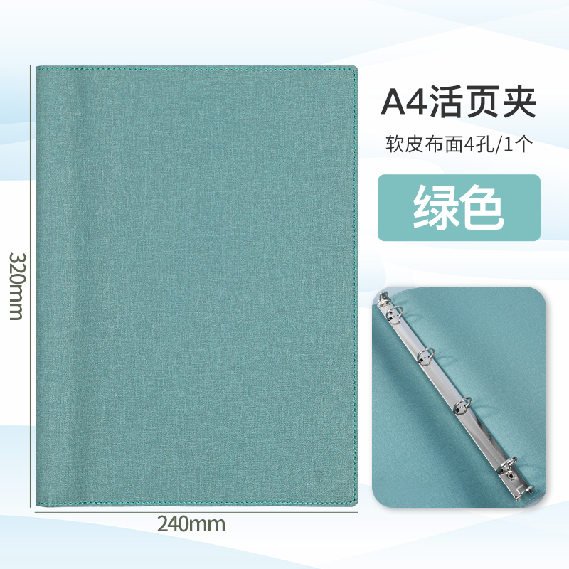 • bA4 천 부드러운 가죽 바인더 녹색-4 구멍(쉘만)