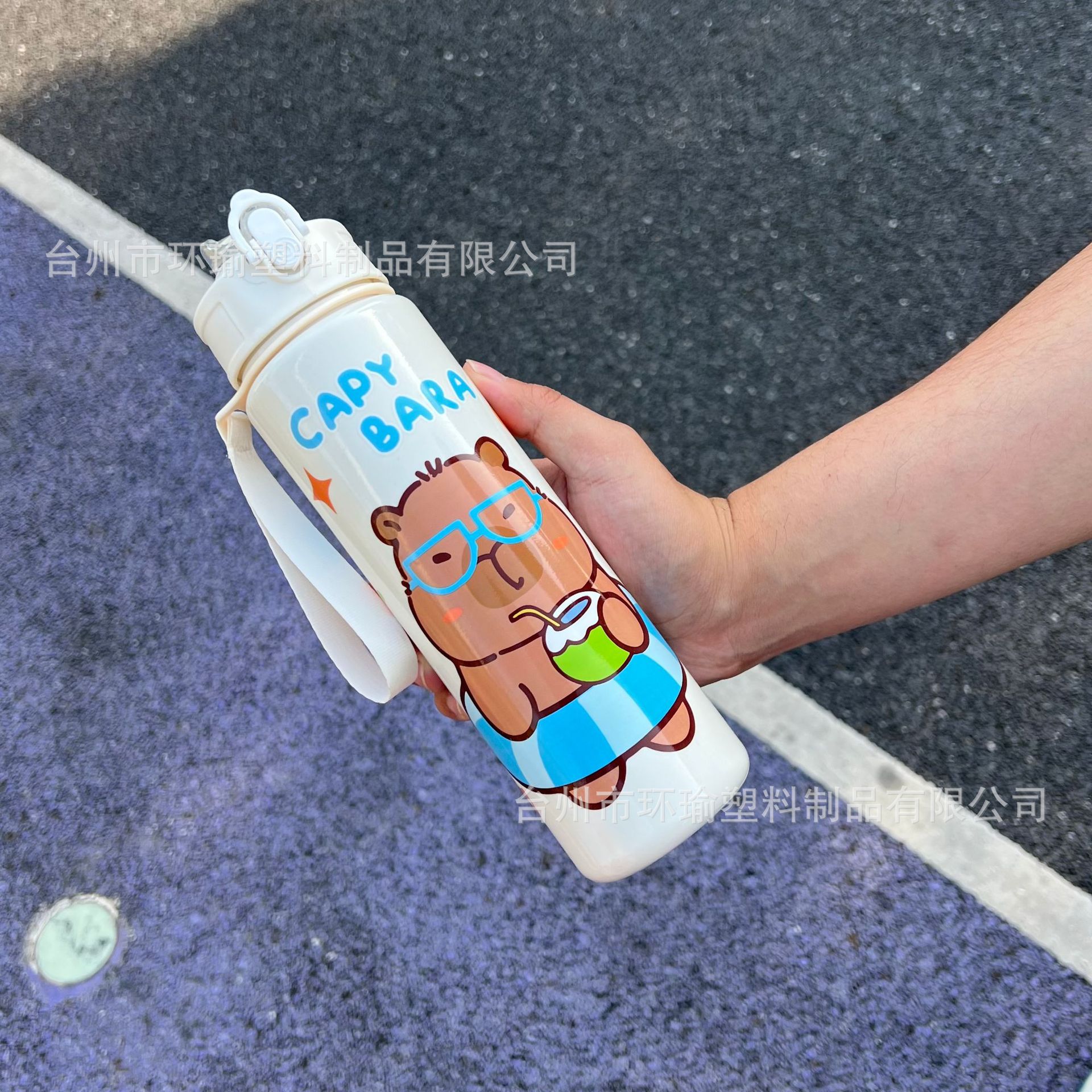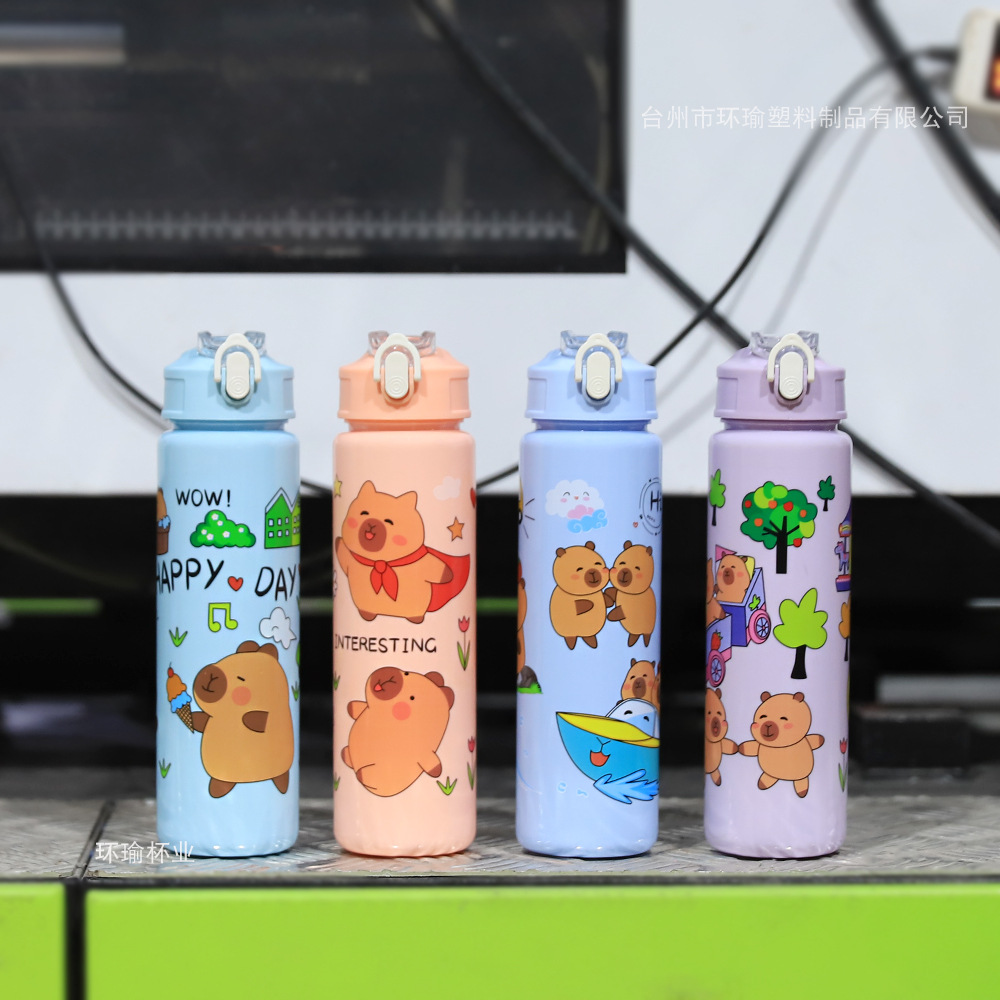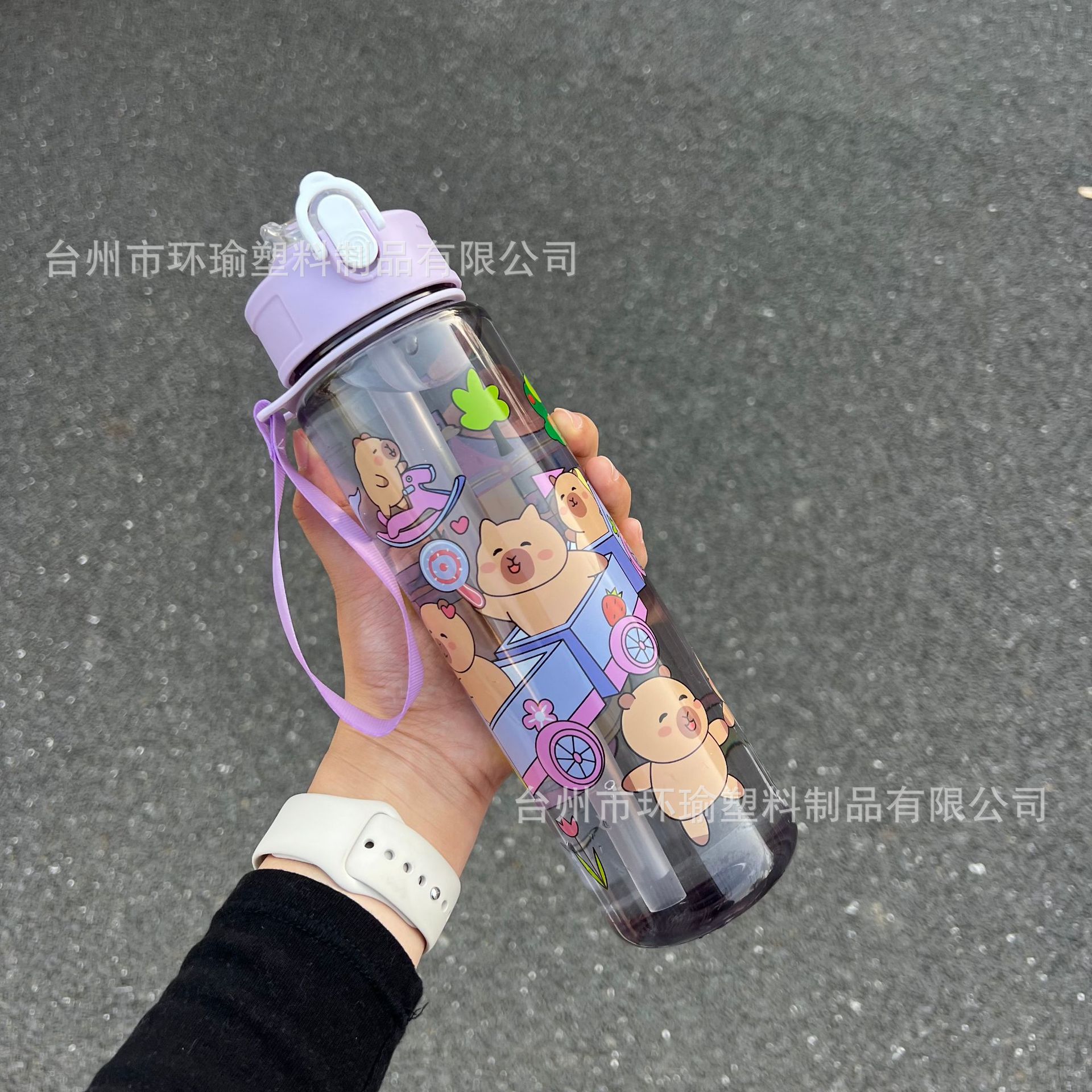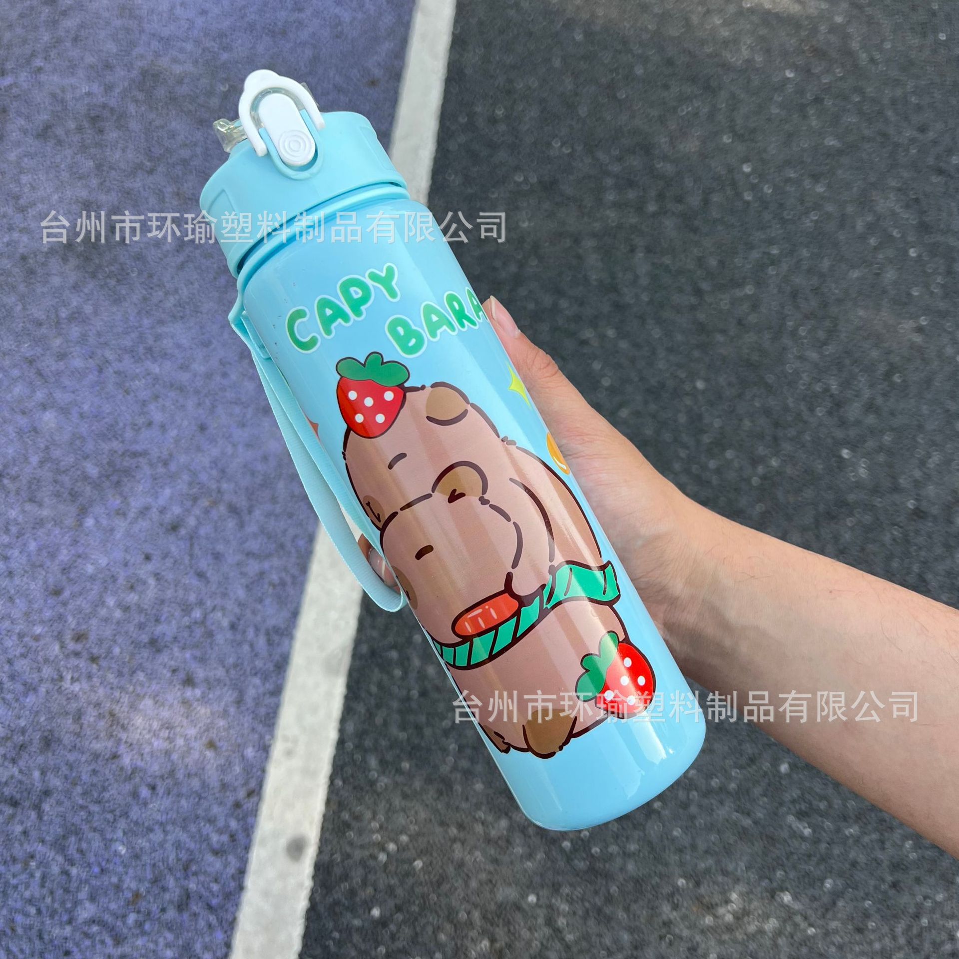 크로스보더 카피발라 중형 컵 곰돌이 빨대 물컵 학생용 탄성 스트랩 만화 스포츠 피트니스 컵