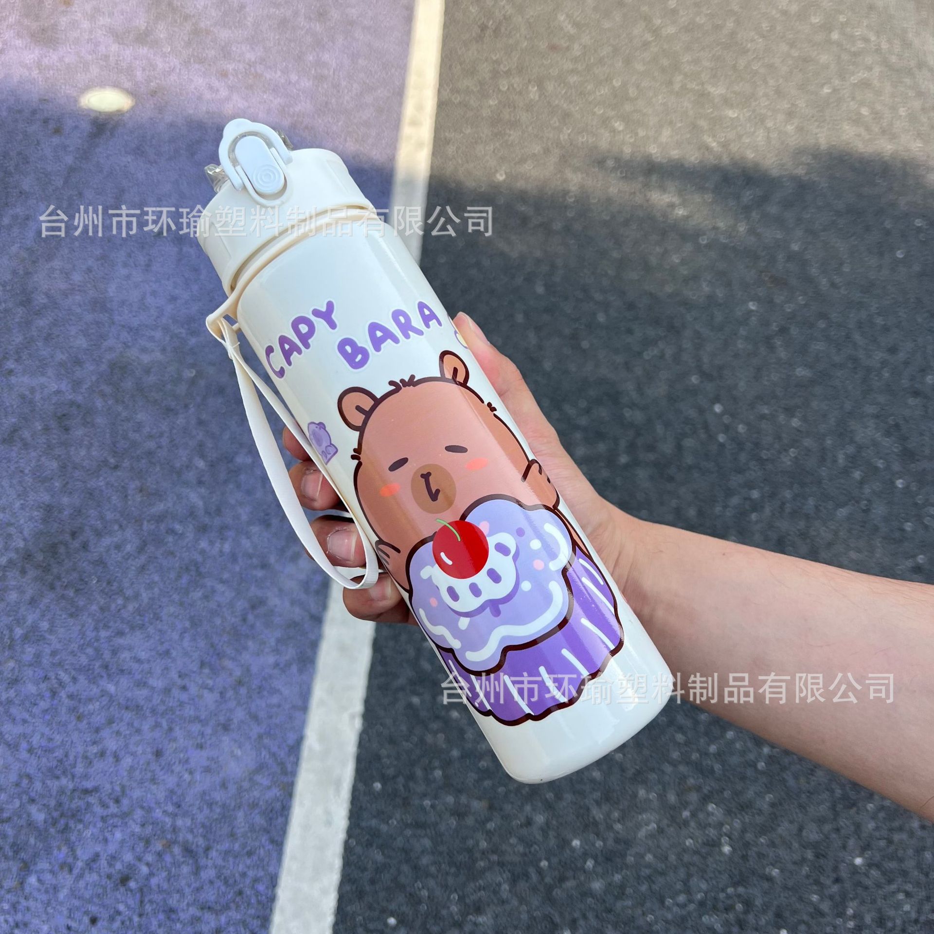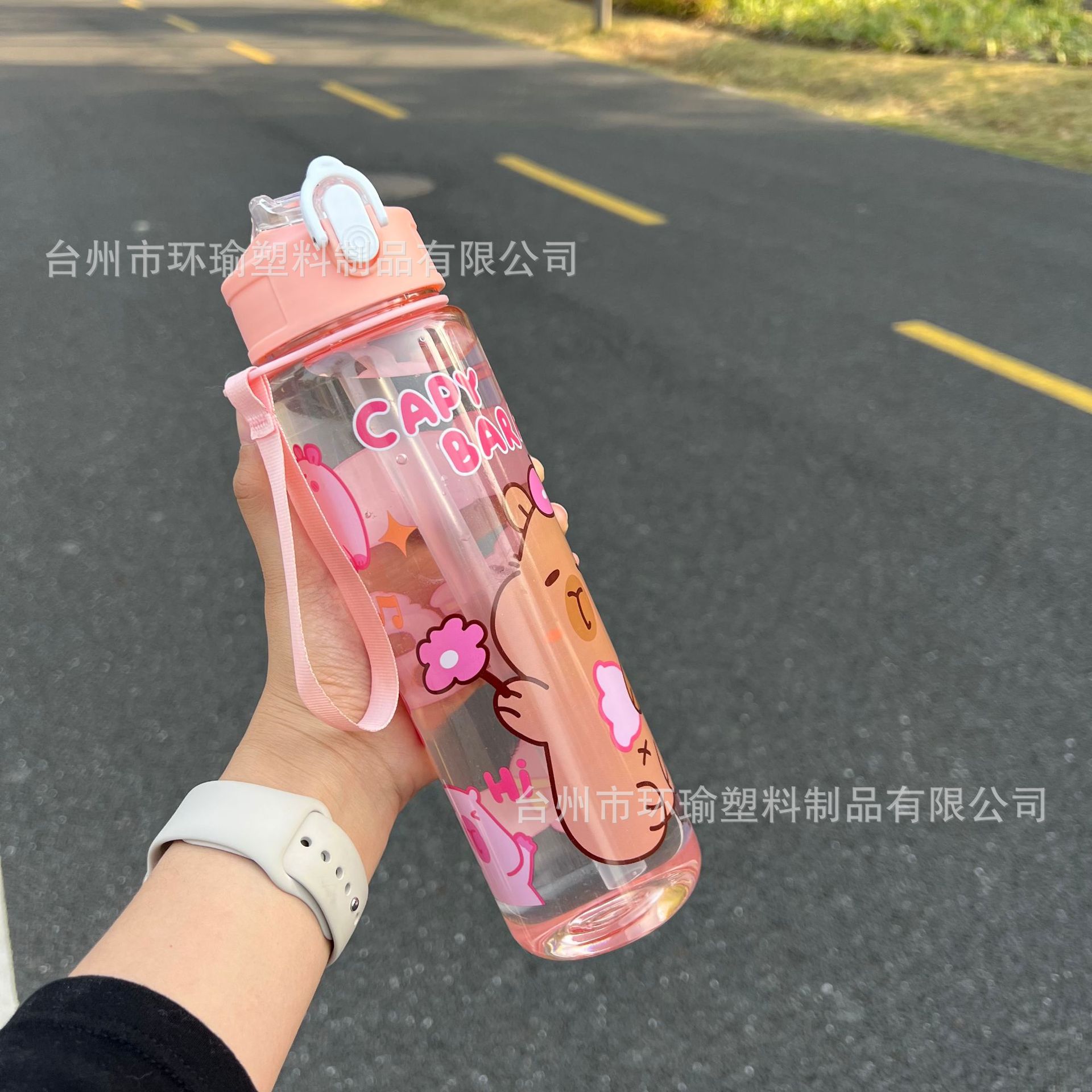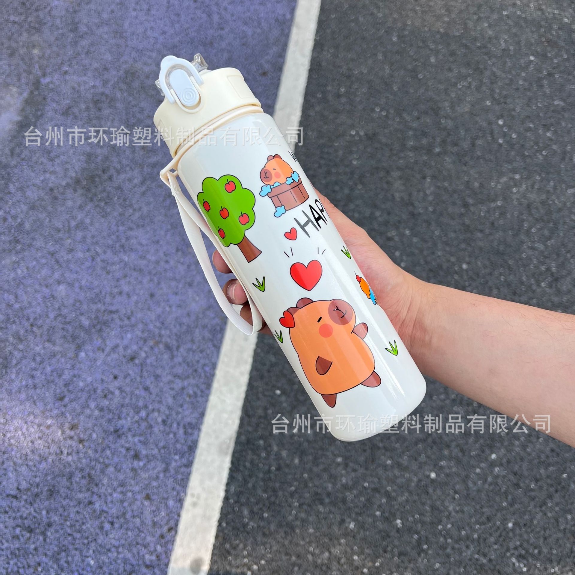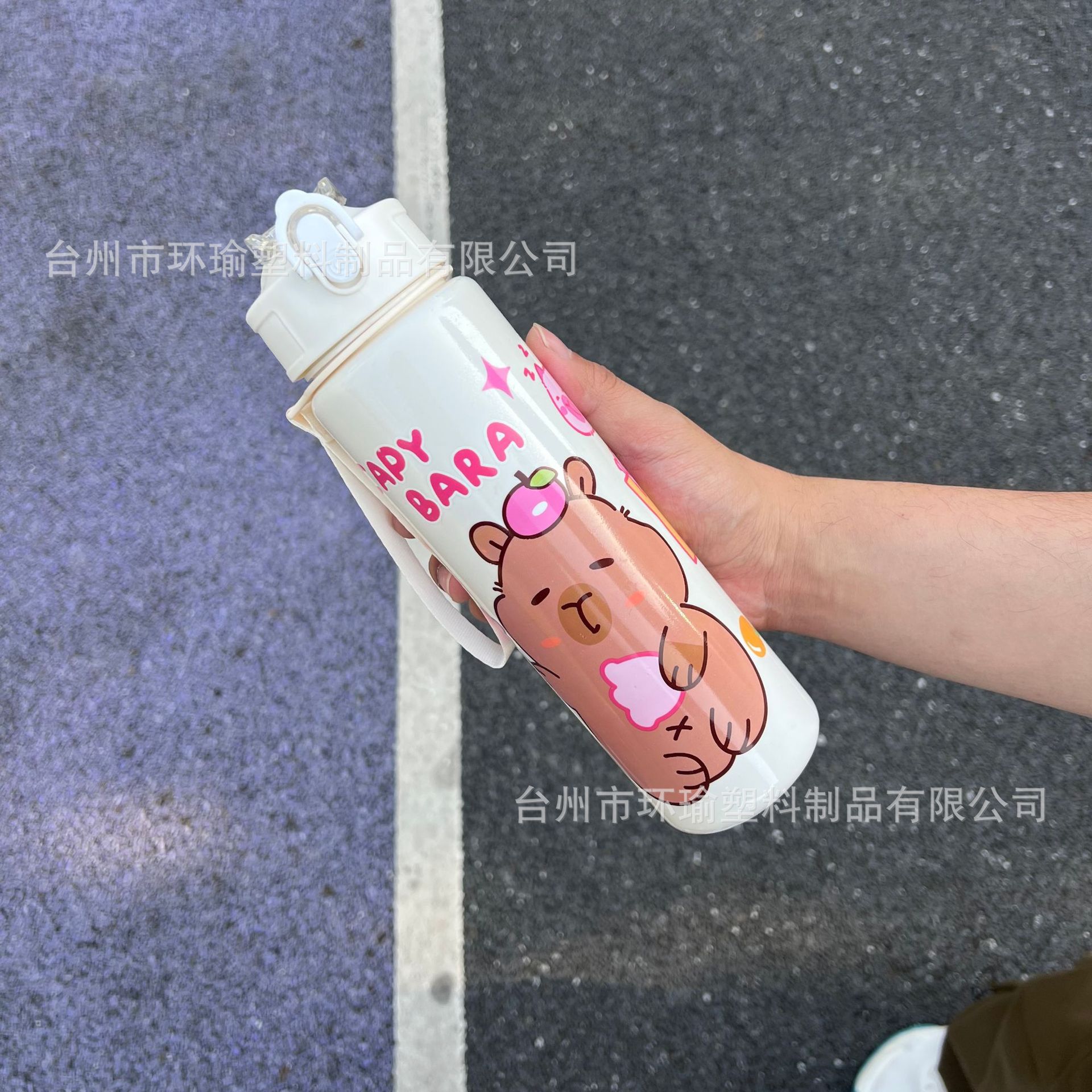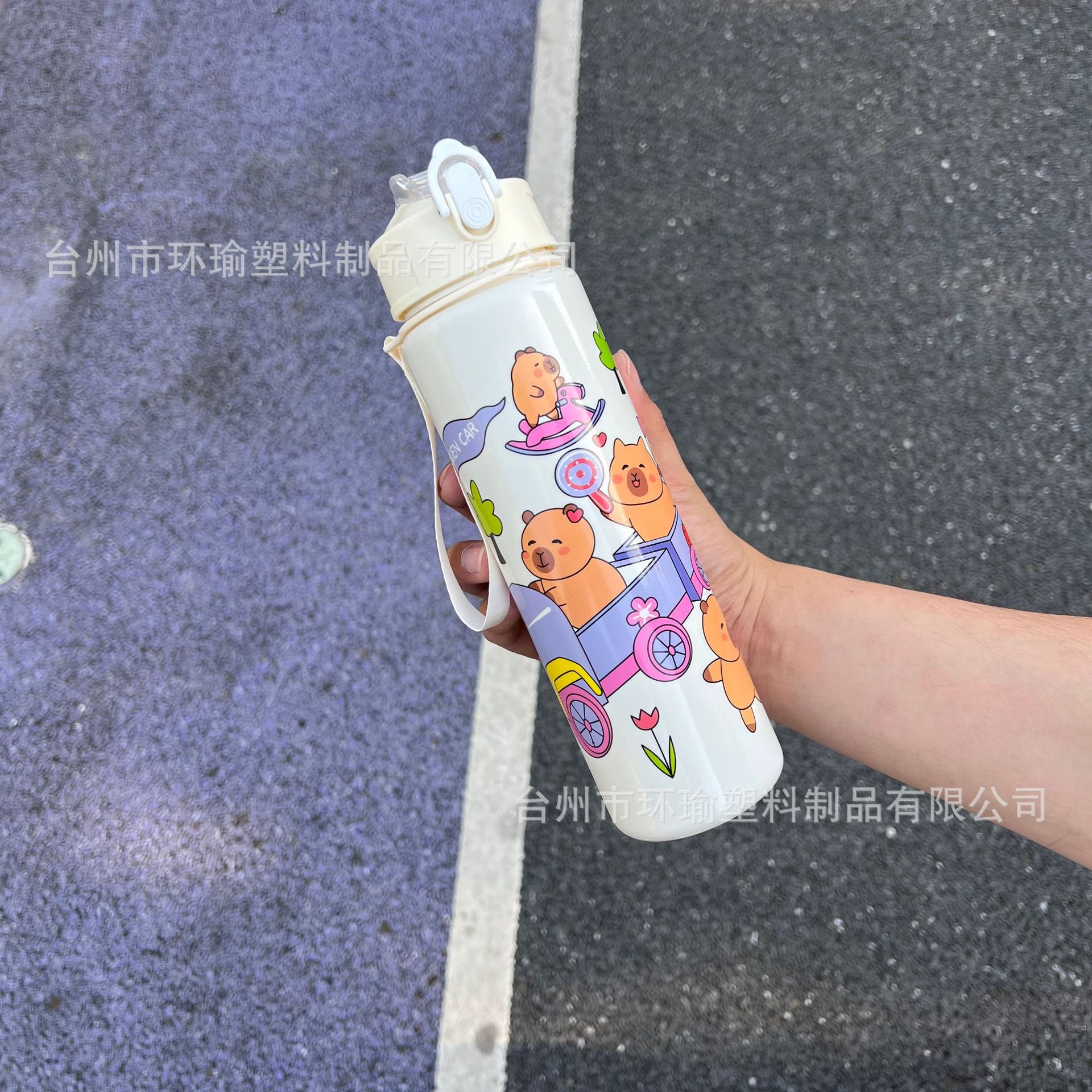 크로스보더 카피발라 중형 컵 곰돌이 빨대 물컵 학생용 탄성 스트랩 만화 스포츠 피트니스 컵