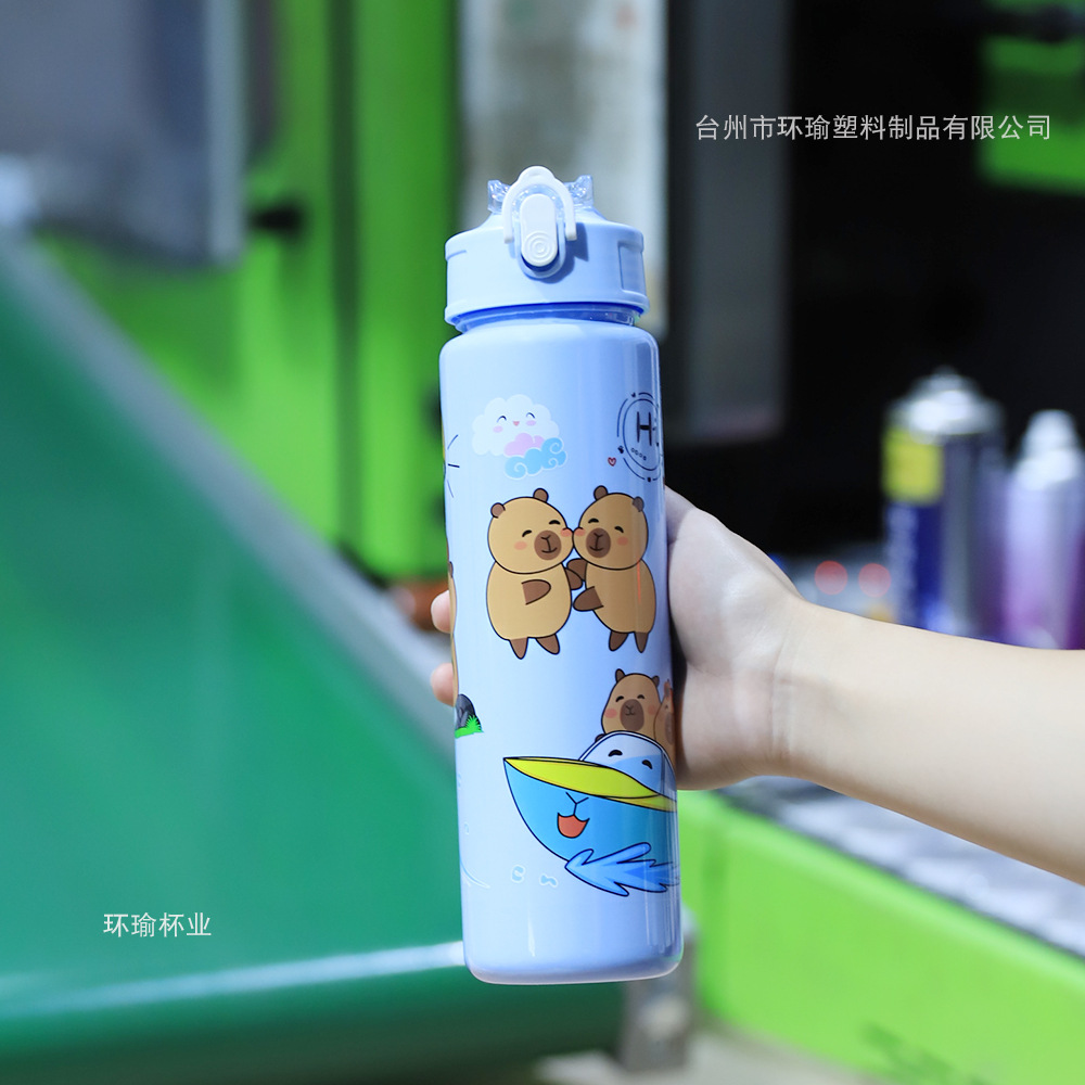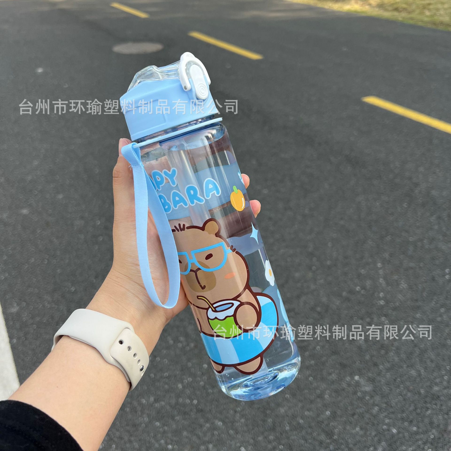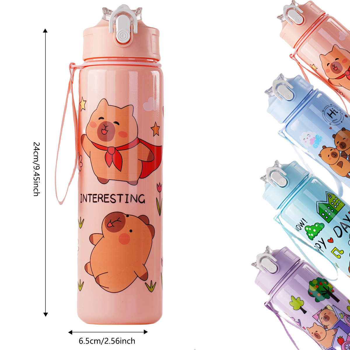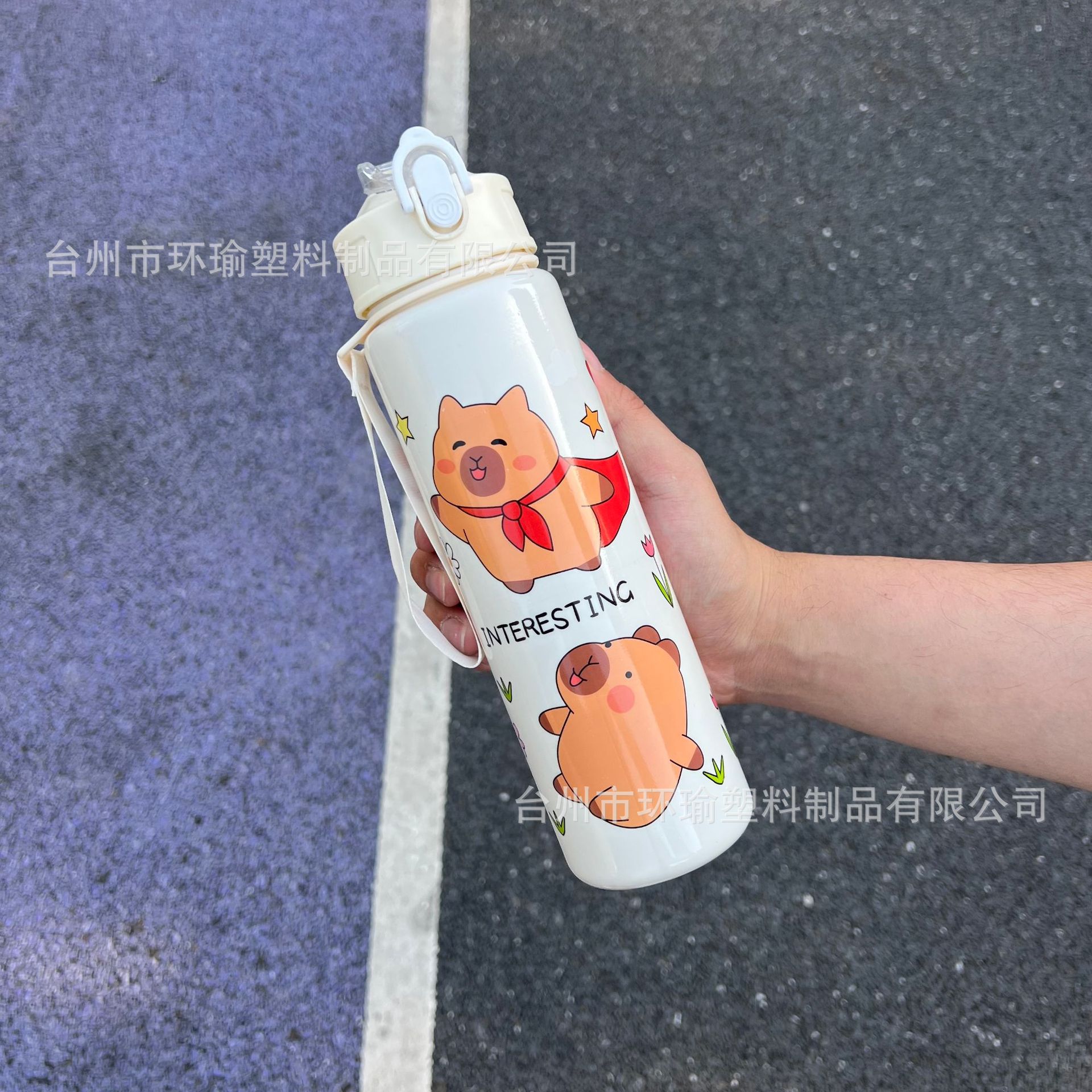 크로스보더 카피발라 중형 컵 곰돌이 빨대 물컵 학생용 탄성 스트랩 만화 스포츠 피트니스 컵