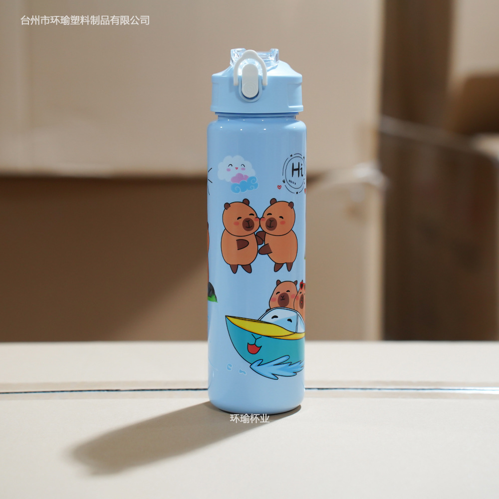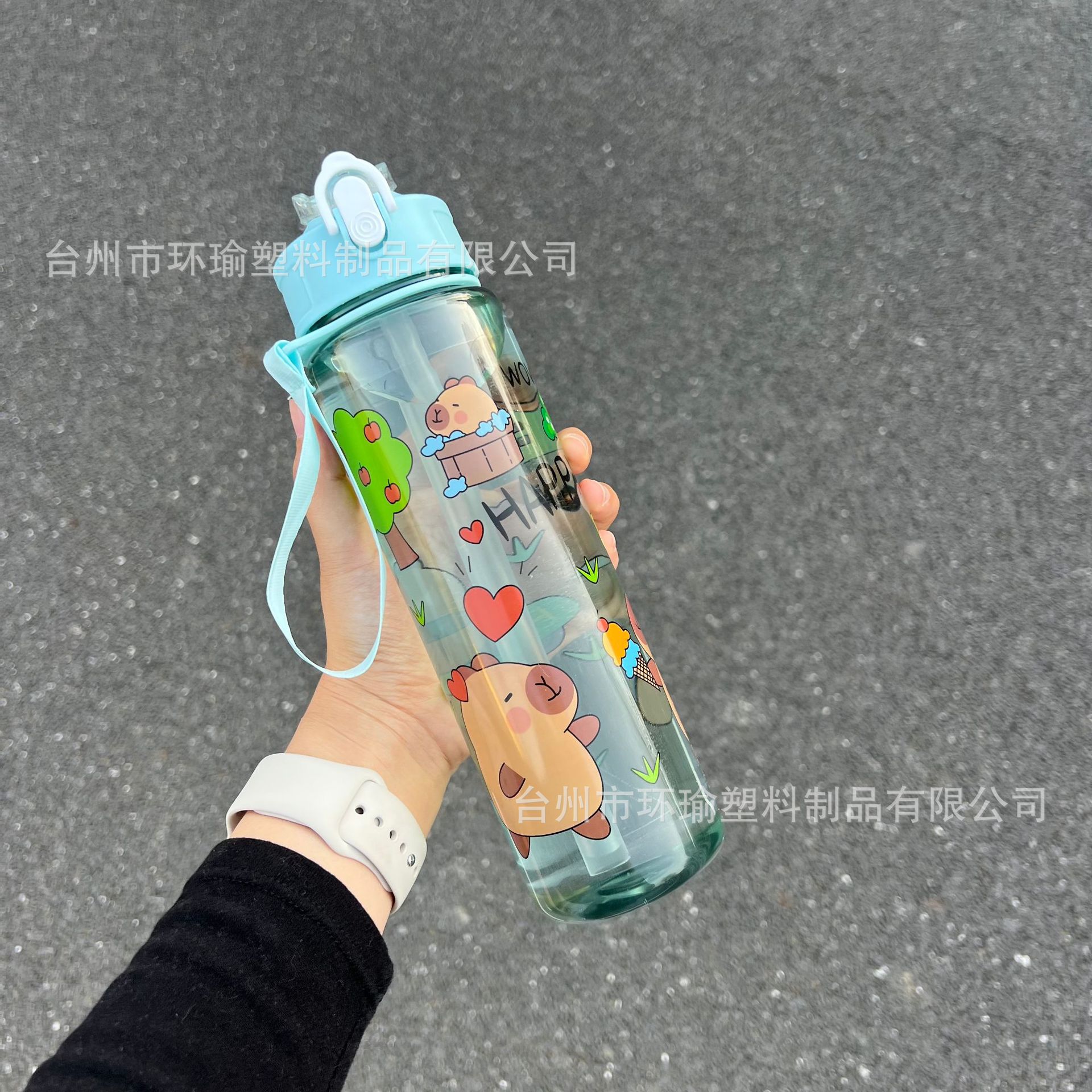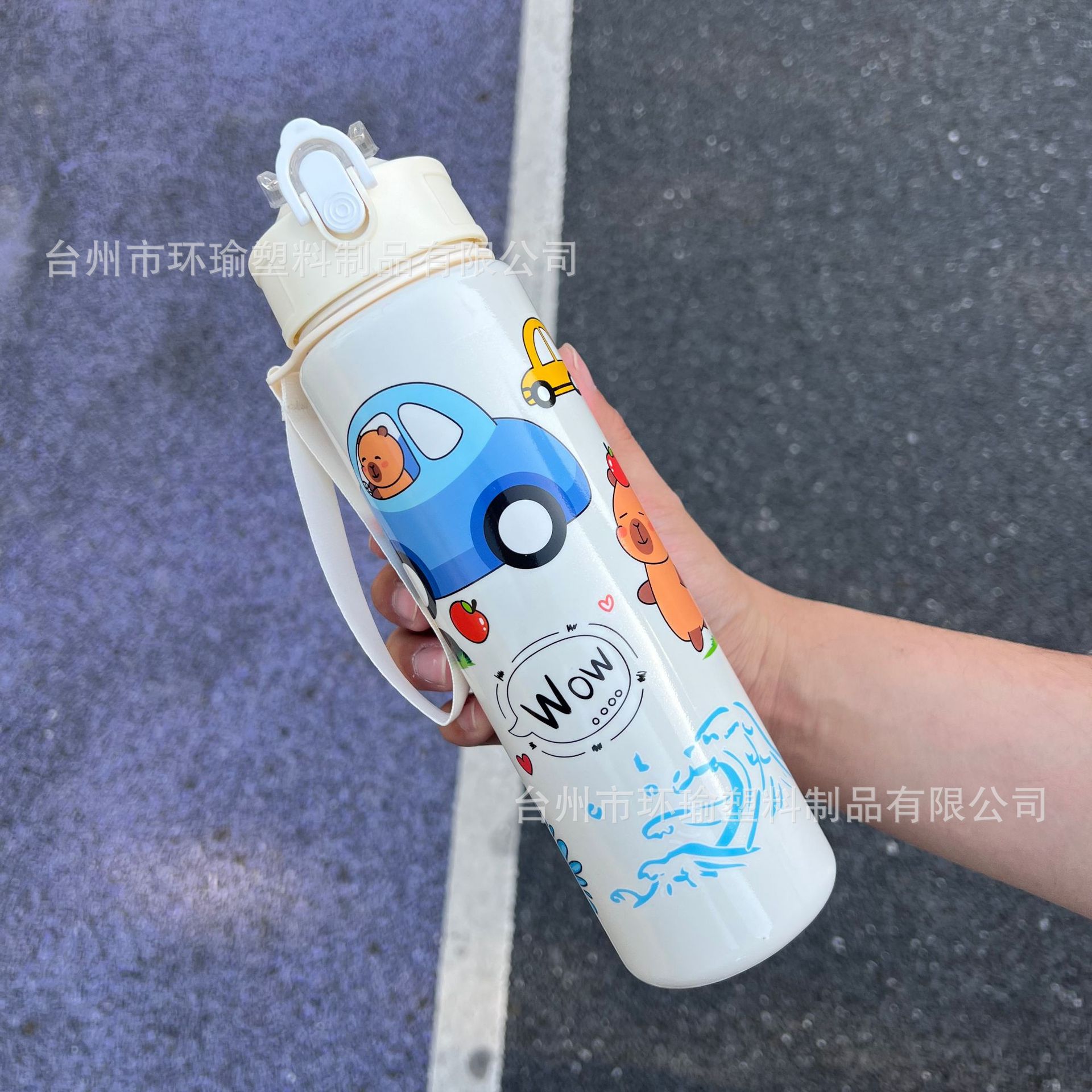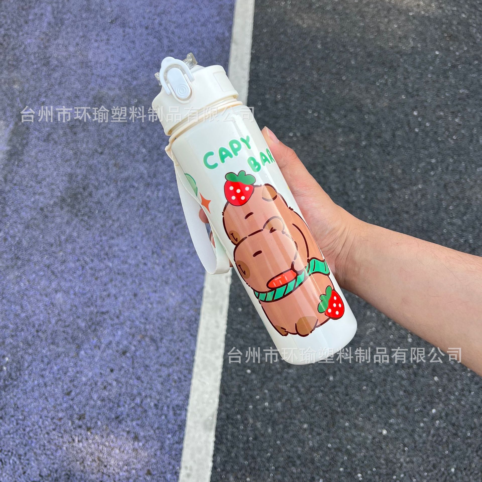 크로스보더 카피발라 중형 컵 곰돌이 빨대 물컵 학생용 탄성 스트랩 만화 스포츠 피트니스 컵