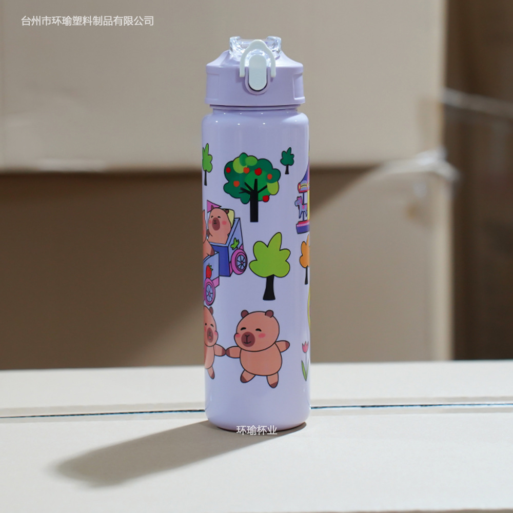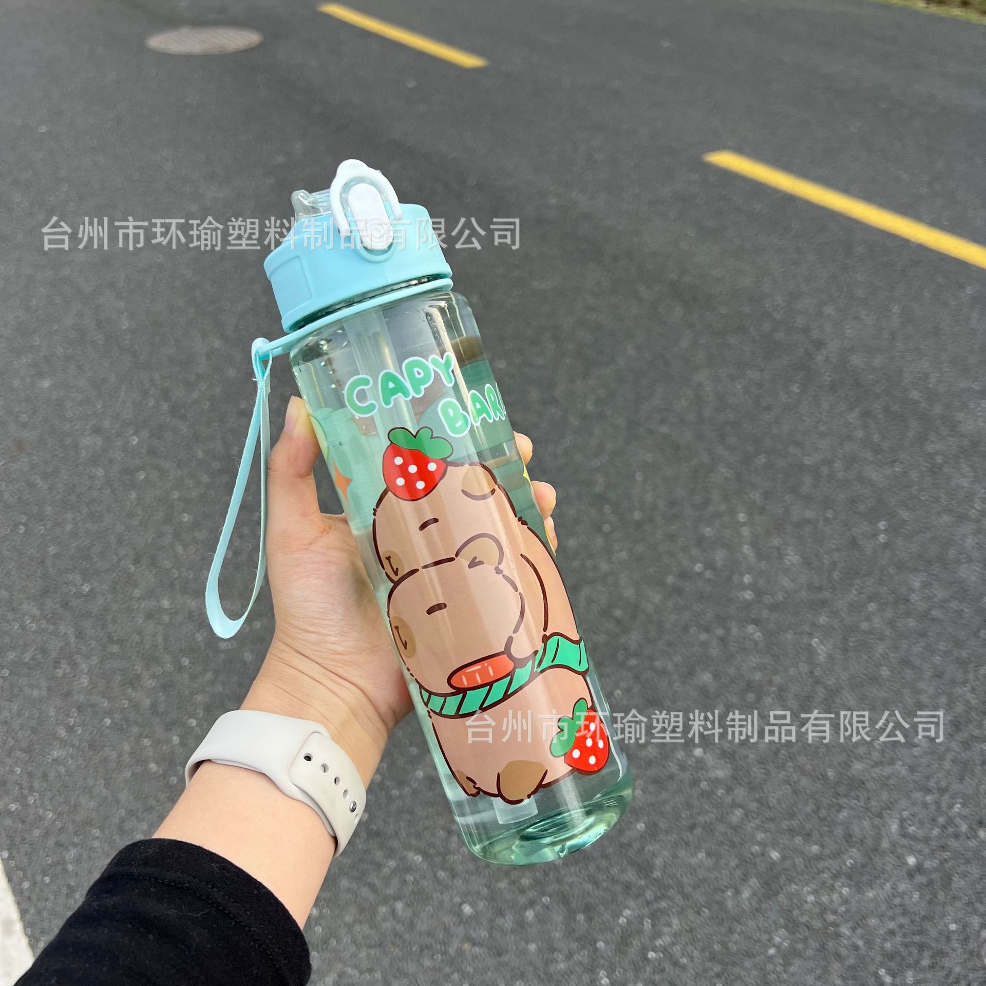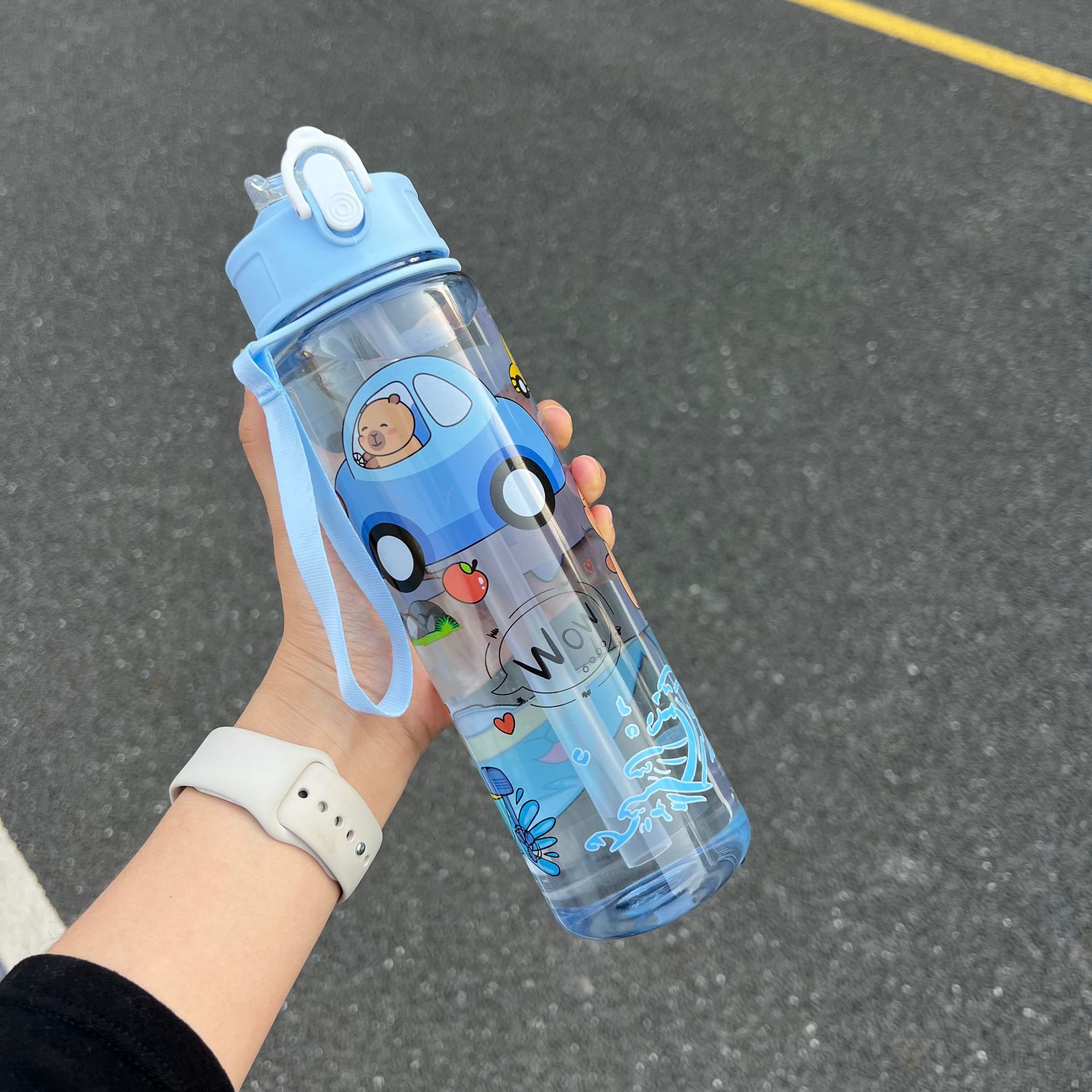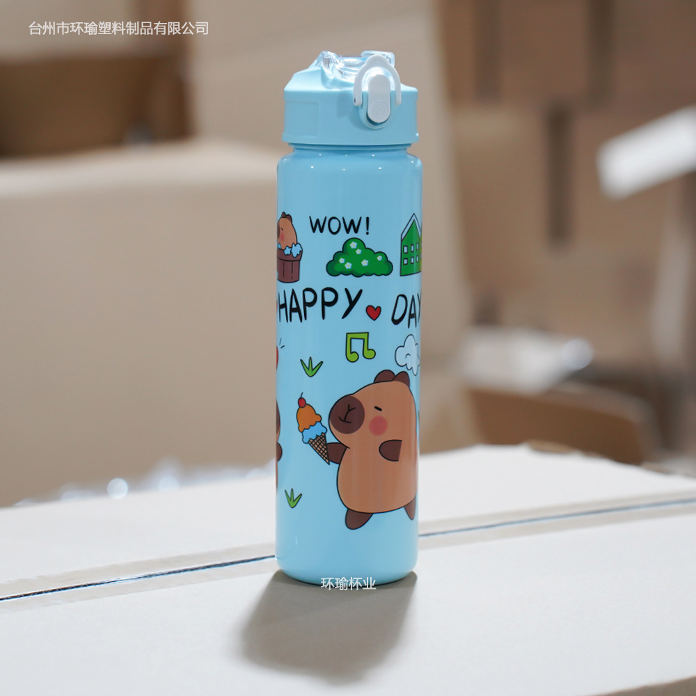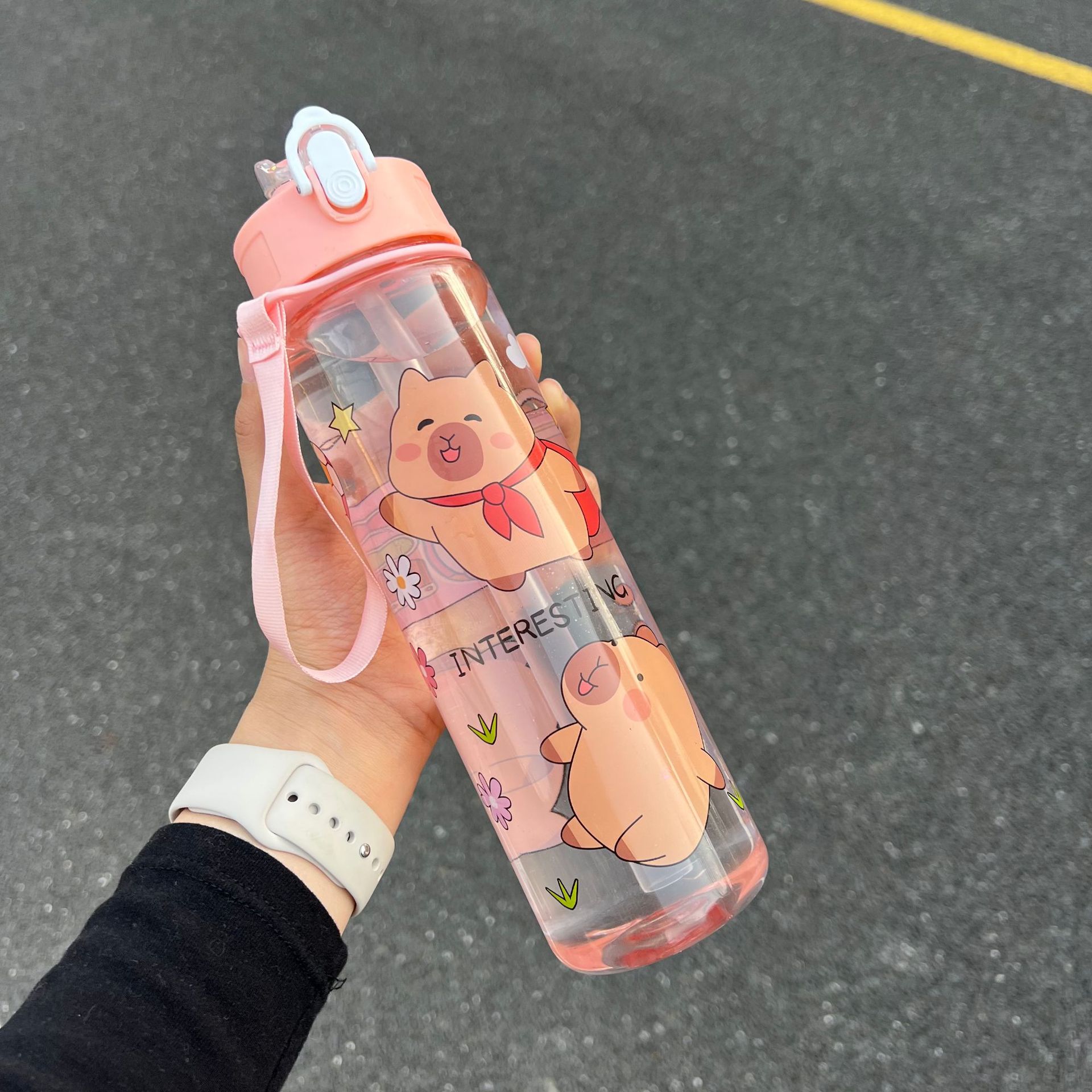 크로스보더 카피발라 중형 컵 곰돌이 빨대 물컵 학생용 탄성 스트랩 만화 스포츠 피트니스 컵