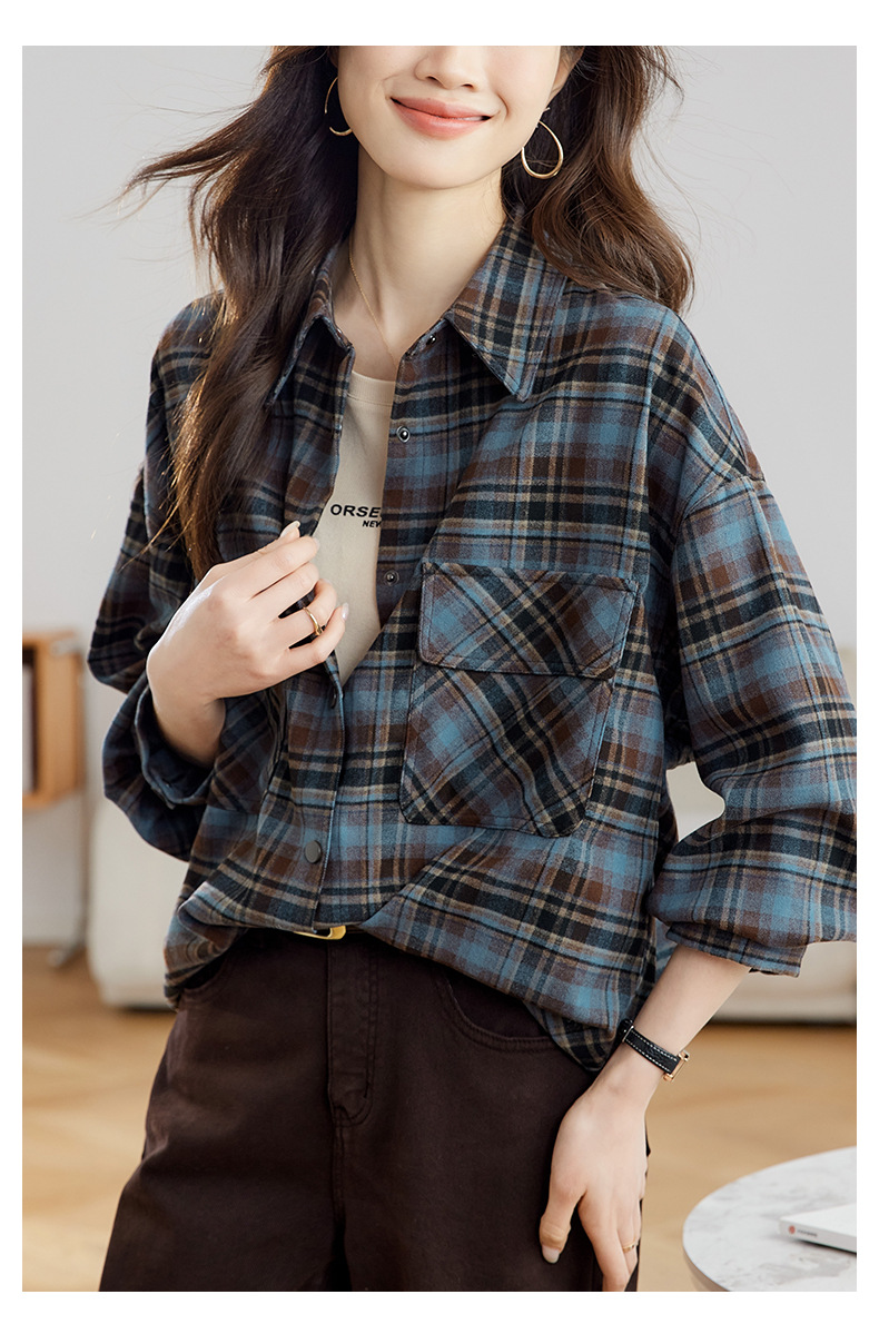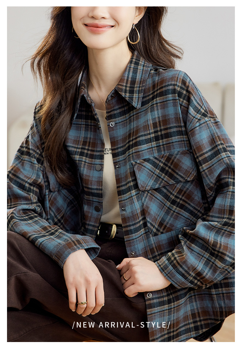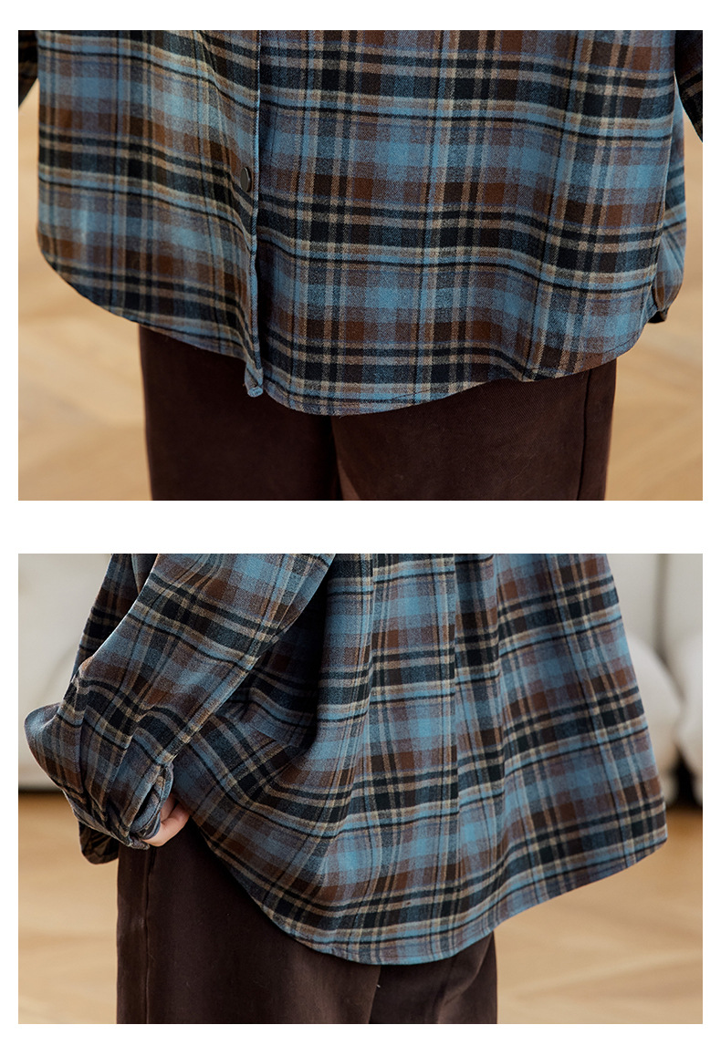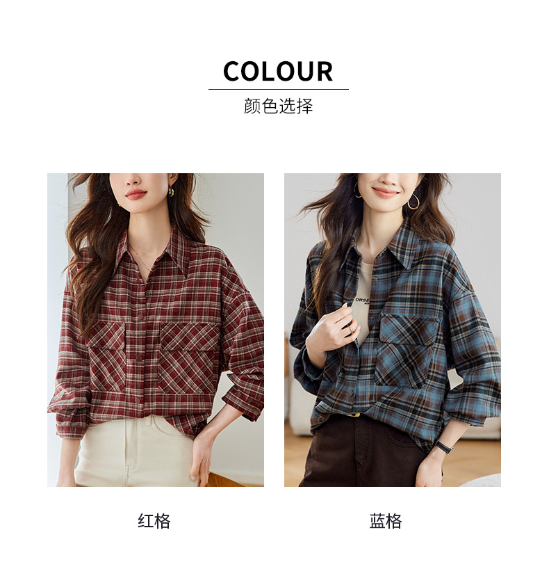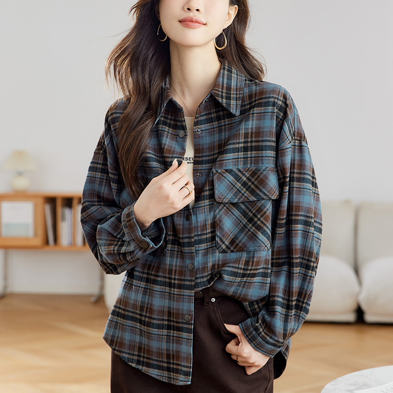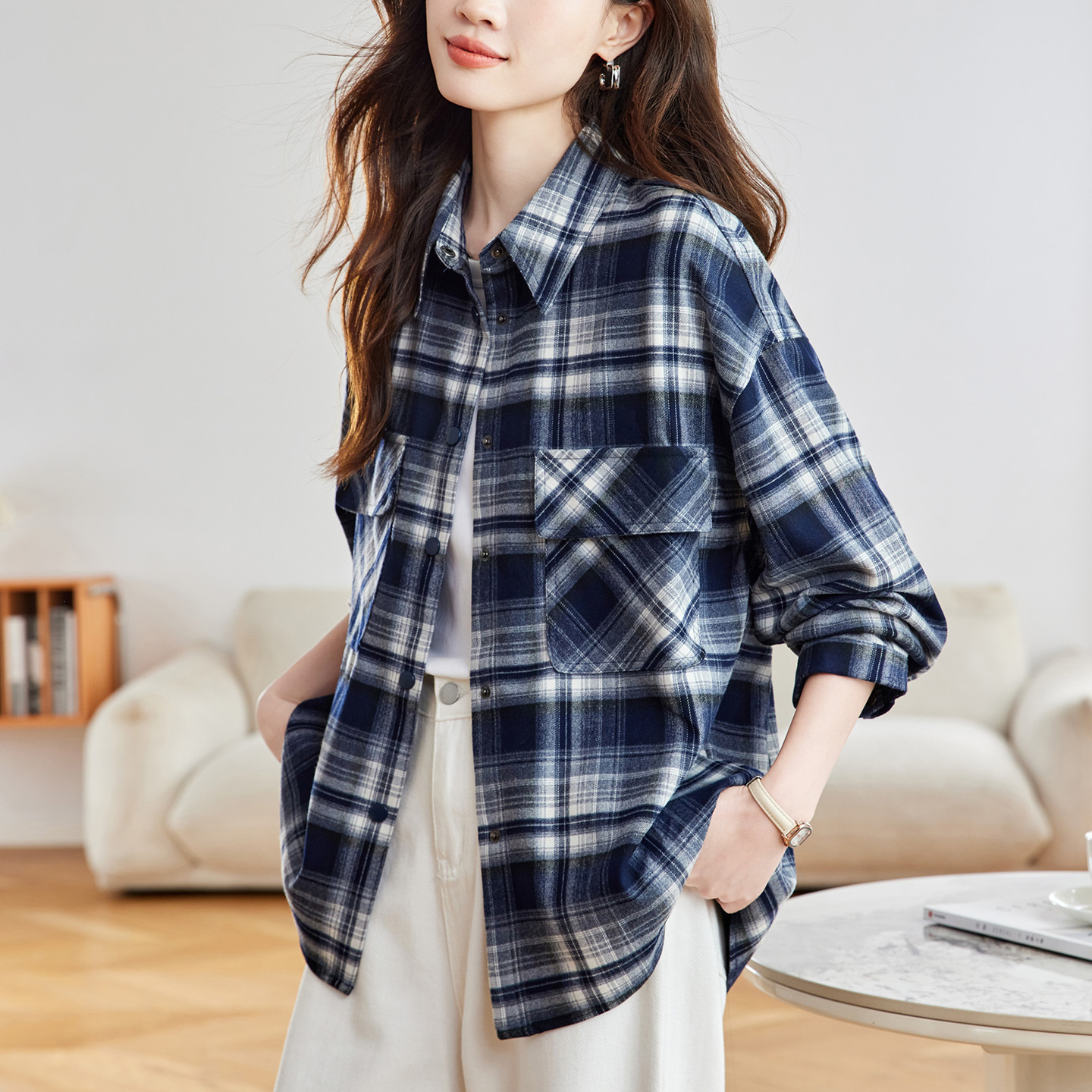 공장 직접 판매 격자 무늬 셔츠 여성 긴팔 2025 봄, 가을 새로운 홍콩 스타일 문학 복고풍 레이어드 이너 셔츠스토어 가기