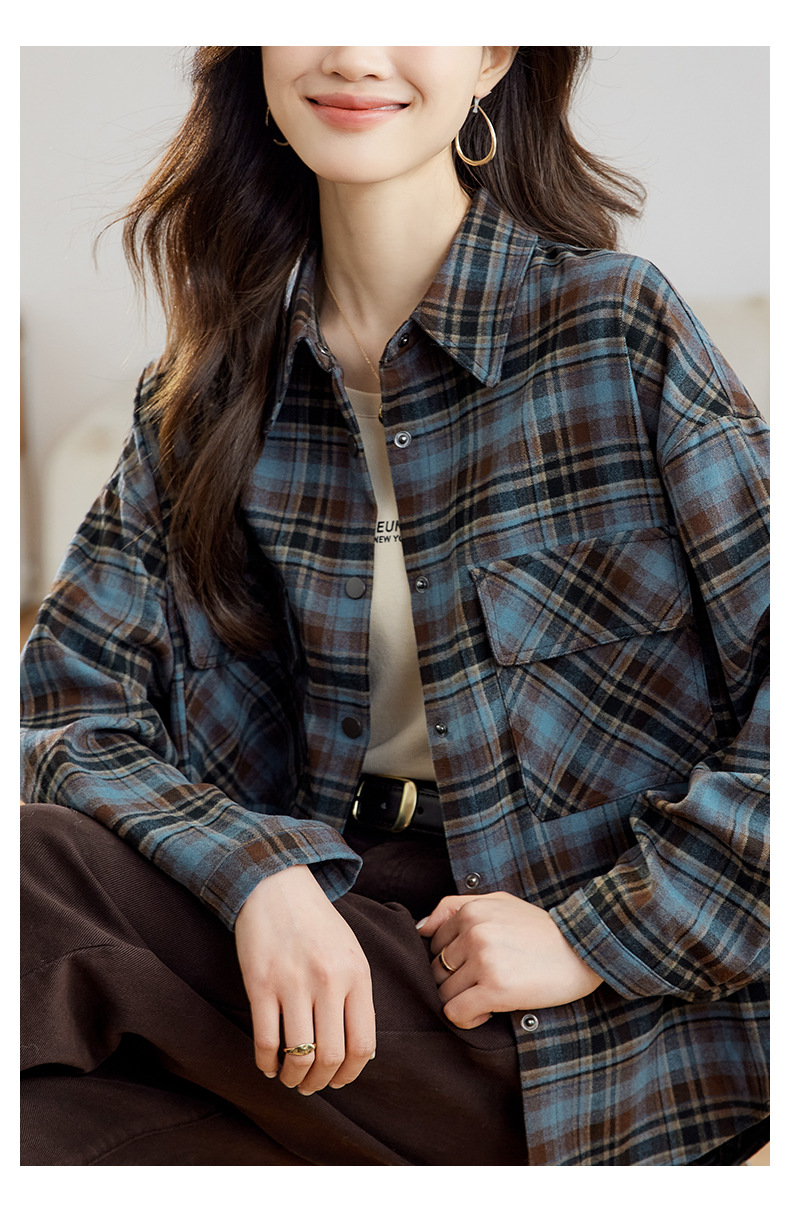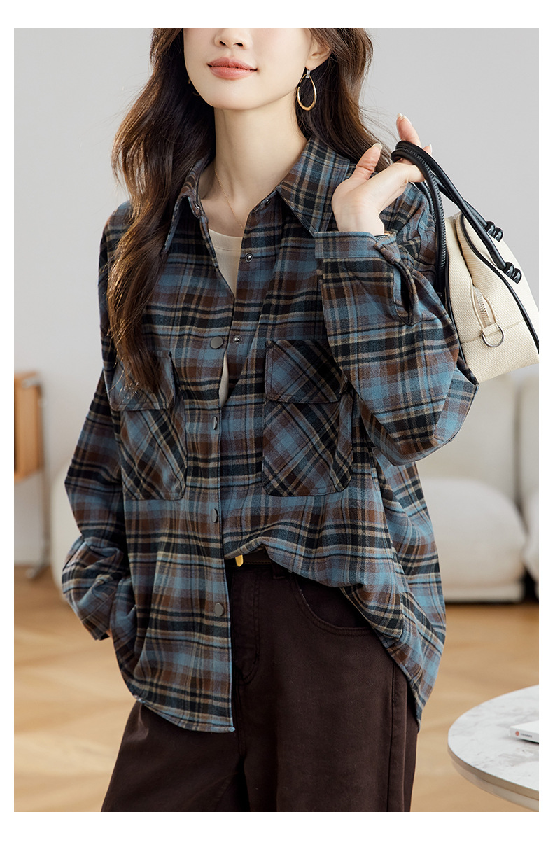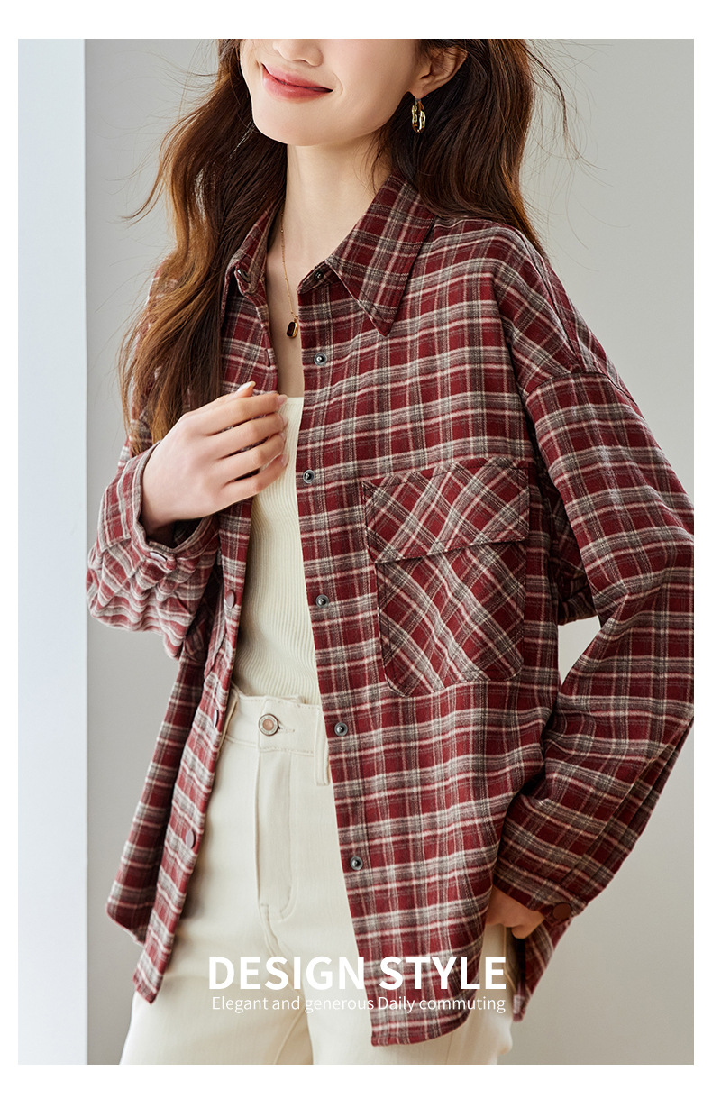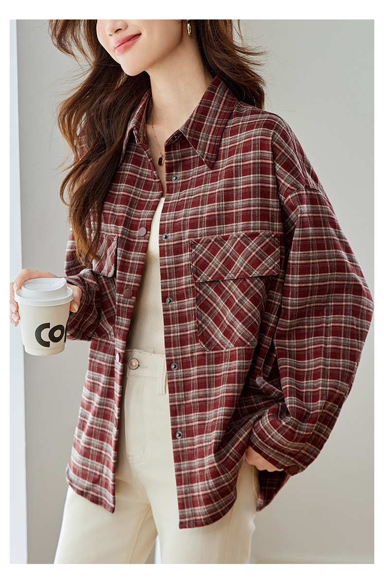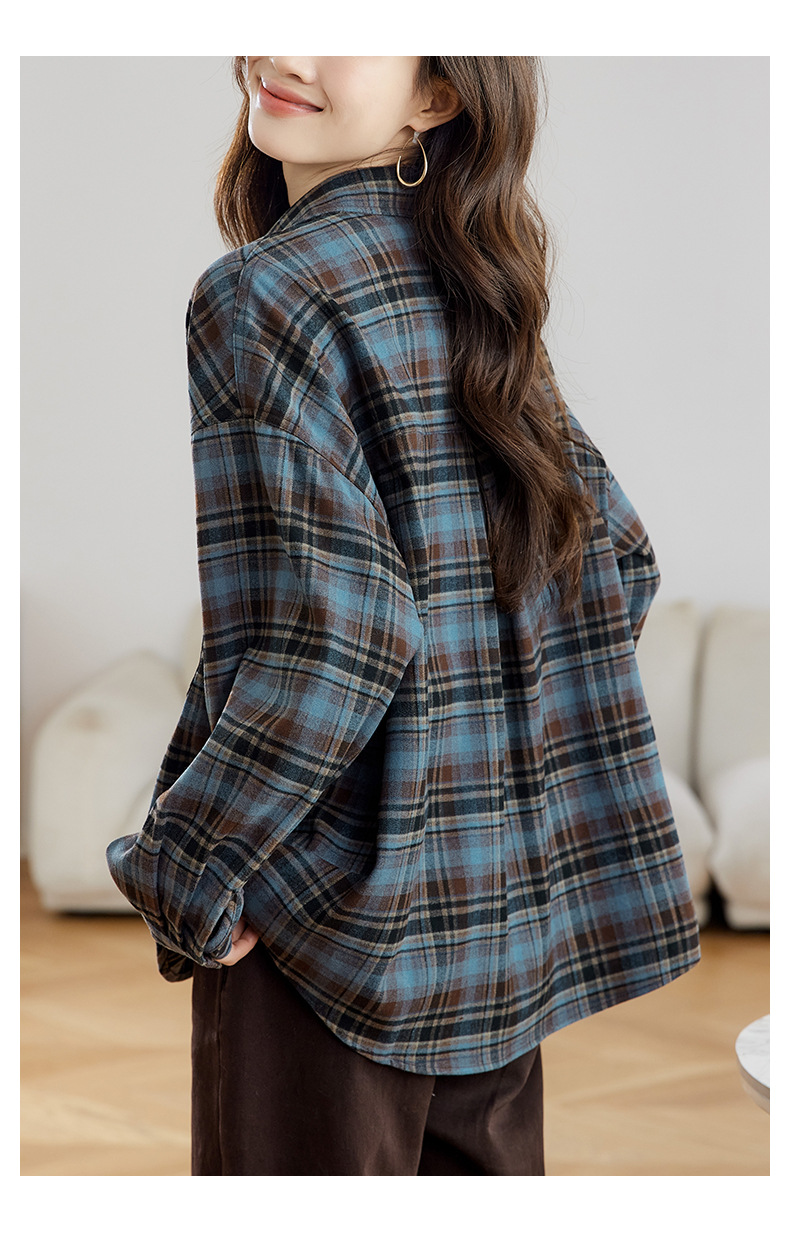 공장 직접 판매 격자 무늬 셔츠 여성 긴팔 2025 봄, 가을 새로운 홍콩 스타일 문학 복고풍 레이어드 이너 셔츠스토어 가기