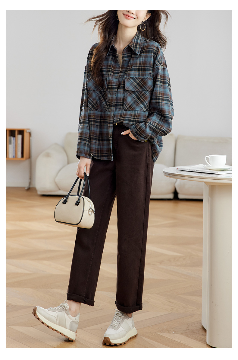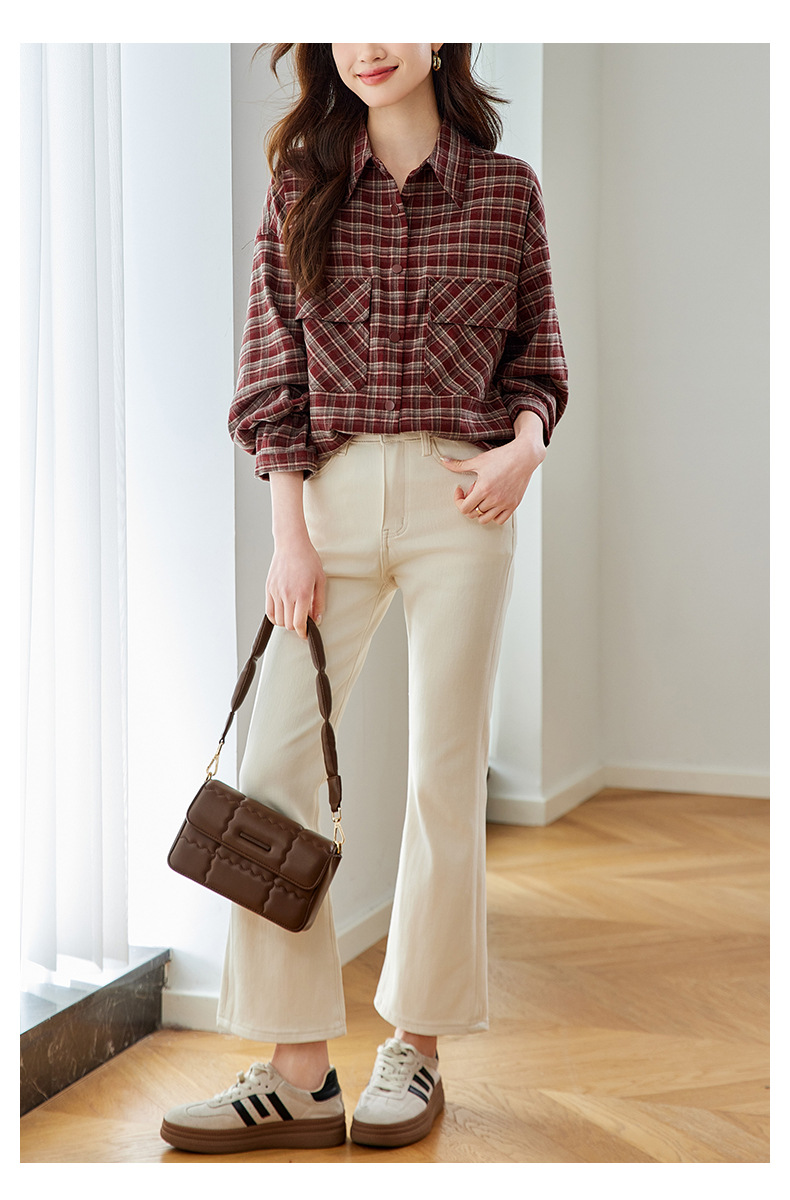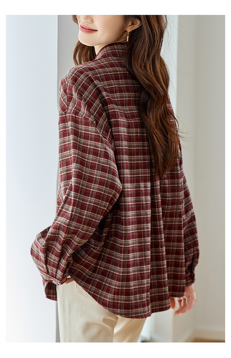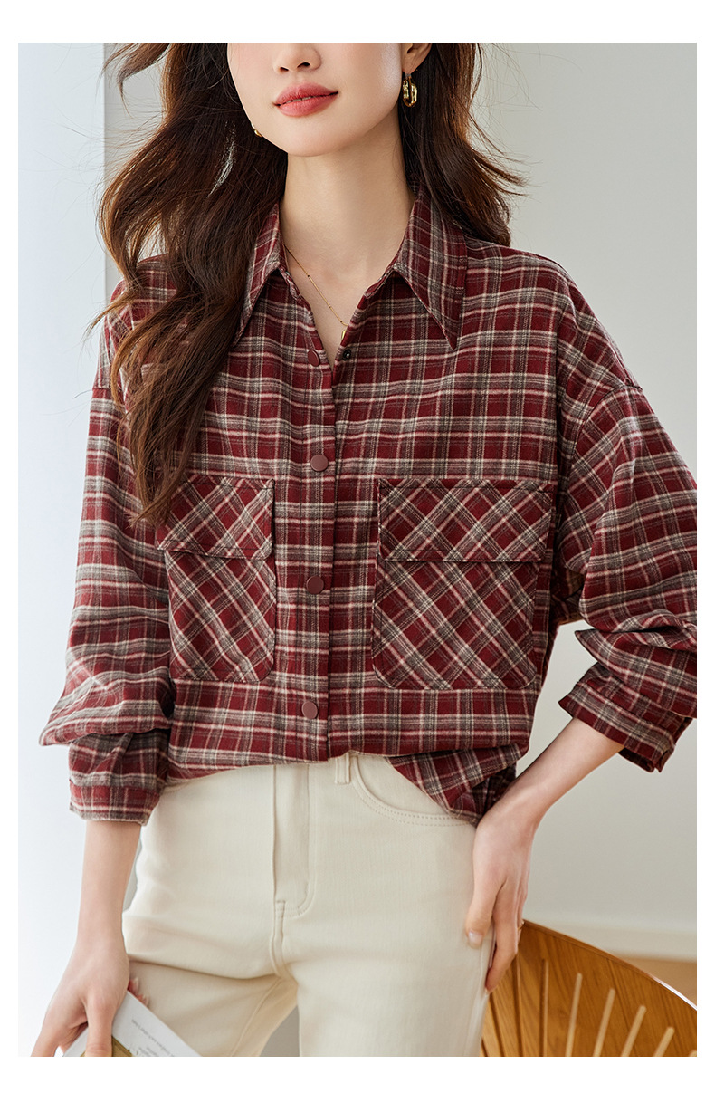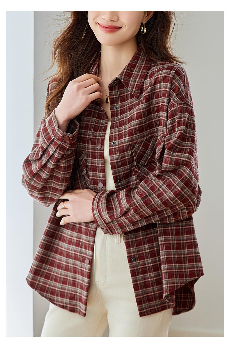 공장 직접 판매 격자 무늬 셔츠 여성 긴팔 2025 봄, 가을 새로운 홍콩 스타일 문학 복고풍 레이어드 이너 셔츠스토어 가기